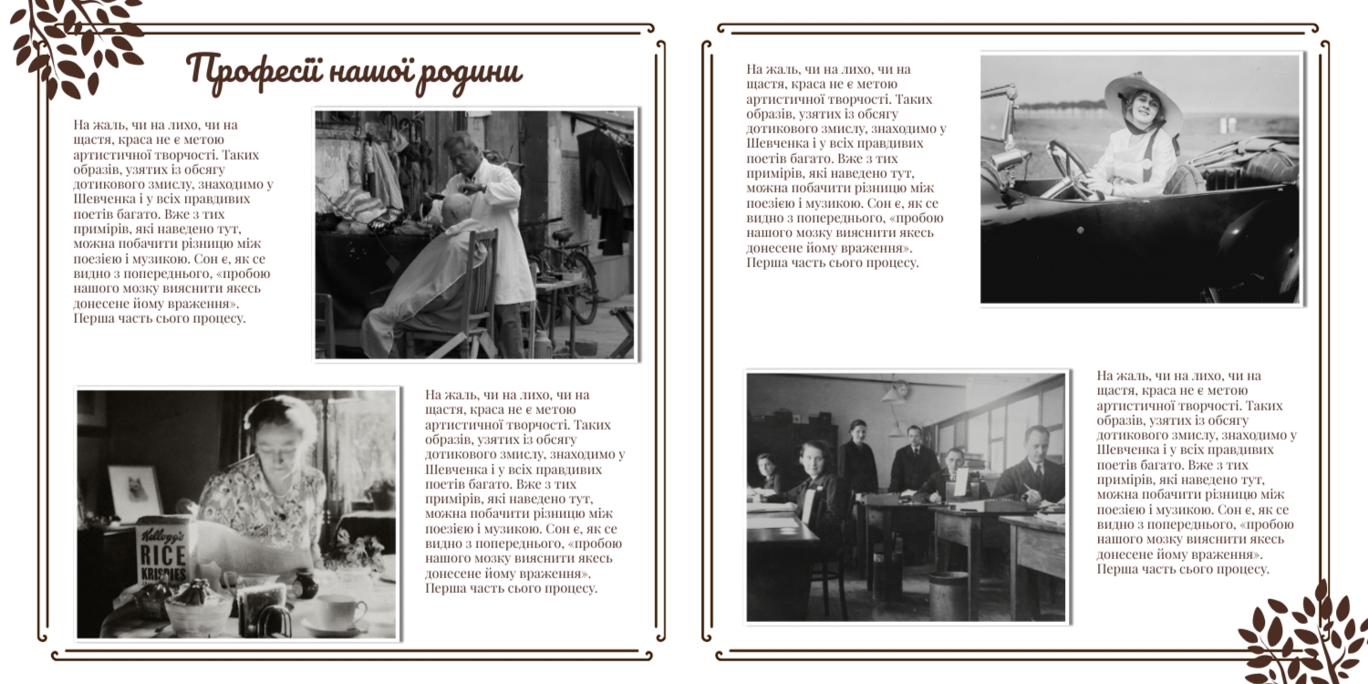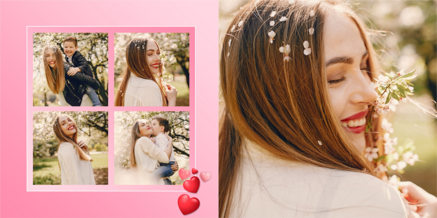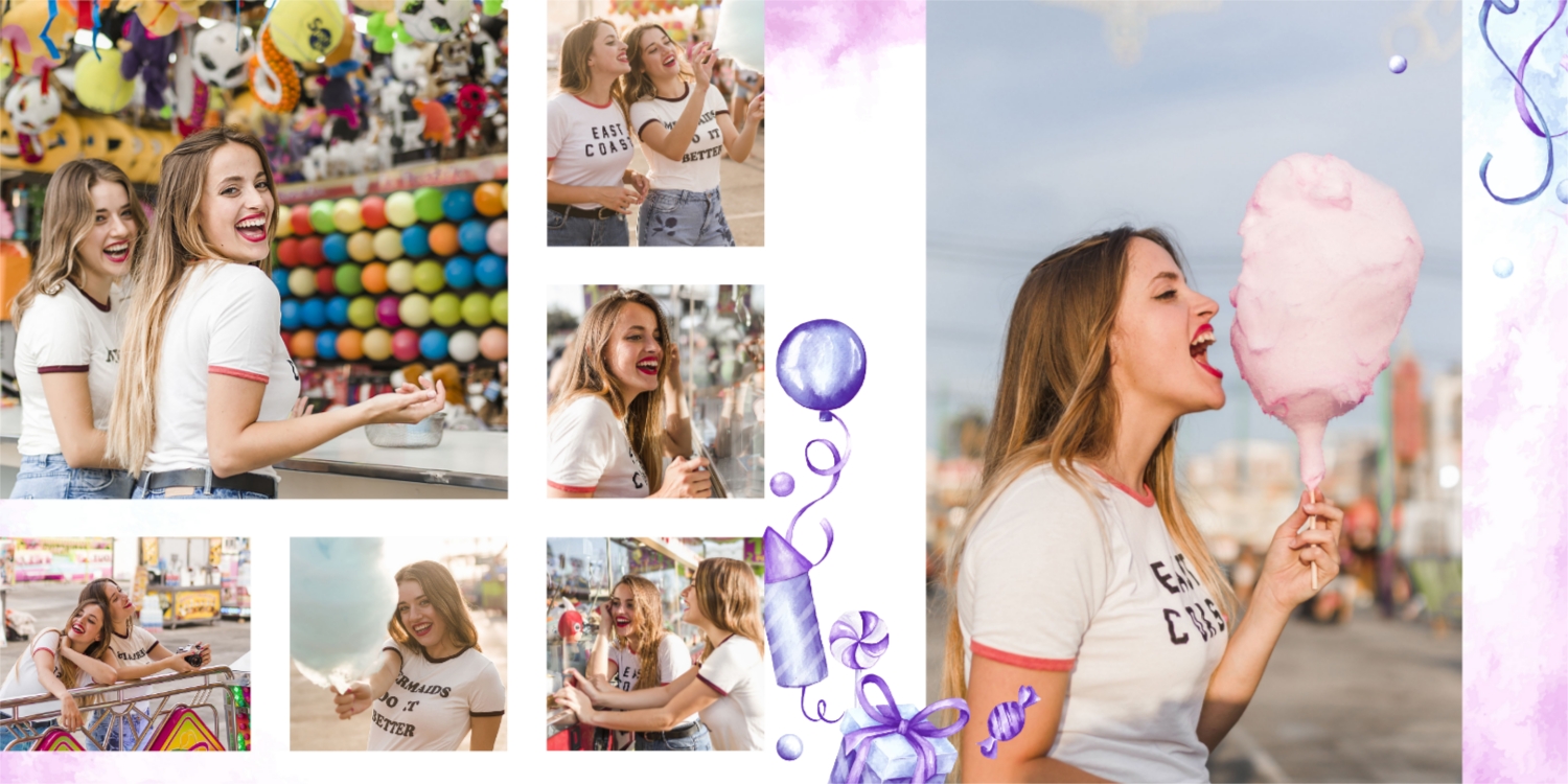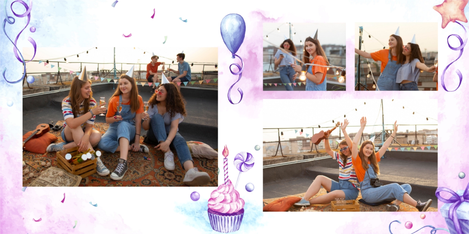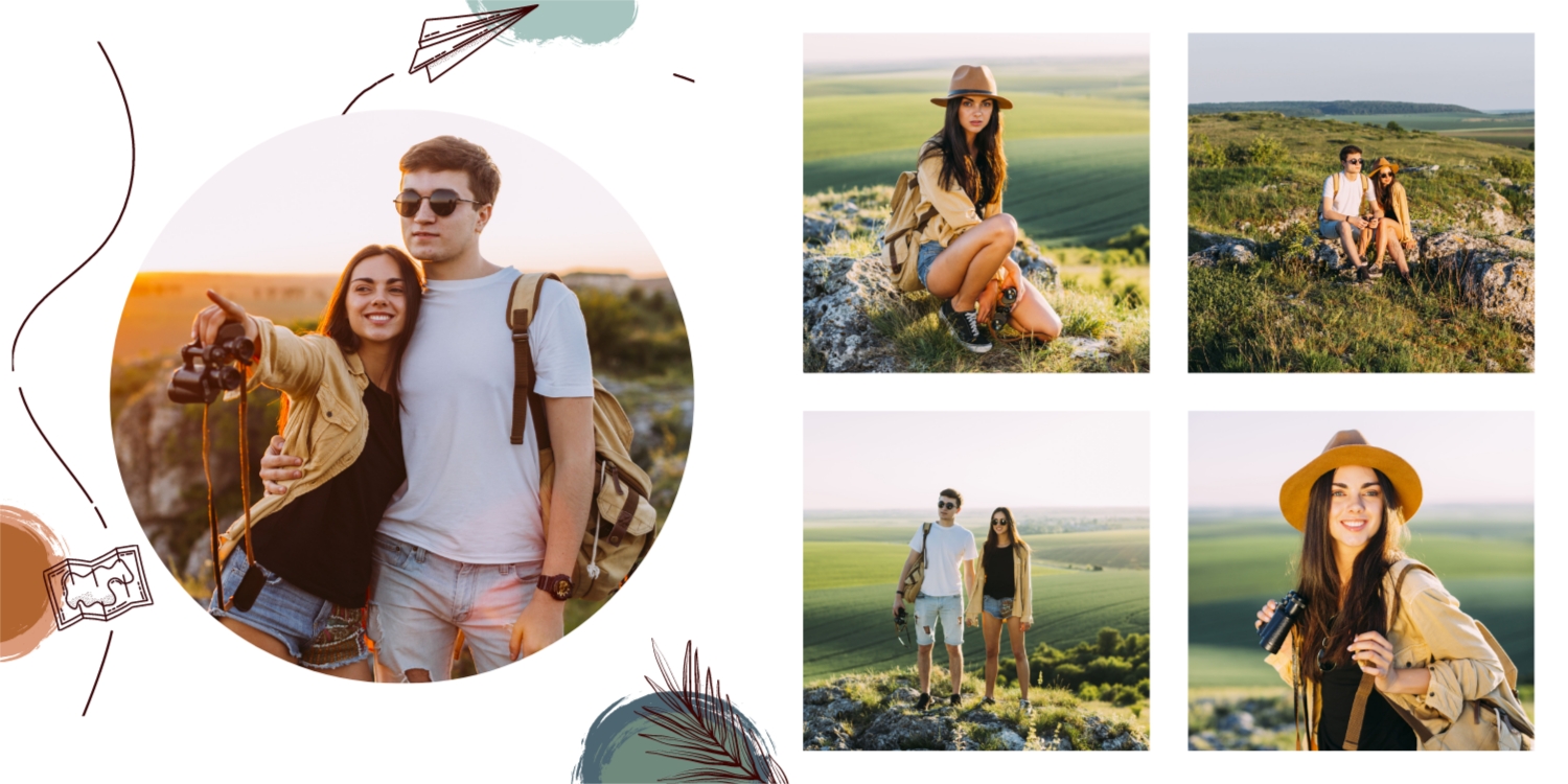 Конструкція панорамної фотокниги дозволяє їй відкриватися на 180 градусів – так її дуже зручно переглядати. Групові фотографії й великі пейзажні знімки ніби спеціально створені для панорамної фотокниги. Але на розворотах дуже виграшний вигляд мають колажі, створені з різних за формою й розмірами фотографій.