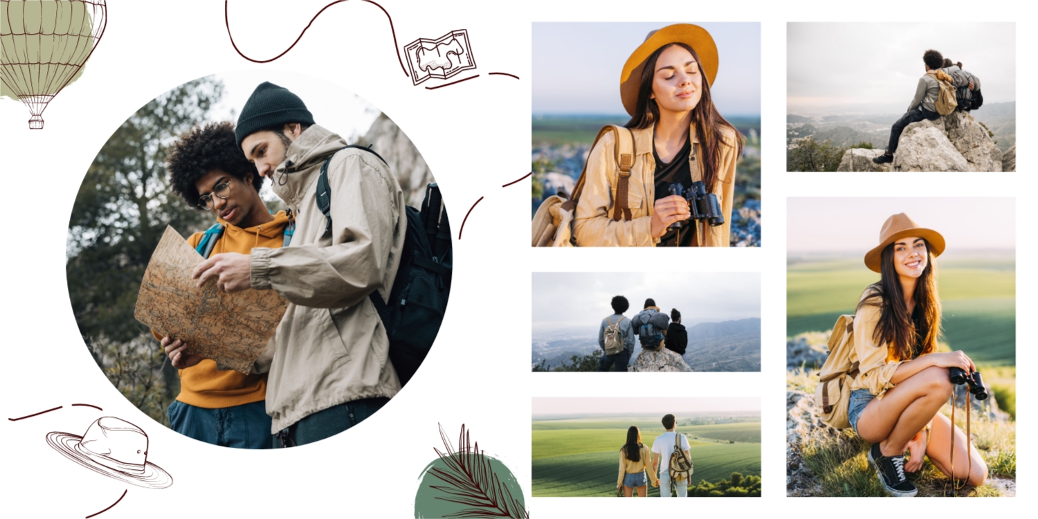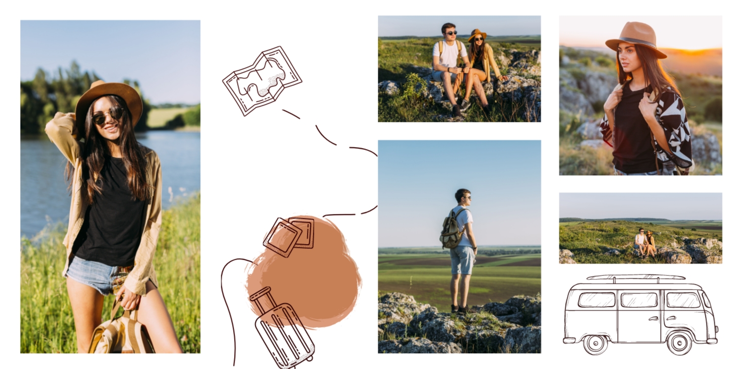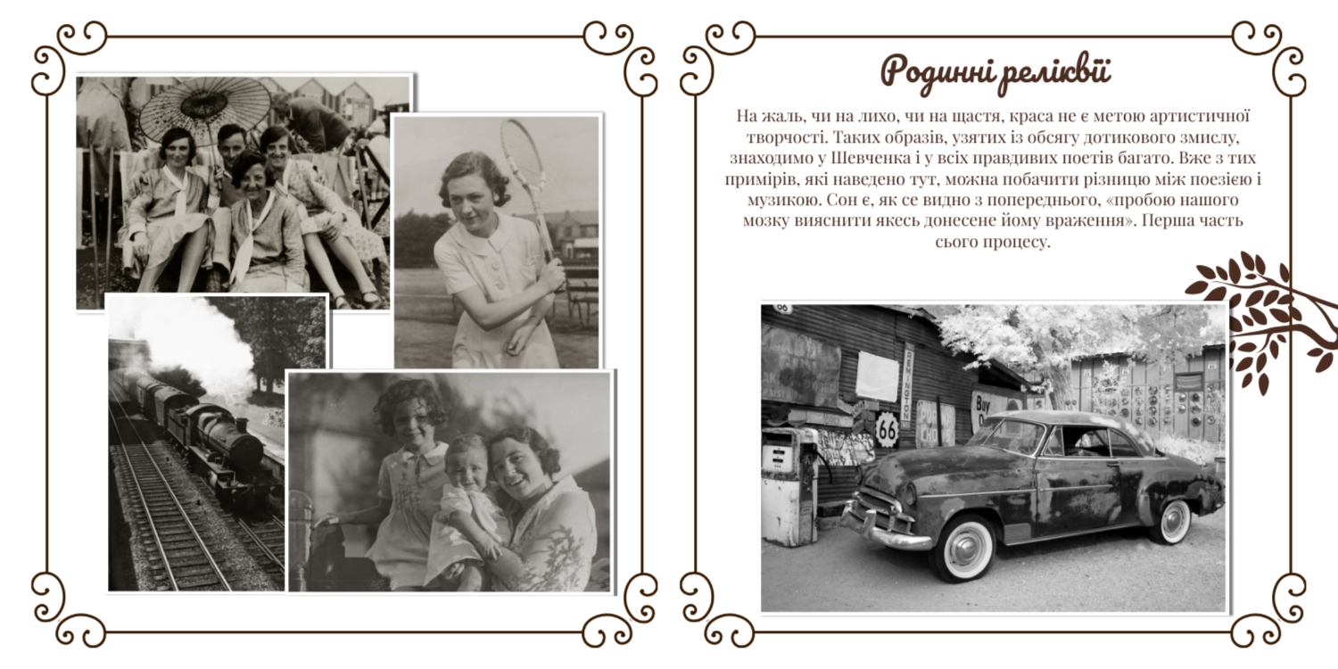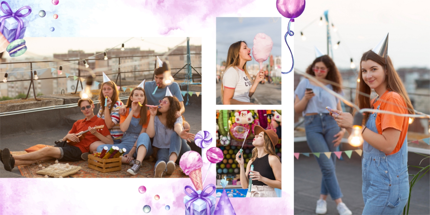 Конструкція панорамної фотокниги дозволяє їй відкриватися на 180 градусів – так її дуже зручно переглядати. Групові фотографії й великі пейзажні знімки ніби спеціально створені для панорамної фотокниги. Але на розворотах дуже виграшний вигляд мають колажі, створені з різних за формою й розмірами фотографій.