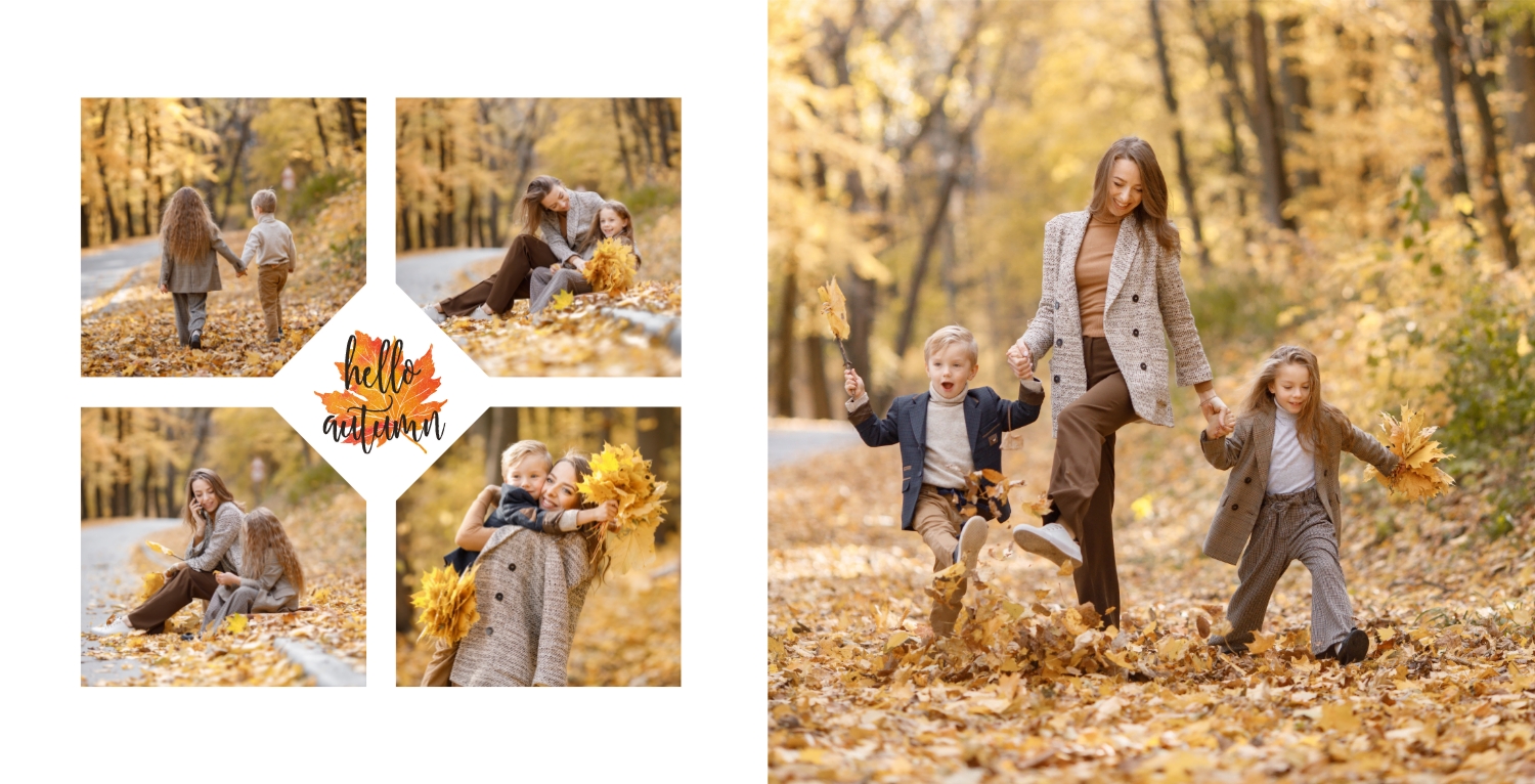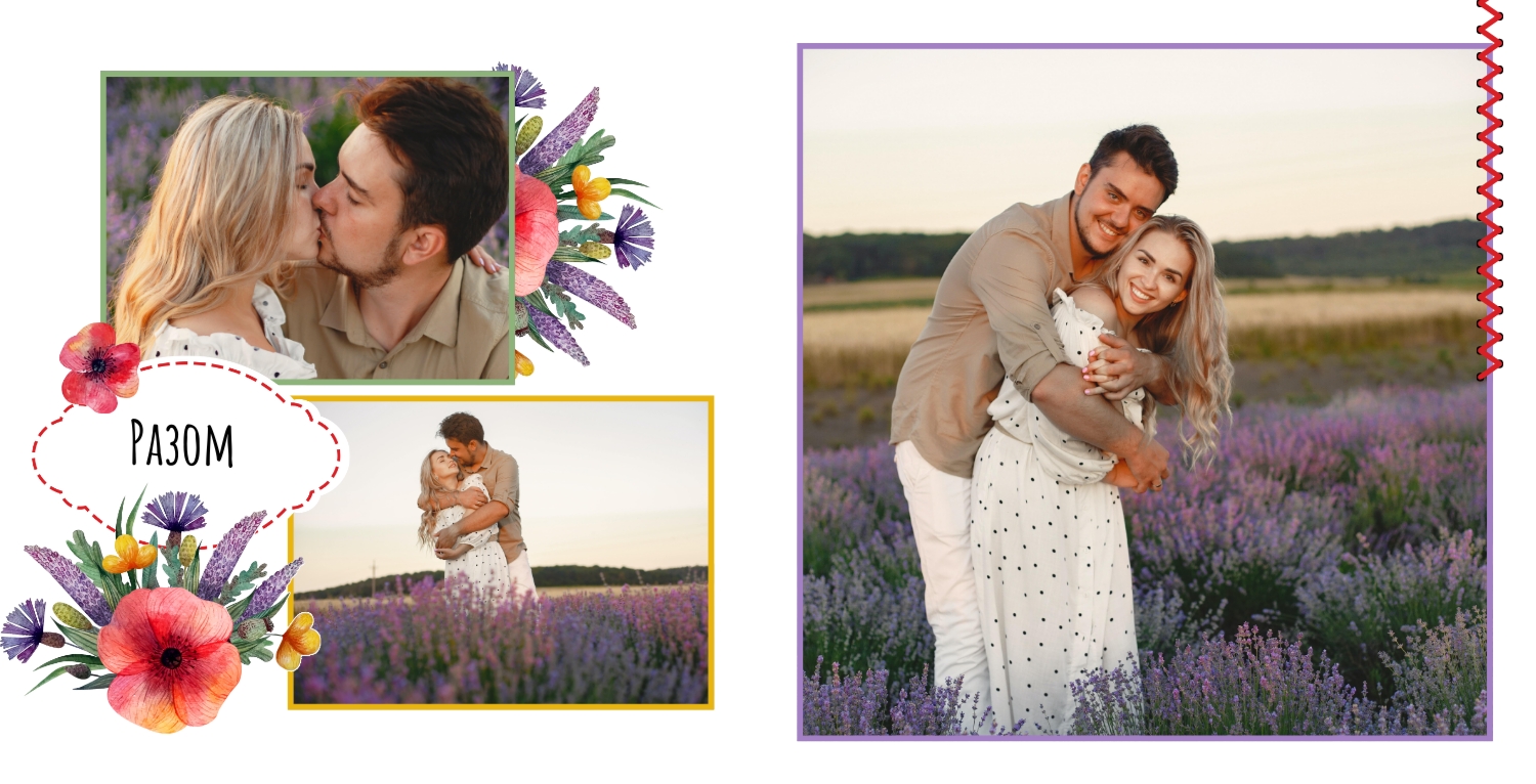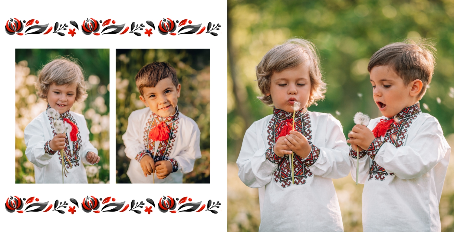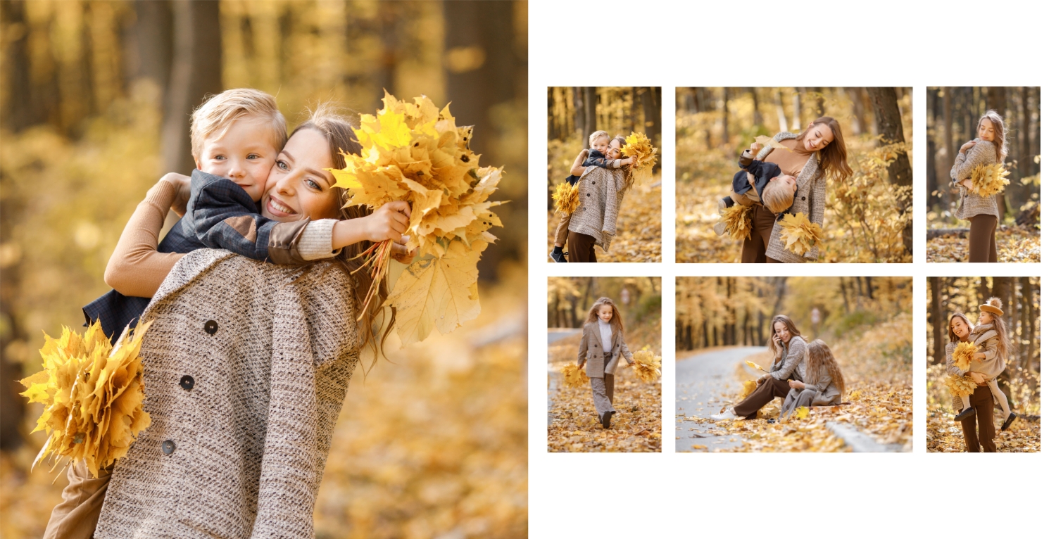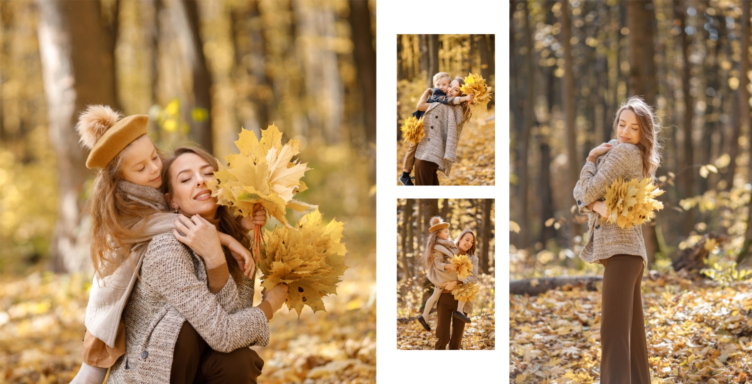 Майте на увазі, що фотокнига в твердій обкладинці має стандартний книжковий перепліт, тобто частина вмісту сторінки йде в корінець. Тому ми не рекомендуємо використовувати панорамні знімки на весь розворот. Для цієї мети є інший вид фотокниг – панорамні фотокниги.