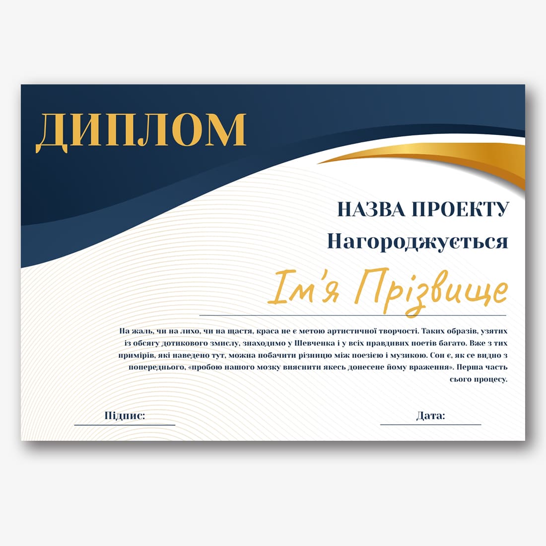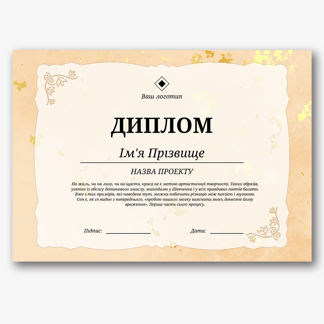 Наш сервіс дозволяє не лише працювати з готовими шаблонами, а й повністю персоналізувати їх під свій бренд. Ви можете додати логотип, змінити кольорову гаму або обрати унікальний шрифт. Завдяки цьому кожен сертифікат виглядатиме індивідуально та підкреслить статус вашого освітнього проєкту.