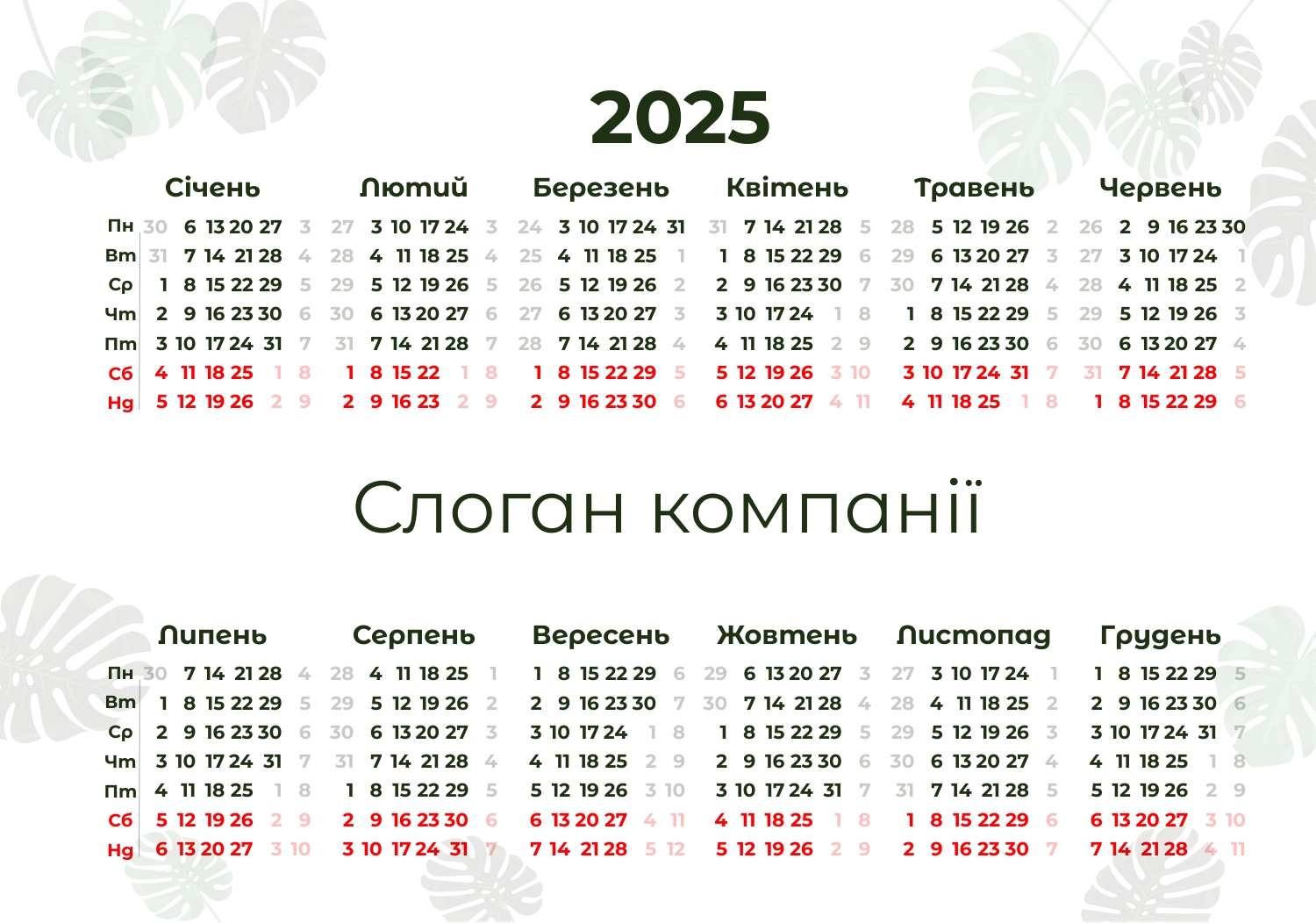 Якщо ви вирішили надрукувати тираж кишенькових календарів 2026 до галузевої виставки, яка відбувається в середині року, або до ювілею компанії, або ще з якогось приводу, то календарну сітку можна зробити не на календарний рік, а, наприклад, із вересня поточного по серпень наступного року. Наш конструктор кишенькових календарів дозволяє сформувати календарну сітку, починаючи з будь-якого місяця.