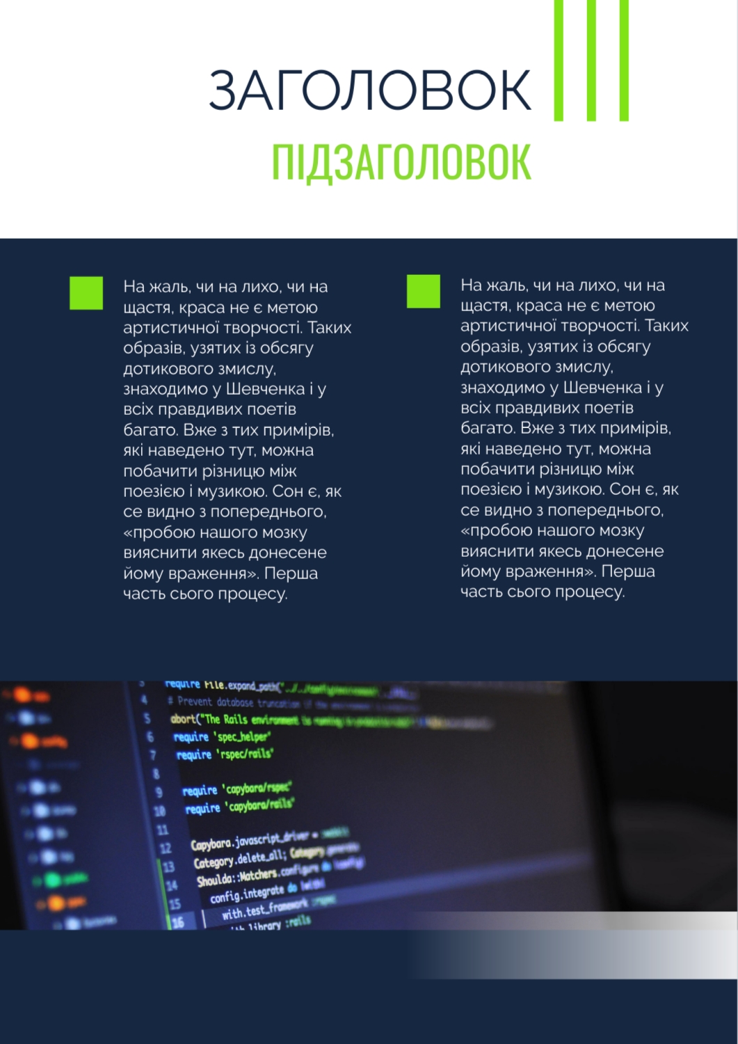 - Інформаційна частина повинна розташовуватися не ближче 10 мм до краю макета.