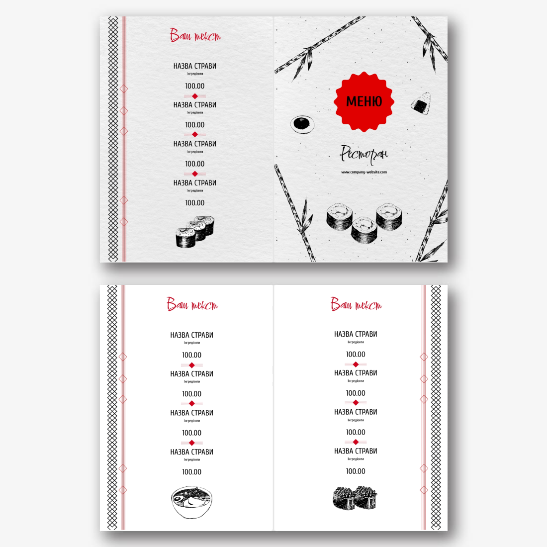 Шаблон меню для ресторану суші