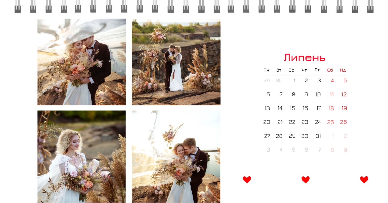 Безкоштовний шаблон родинного календаря у подарунок сестрі, подружці. Створіть макет своїми руками в конструкторі календарів.