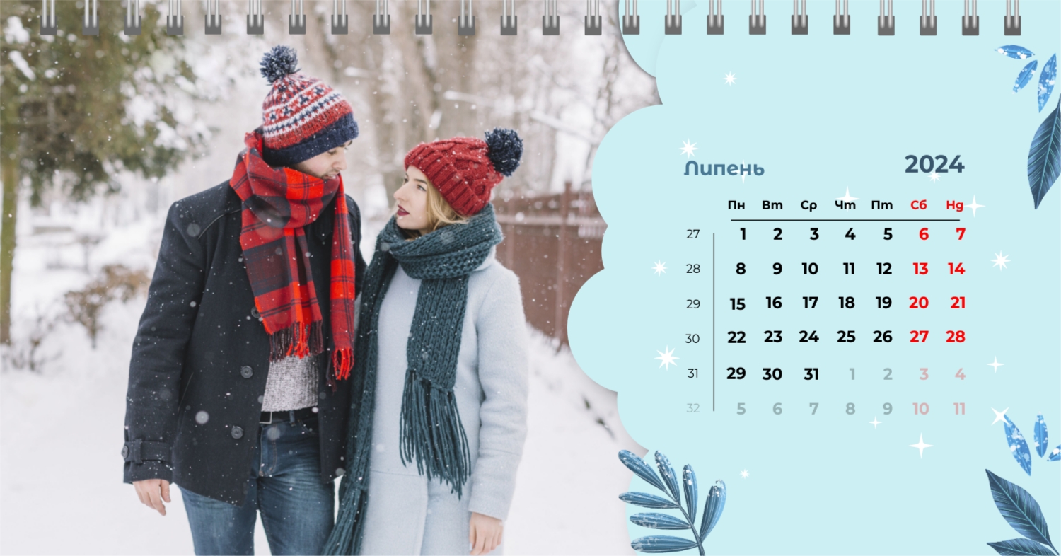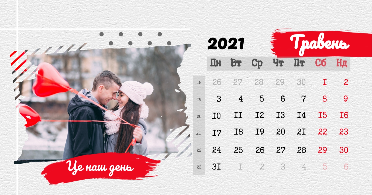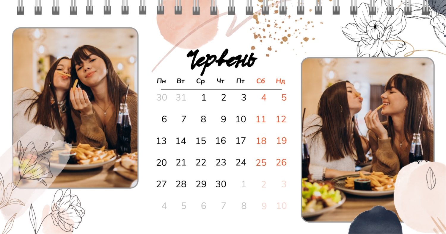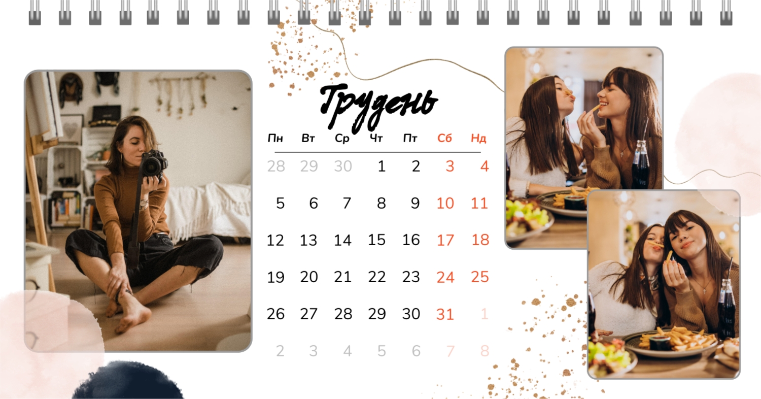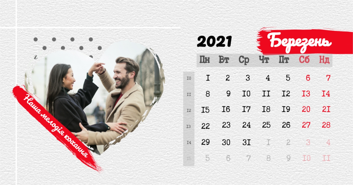 Безкоштовний шаблон календаря з найкращими спогадами закоханих. Створіть макет своїми руками в конструкторі календарів.