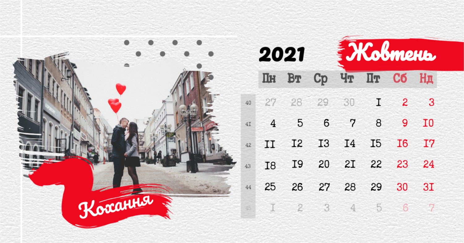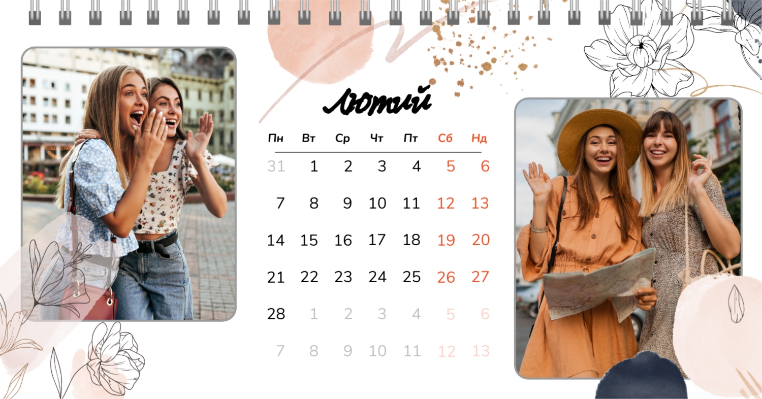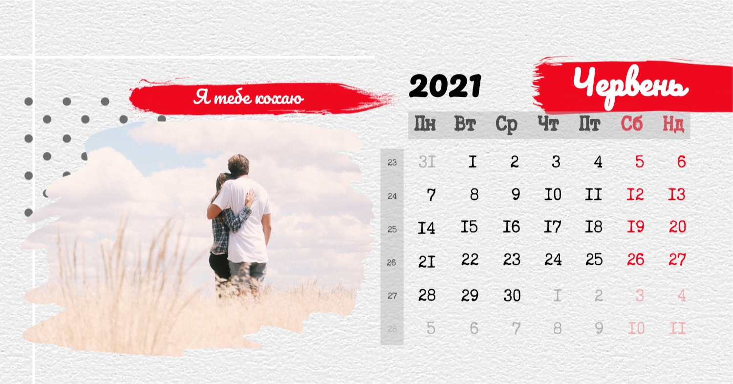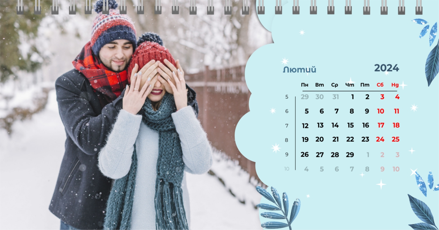 Безкоштовний шаблон календаря з найкращими спогадами закоханих. Створіть макет своїми руками в конструкторі календарів.