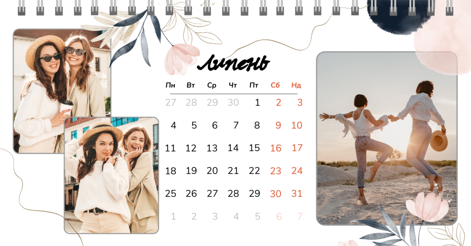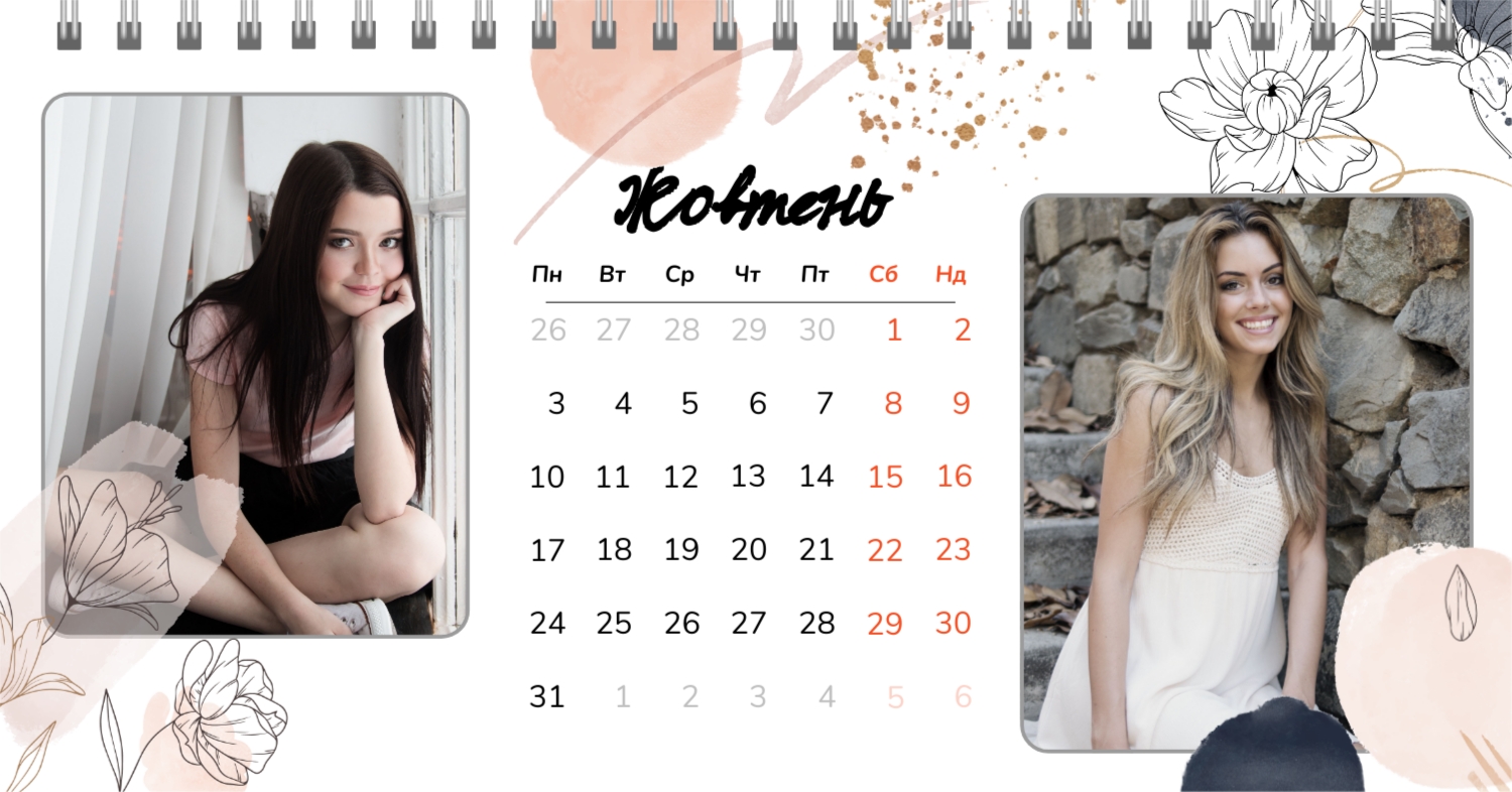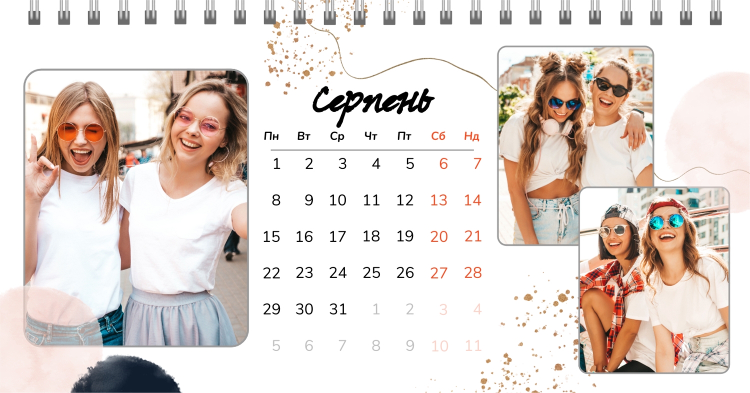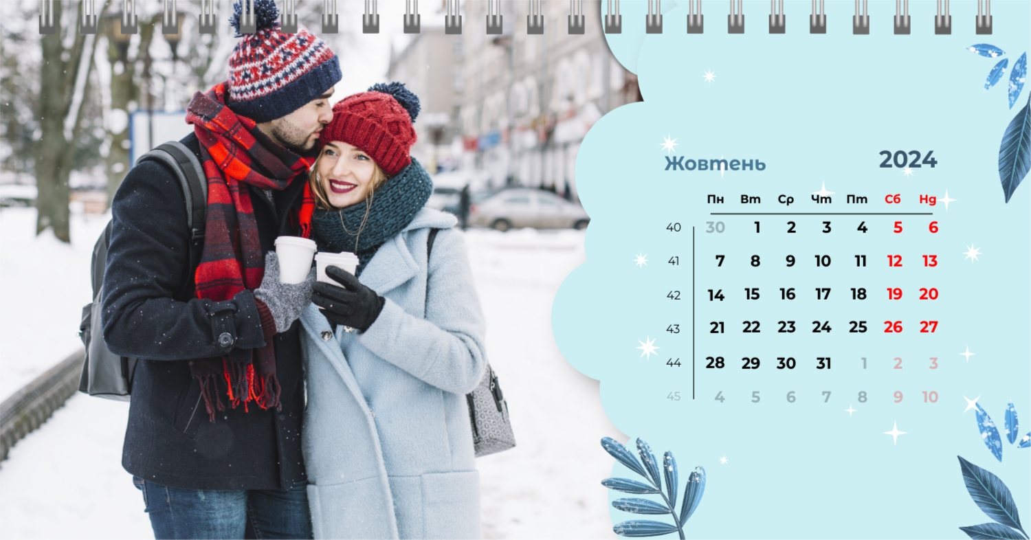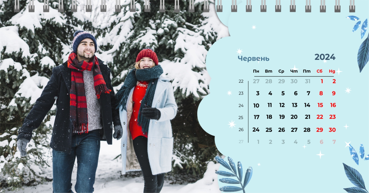 Безкоштовний шаблон календаря з найкращими спогадами закоханих. Створіть макет своїми руками в конструкторі календарів.