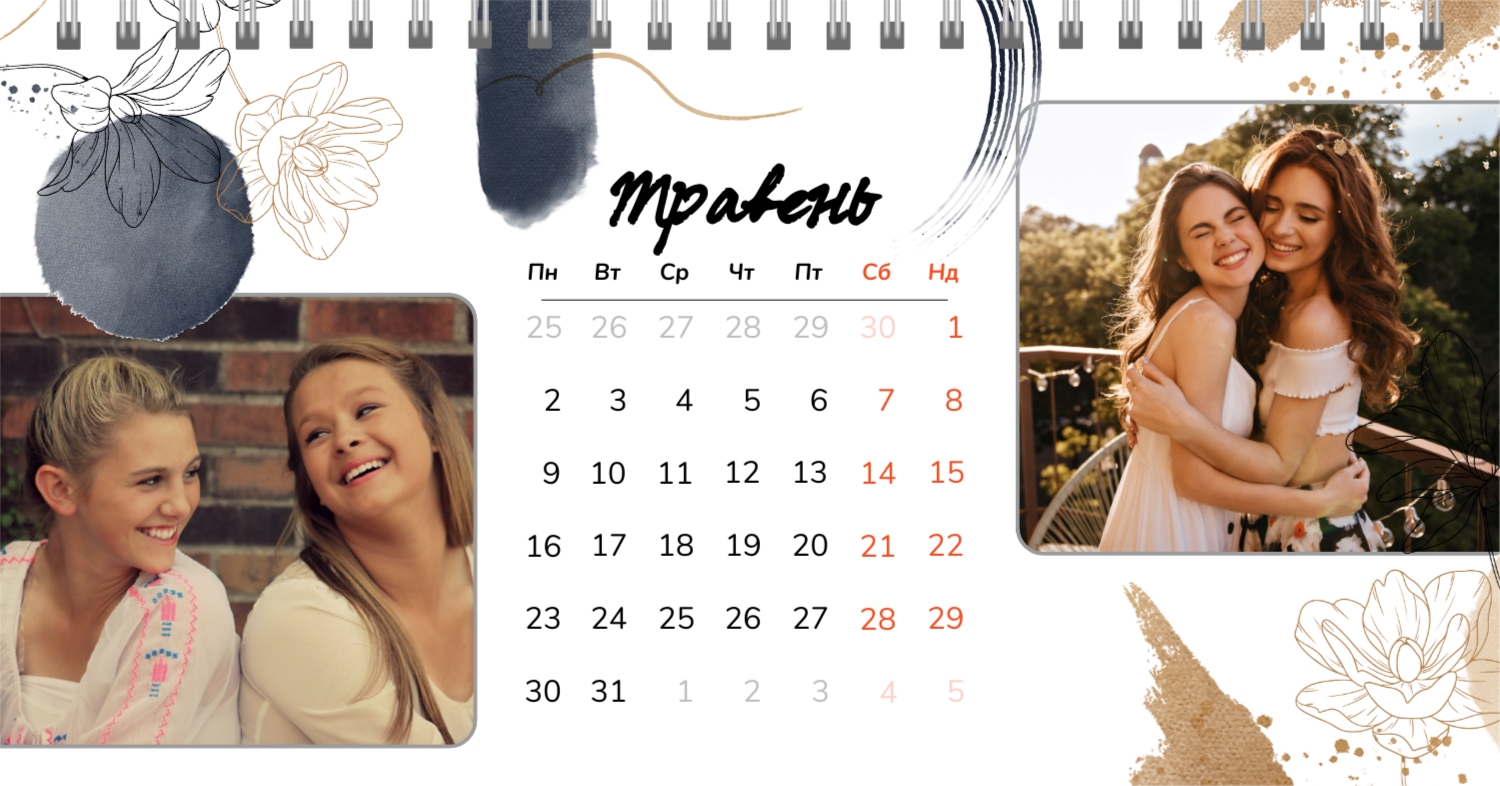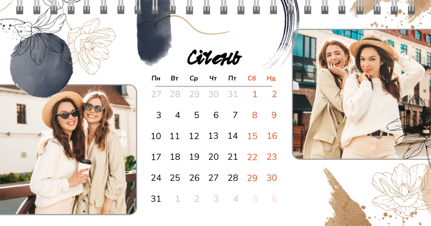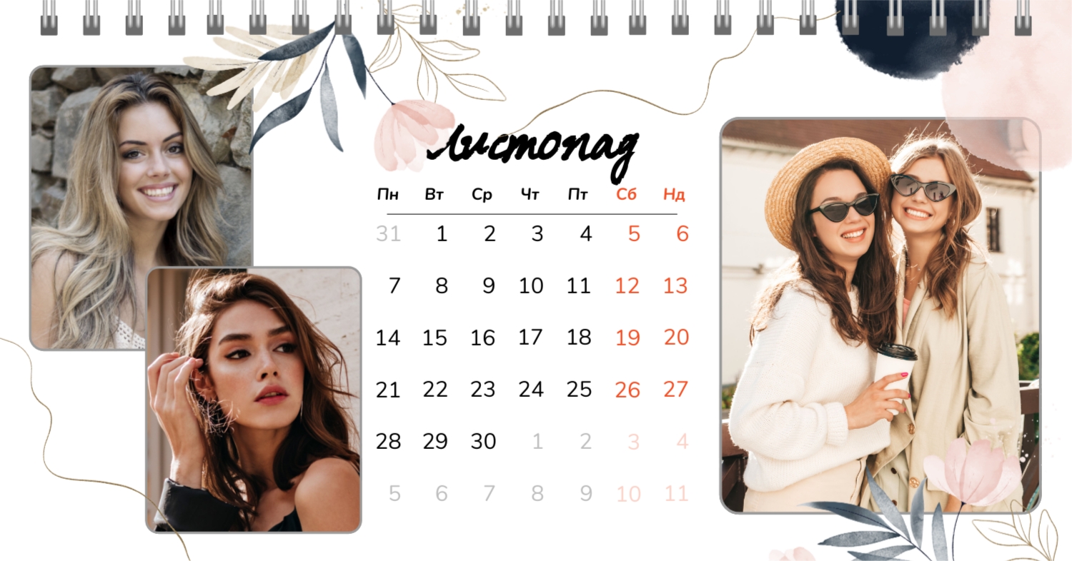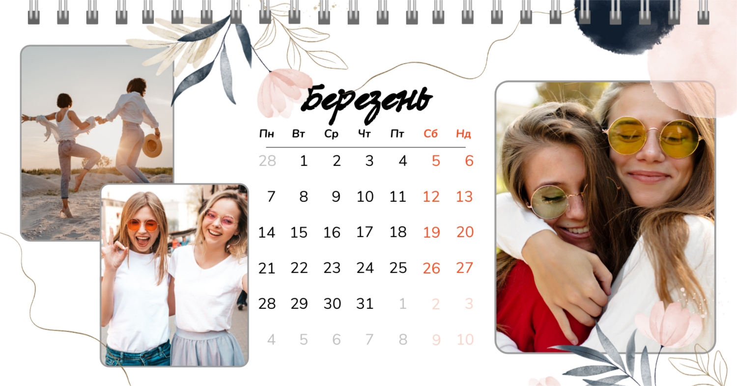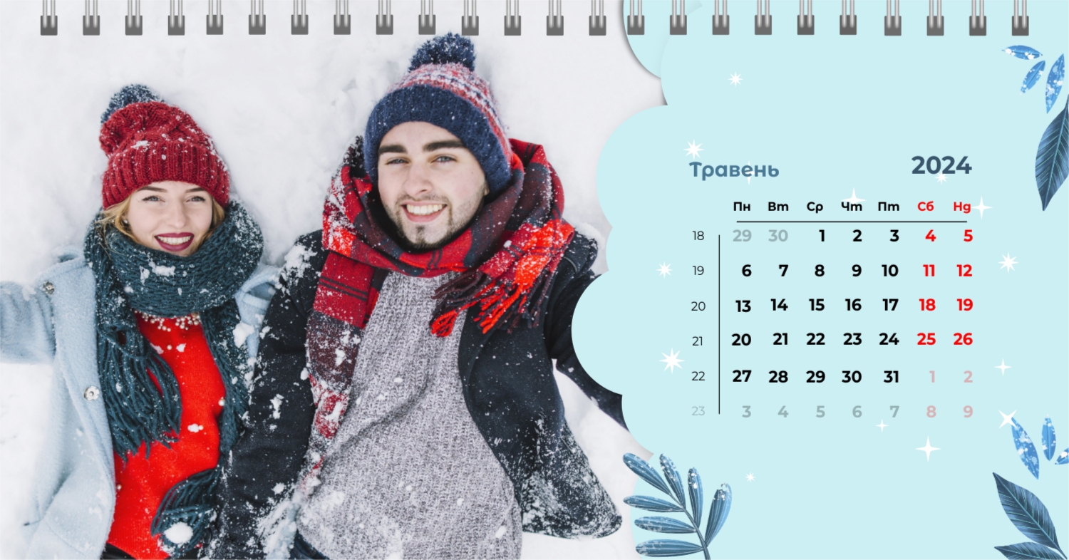 Безкоштовний шаблон календаря з найкращими спогадами закоханих. Створіть макет своїми руками в конструкторі календарів.