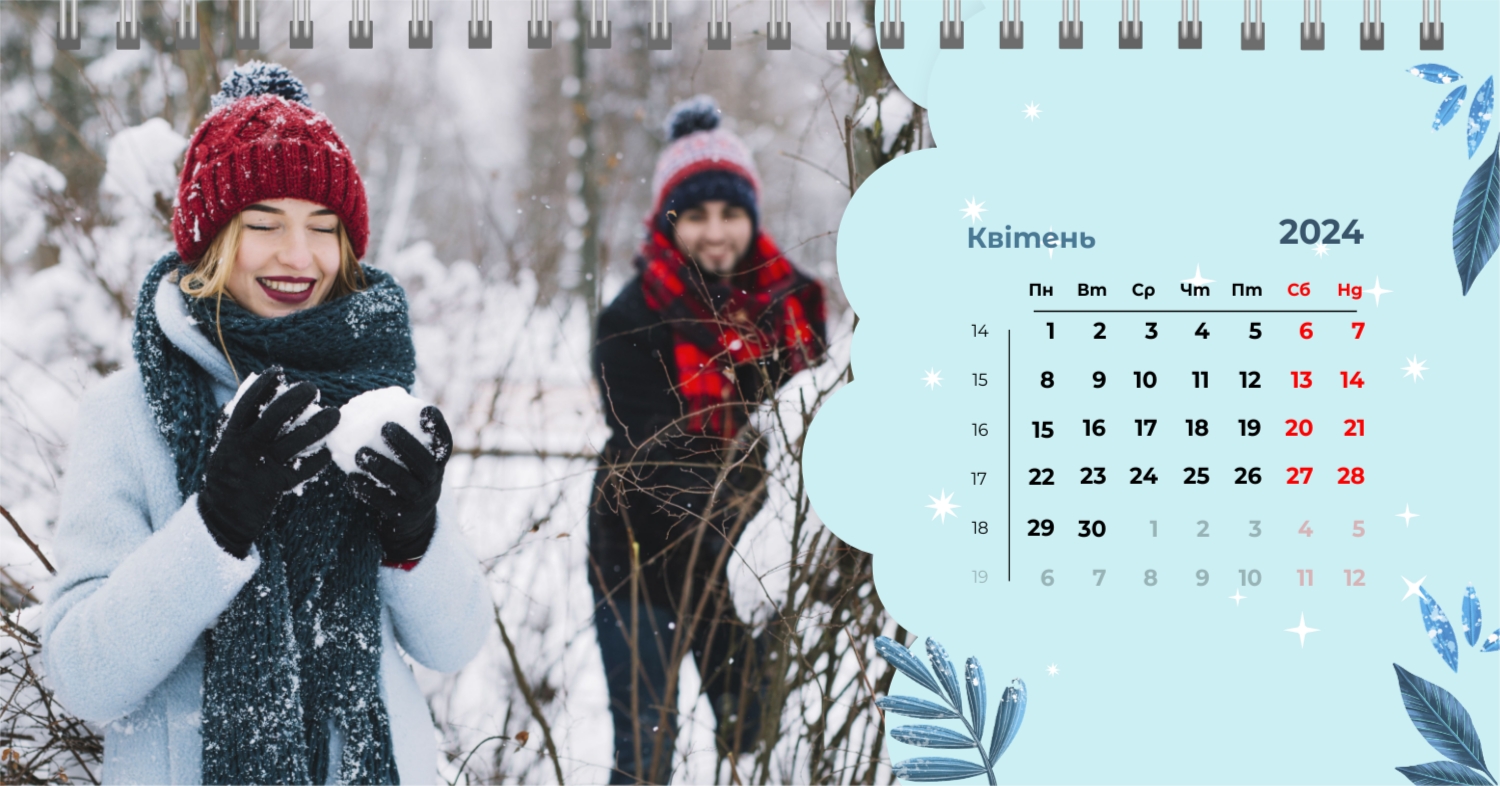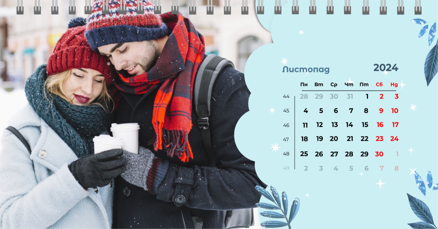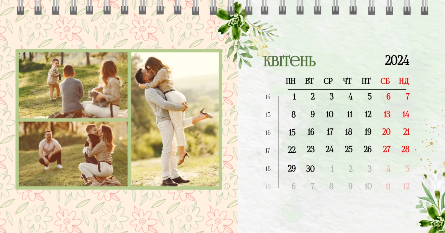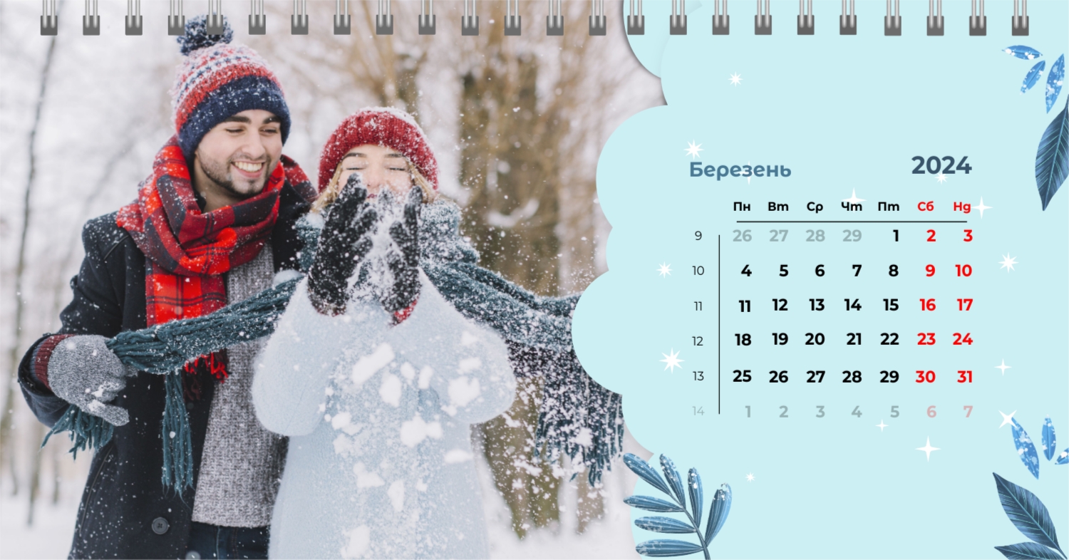 Безкоштовний шаблон календаря з найкращими спогадами закоханих. Створіть макет своїми руками в конструкторі календарів.