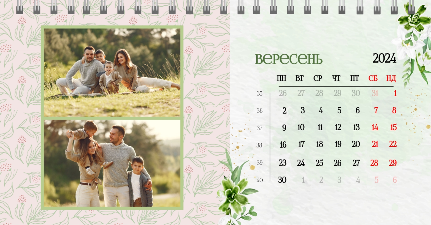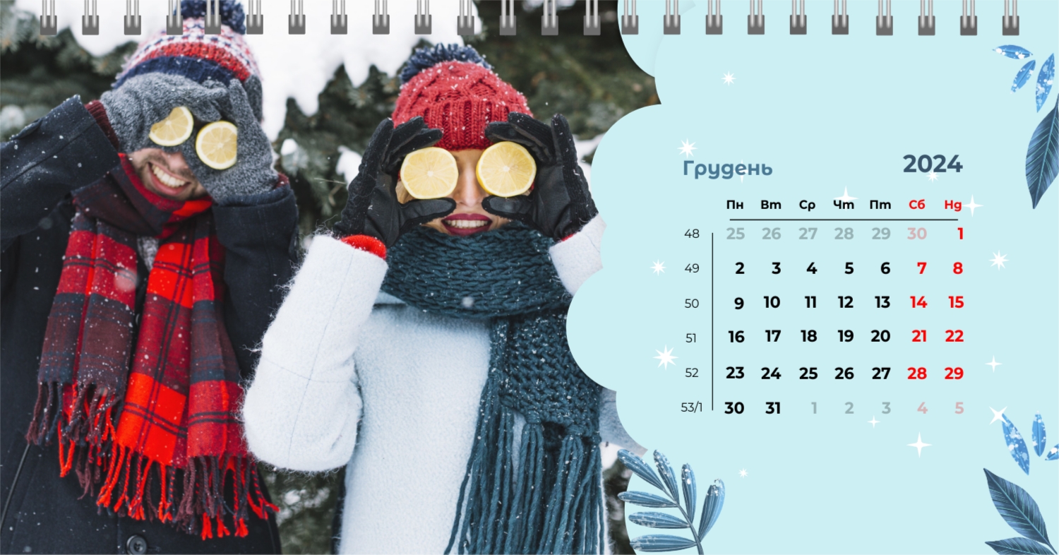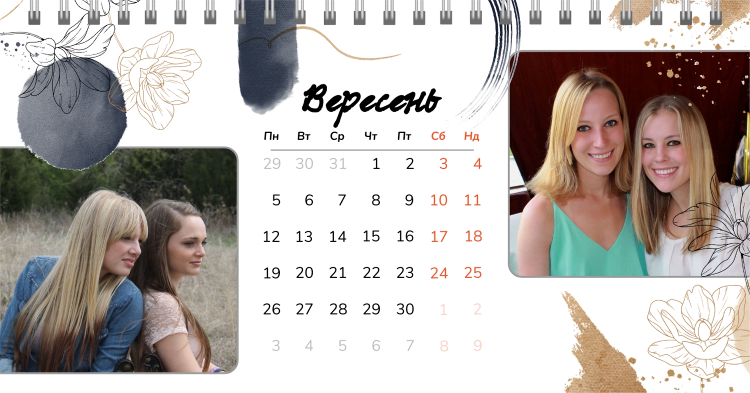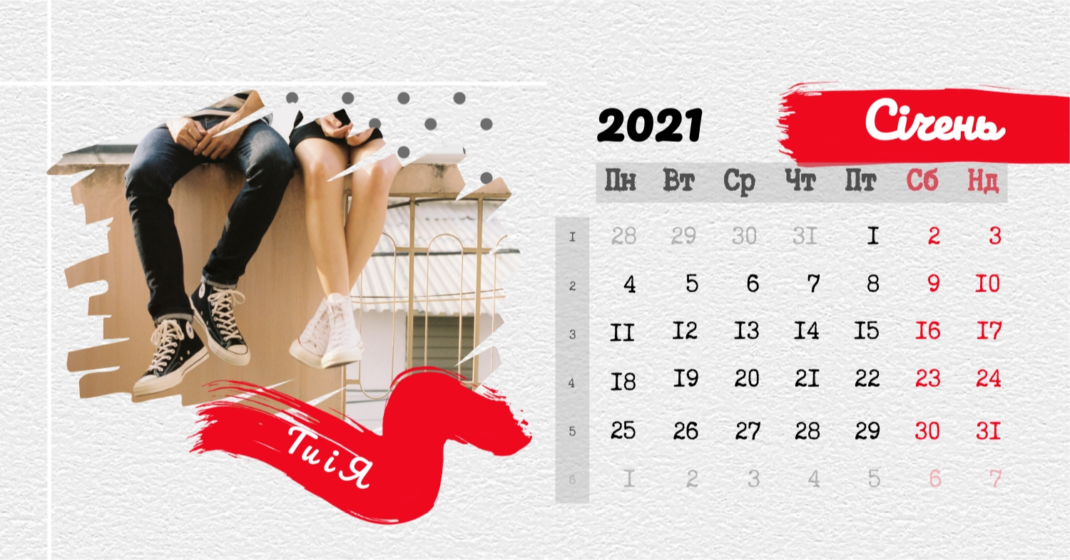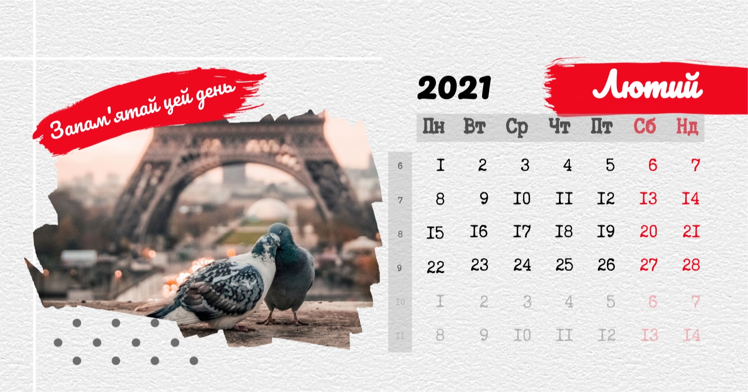 Безкоштовний шаблон календаря з найкращими спогадами закоханих. Створіть макет своїми руками в конструкторі календарів.