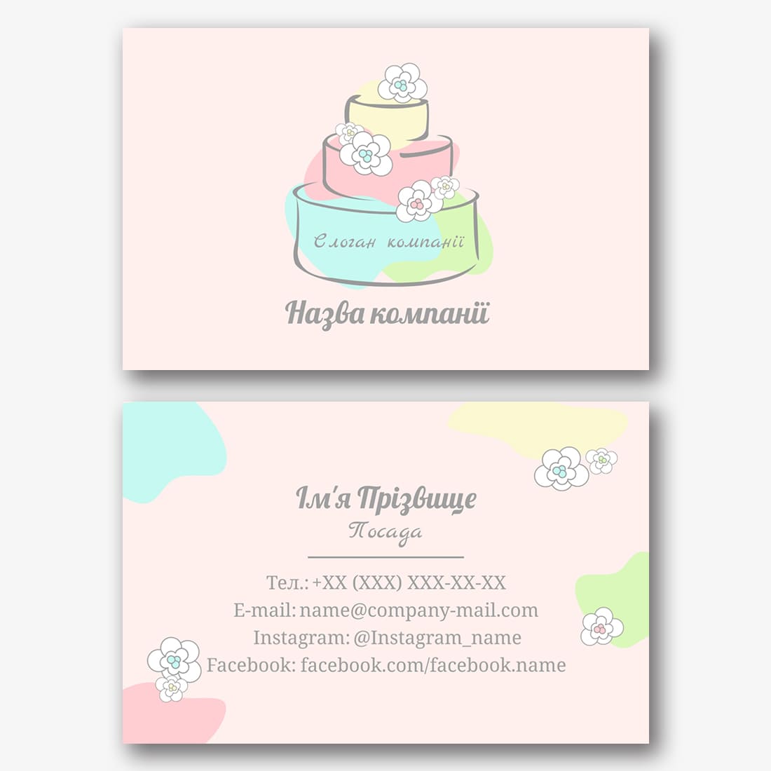 Безкоштовний шаблон візитки кондитерської, кондитера, кенді-бару. Створіть макет своїми руками у конструкторі візиток.