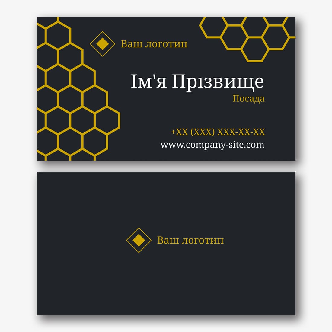 Безкоштовний шаблон чорної візитки пасічника, продавця меду, постачальника меду, пасіки. Створіть макет своїми руками в конструкторі візиток.