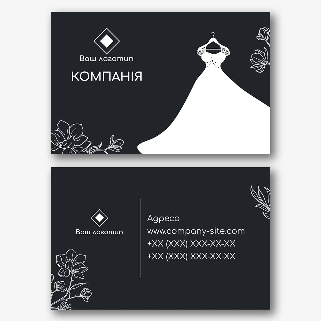 Безкоштовний шаблон чорної візитки для весільного агентства, організатора весіль, весільного салону. Створіть макет своїми руками в конструкторі візиток.