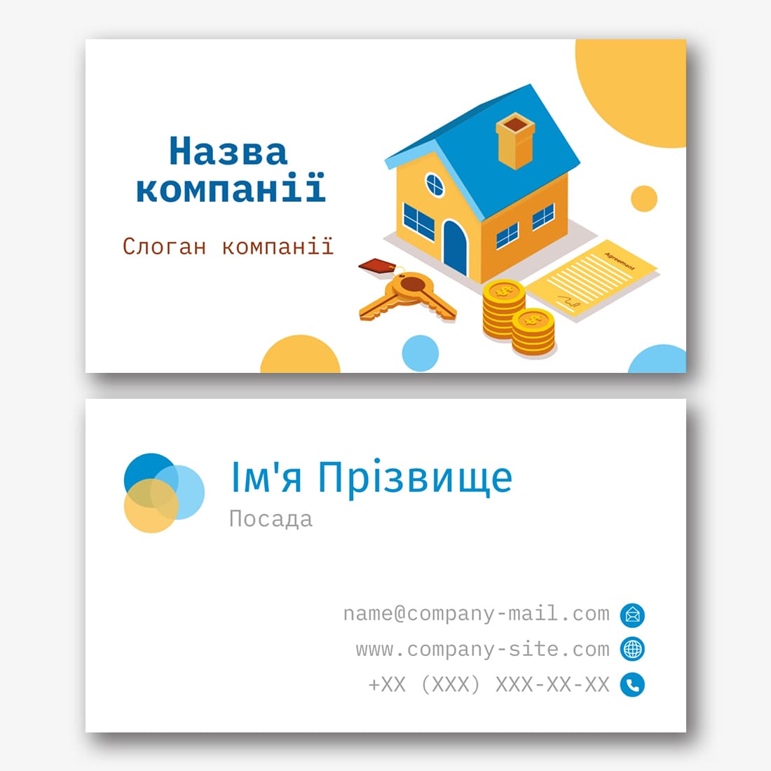 Безкоштовний шаблон візитки забудовника, будівельної компанії, архітектора, агента з нерухомості. Створіть макет своїми руками у конструкторі візиток.