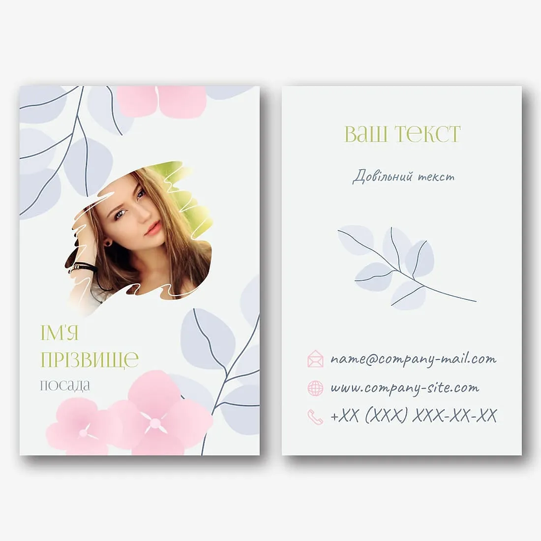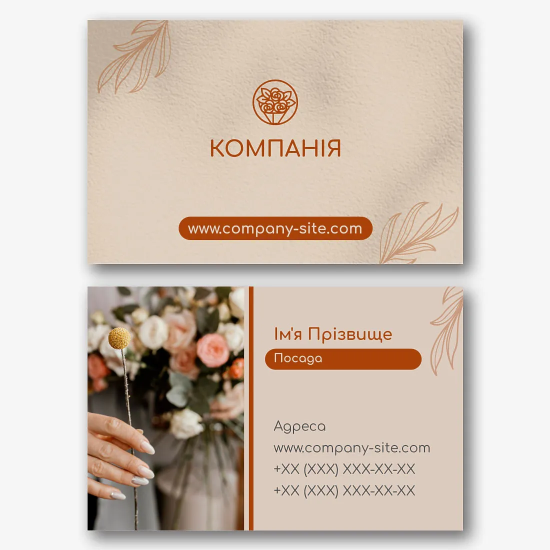 Безкоштовний шаблон візитки ландшафтного дизайнера, флориста, садівника, магазину квітів. Створіть макет своїми руками у конструкторі візиток.
