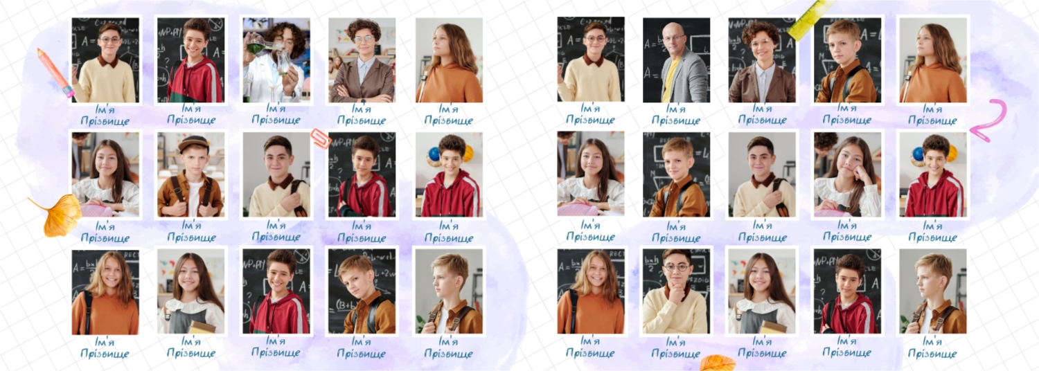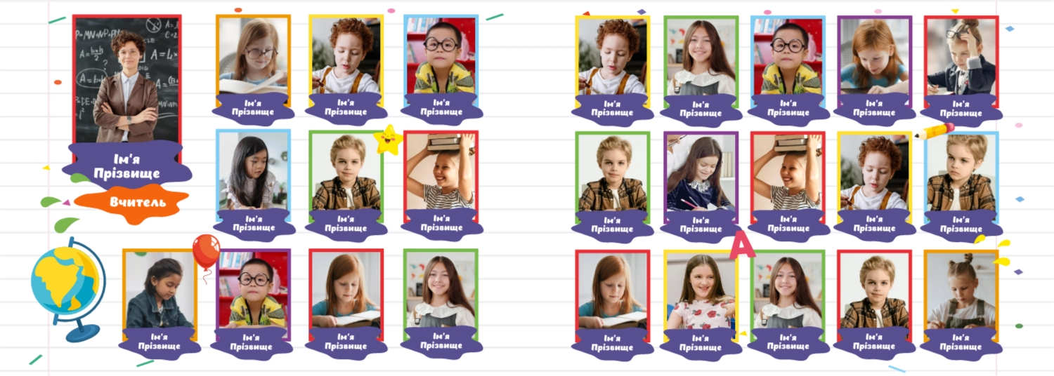 Шаблон "Люблю школу" є прекрасним вибором для створення випускної фотокниги в стилі шкільного зошита. Цей шаблон оформлений в яскравих кольорах, що нагадують обкладинку звичайного зошита, і містить різні елементи, пов'язані зі шкільною тематикою. На кожній сторінці фотокниги ви знайдете унікальні шкільні елементи, такі як лінії для написання, клітини, зошитові сторінки. Це створює атмосферу школи і дозволяє описувати найяскравіші моменти шкільного життя. Ви можете використовувати цей панорамний шаблон в онлайн-конструкторі, щоб створити унікальну фотокнигу своїми руками. Вам буде доступно багато функцій, таких як додавання фотографій, тексту, шрифтів, ефектів і навіть можливість прикрашати сторінки різними шкільними наклейками та ілюстраціями. Використовуйте шаблон "Люблю школу" в онлайн-конструкторі і створіть унікальний фотоальбом, який стане незабутнім подарунком для вас і ваших друзів або для зберігання спогадів про шкільні роки.