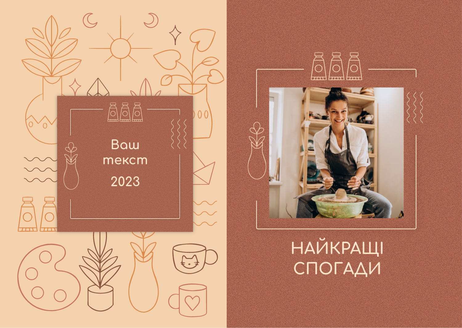 Шаблон фотокниги "кращі спогади з уроків гончарства" являє собою ідеальну основу для збереження і вироби ваших незабутніх моментів, пов'язаних з майстерністю в гончарній справі. Цей альбом є винятковою формою, що дозволяє уособити вашу любов до глини і створення унікальних керамічних творів. На обкладинці фотокниги ми пропонуємо помістити зображення вашого найулюбленішого гончарного шедевра. Це може бути чашка, ваза або будь-який інший предмет, який ви створили своїми руками. Навколо цього зображення можна додати декоративні елементи в стилі гончарства, такі як глиняні візерунки або фрагменти непокритою глазур'ю. Також можна змінювати всі сторінки шаблону під особистий смак. Використовуючи цей шаблон в нашому онлайн-конструкторі, ви зможете створити унікальну вертикальну панорамну фотокнигу, яка стане не тільки дорогоцінним артефактом у вашій колекції, але і чудовим подарунком для друзів і близьких, ділячись з ними вашими кращими моментами зі світу гончарства.
