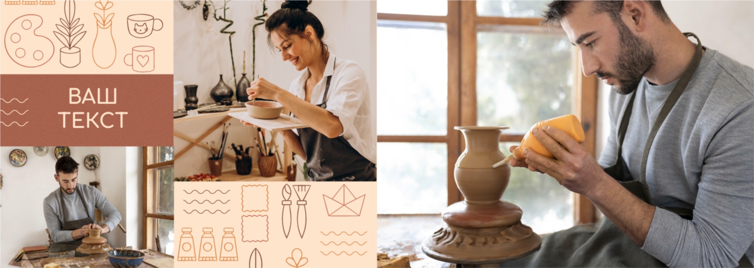Шаблон фотокниги "кращі спогади з майстер-класу гончарства" являє собою ідеальну основу для збереження і вироби ваших незабутніх моментів, пов'язаних з майстерністю в гончарній справі. Цей альбом є винятковою формою, що дозволяє уособити вашу любов до глини і створення унікальних керамічних творів. На обкладинці фотокниги ми пропонуємо помістити зображення вашого найулюбленішого гончарного шедевра. Це може бути чашка, ваза або будь-який інший предмет, який ви створили своїми руками. Навколо цього зображення можна додати декоративні елементи в стилі гончарства, такі як глиняні візерунки або фрагменти непокритою глазур'ю. Не забудьте включити в фотокнигу фотографії з моментами, коли ви працювали разом з друзями або родиною. Це додасть теплоти та емоційної цінності вашій книзі, відображаючи вашу пристрасть до гончарства та тісні стосунки з близькими. Використовуючи цей шаблон в нашому онлайн-конструкторі, ви зможете створити унікальну широку фотокнигу в твердій обкладинці, яка стане не тільки дорогоцінним артефактом у вашій колекції, але і чудовим подарунком для друзів і близьких, ділячись з ними вашими кращими моментами зі світу гончарства.