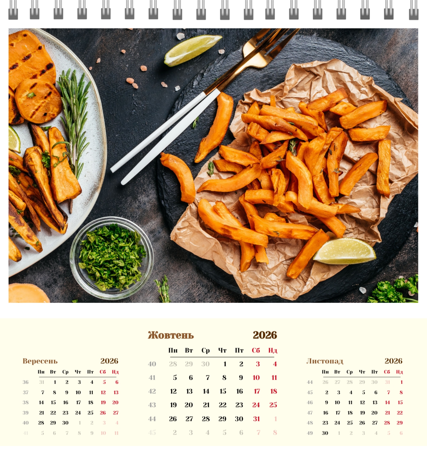 Безкоштовний шаблон календаря-будиночка онлайн магазину handmade, послуг майстра рукоділля. Створіть макет власноруч у конструкторі календарів.