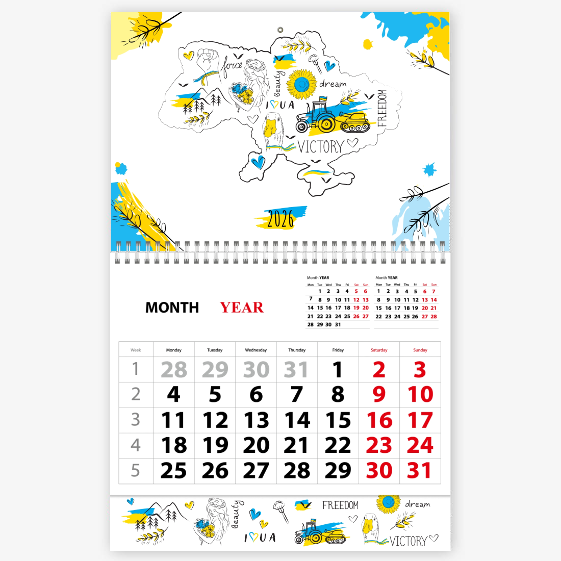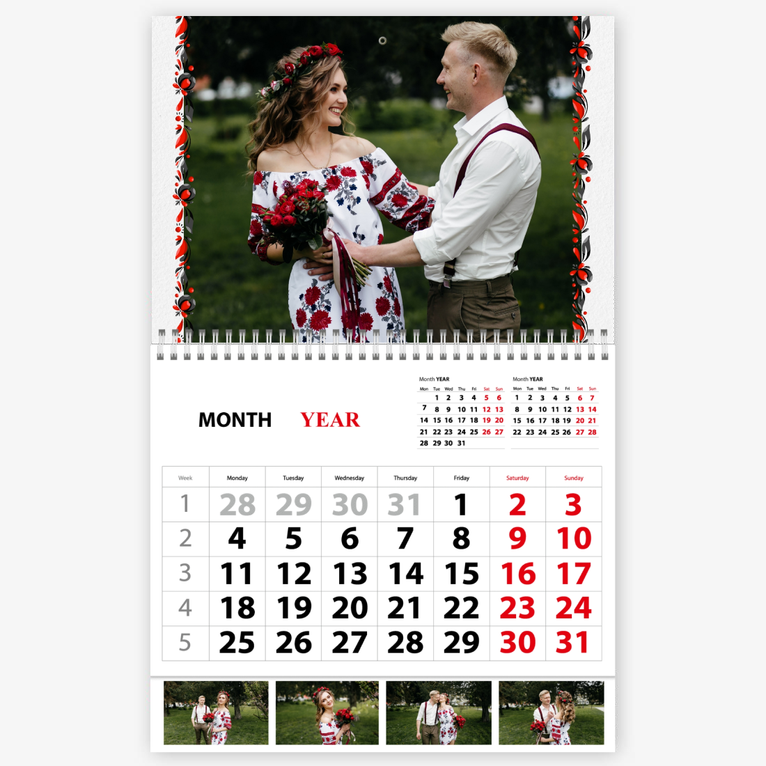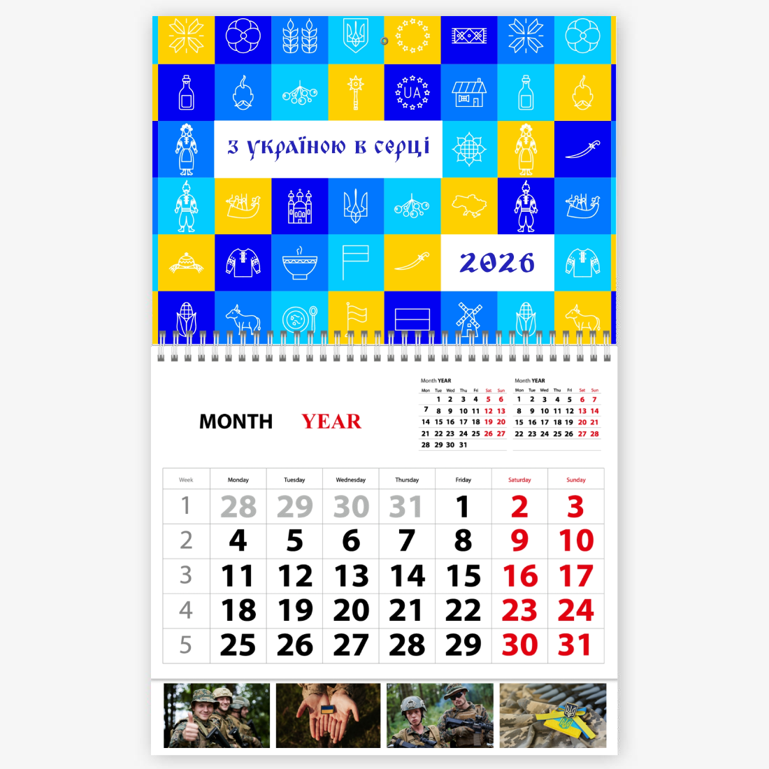 Шаблон квартального календаря Захисники в українському стилі є дивовижним поєднанням культурних елементів і національної символіки, які роблять кожну сторінку неповторною і такою, що запам'ятовується. З цим унікальним дизайном ви зможете створити календар, який не тільки відображає важливі дати, а й надихає національним духом. В онлайн-конструкторі у вас буде можливість налаштувати кожен елемент шаблону під свої уподобання. Ви зможете змінювати кольорову палітру, додавати персональні фотографії чи зображення, а також вписувати власні тексти, щоб робити календар ще ближчим до вашого серця. Шаблон Захисники в українському стилі втілює в собі дух національної гордості та любові до рідної країни. Завдяки гнучким можливостям редагування онлайн-конструктора, ви можете перетворити цей шаблон на унікальний календар, який не лише відображає ваш смак, а й стане помітним акцентом у вашому інтер'єрі.