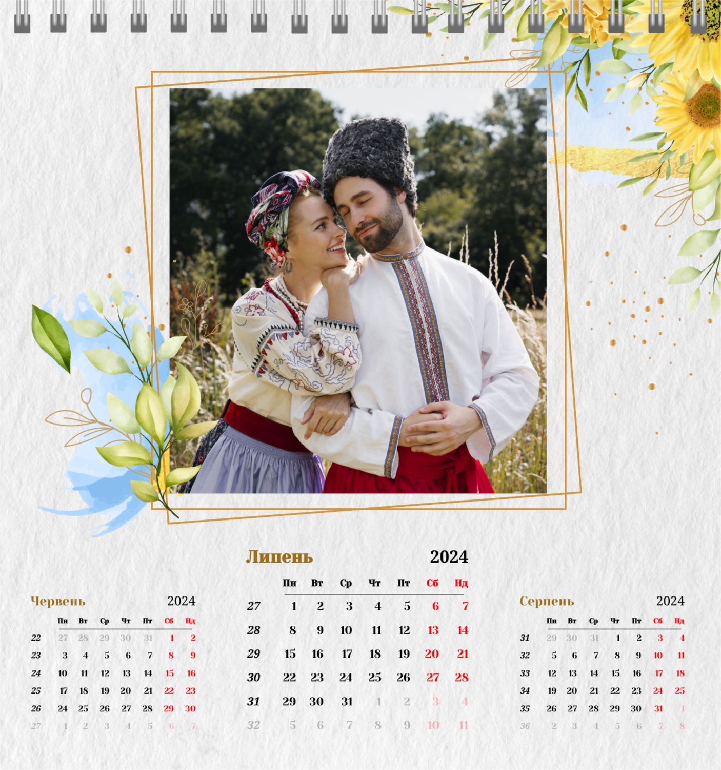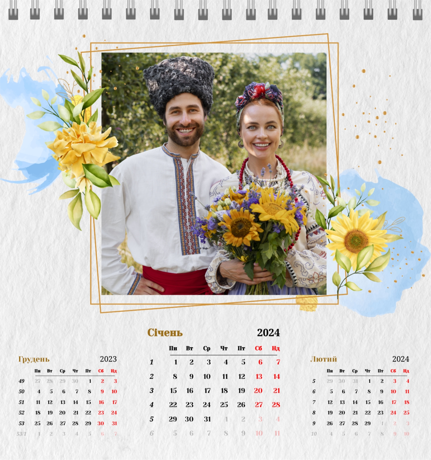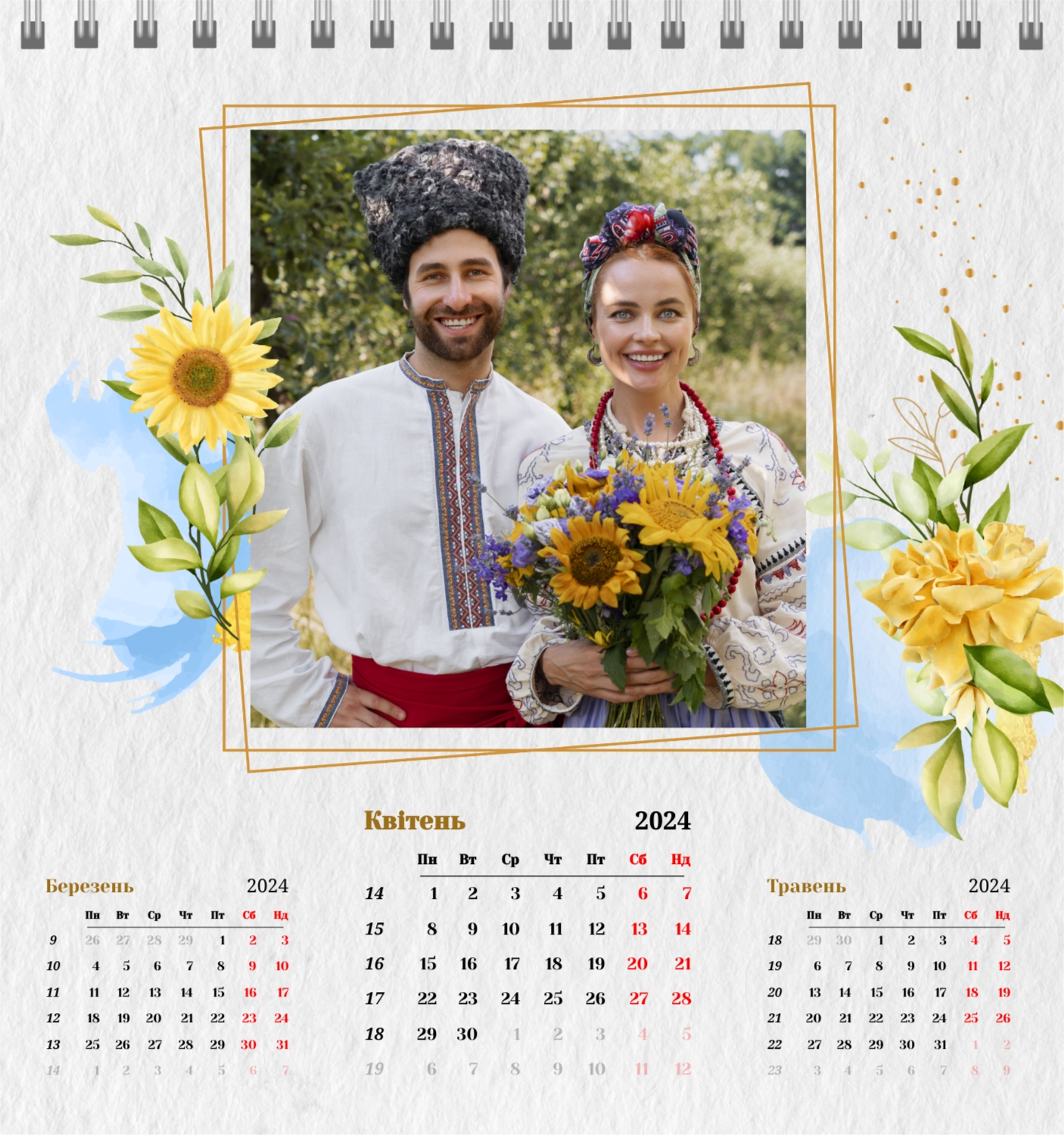 Ваша історія кохання заслуговує бути вираженою в найпрекраснішому й унікальному образі, і наш онлайн-конструктор календарів пропонує вам ідеальний інструмент для втілення цієї історії. Натхненний українським стилем та уособленою ніжністю соняшників, наш готовий шаблон календаря для закоханих "Наша Історія" стане невід'ємною частиною вашого спільного шляху. Із цим шаблоном ви зустрінете можливості творчого редагування в онлайн-конструкторі, що надають широкий діапазон інструментів для втілення вашої індивідуальної історії. Змінюйте колірну гаму, щоб вона відображала ваші вподобання, додавайте текст, що розповідає про ваші важливі дати й моменти. Вельми легко можна вбудувати в дизайн елементи української культури, підкреслюючи ваш зв'язок із цією землею. Завдяки інтуїтивно зрозумілому інтерфейсу онлайн-конструктора, ви зможете легко налаштовувати кожну деталь календаря, переглядати зміни в режимі реального часу та ділитися своїм творінням із близькими. Таким чином, створення унікального календаря стане приємним і творчим процесом, який ви зможете повною мірою насолоджуватися разом.