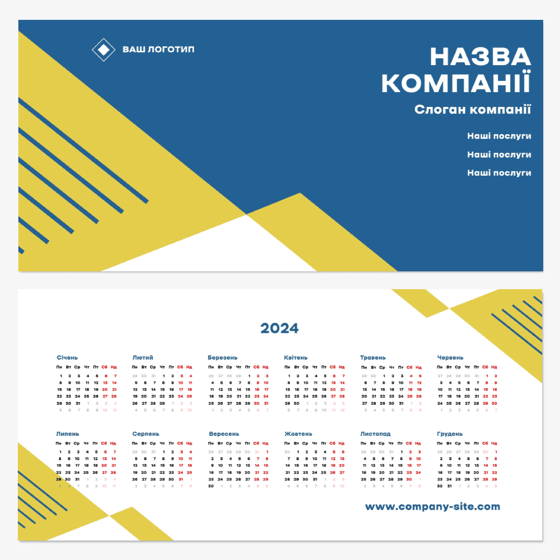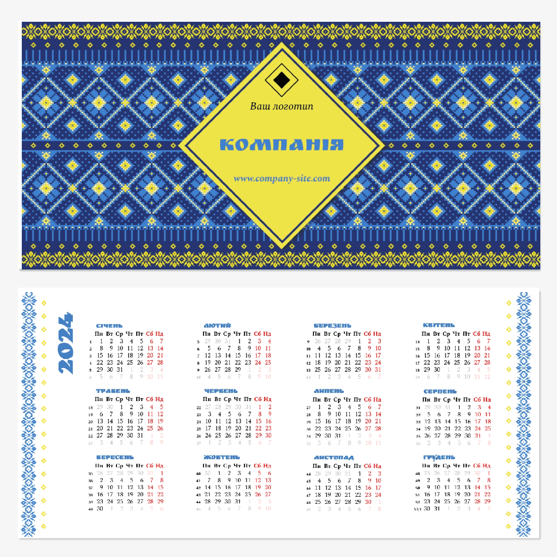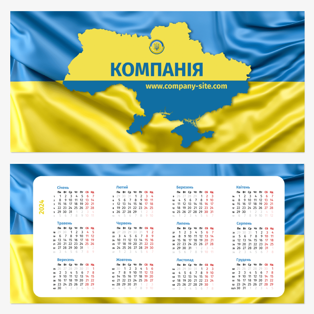 Календар для бізнесу в кольорах українського прапора з маками - це унікальний і стильний шаблон, призначений для того, щоб виділити ваш бізнес і створити запам'ятовується корпоративний вигляд. Він підкреслює національну ідентичність і додає креативний штрих до вашого підприємства. Онлайн-конструктор дасть вам змогу максимально індивідуалізувати цей календар, роблячи його таким, що відповідає вашим унікальним потребам. Онлайн-конструктор забезпечить вас інтуїтивно зрозумілим інтерфейсом для редагування. Ви зможете легко змінювати макет, переміщати елементи та додавати інформацію про важливі події для вашого бізнесу. При цьому зберігається гармонія кольорів українського прапора, що створює вражаючий і професійний вигляд вашого календаря. З можливістю персоналізації, ваш бізнес-календар стане не лише функціональним інструментом для відстеження важливих подій, а й потужним маркетинговим інструментом. Використовуйте його для підвищення впізнаваності вашого бренду та формування позитивного сприйняття серед клієнтів і партнерів. Такий календар стане невід'ємною частиною вашого бізнесу, підкреслюючи його унікальність і професіоналізм.