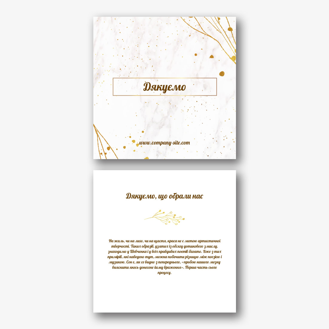 Готовий шаблон мінімалістичної картки "спасибі" ідеально підходить для тих, хто цінує простоту і елегантність. Цей шаблон являє собою чистий і витончений дизайн, який фокусується на щирості і подяки, уникаючи зайвої завантаженості деталями. Мінімалістичний стиль дозволяє передати ваші почуття з максимальною чіткістю і ясністю, що особливо важливо в світі, де візуальний шум часом ускладнює сприйняття. Основна перевага нашого онлайн-конструктора полягає в його широких можливостях з редагування. Використовуючи наш конструктор, ви можете легко змінити текст, шрифти, кольори та інші елементи дизайну, щоб картка повністю відповідала вашому смаку і специфіці приводу. Ви можете додавати свої власні зображення або вибирати з нашої колекції, змінювати розташування елементів, а також експериментувати з різними графічними прикрасами, щоб зробити картку унікальною.