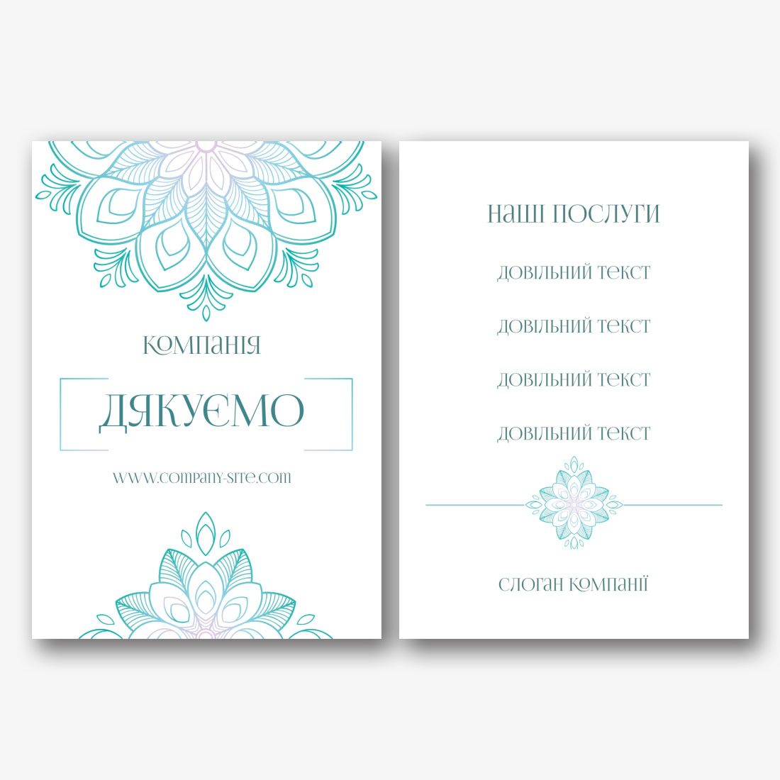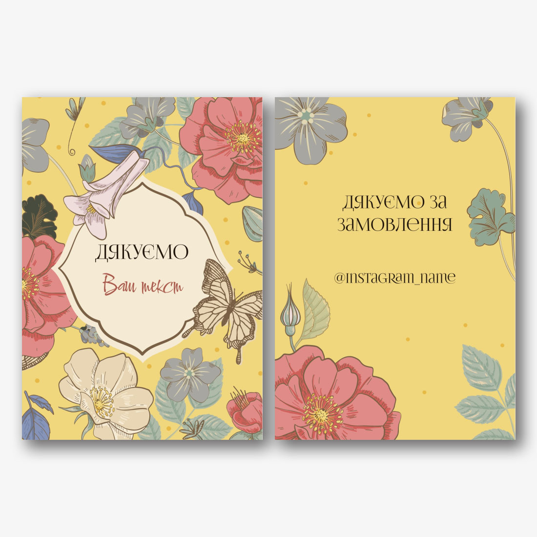 Готовий шаблон картки "Спасибі" з квітковим дизайном – це універсальне рішення для тих, хто хоче висловити подяку з особливим теплом і витонченістю. За допомогою онлайн-конструктора інструменту Кожен користувач може легко адаптувати шаблон під свої потреби, додаючи власні тексти, вибираючи різні шрифти і змінюючи колірні схеми. В онлайн-конструкторі можна замінити стандартний текст "Дякуємо за замовлення" і інший на свої власні слова, що робить кожну картку більш особистою і щирою. Також є можливість завантажити свої зображення або вибрати із запропонованих галерей, щоб додати індивідуальності та унікальності.