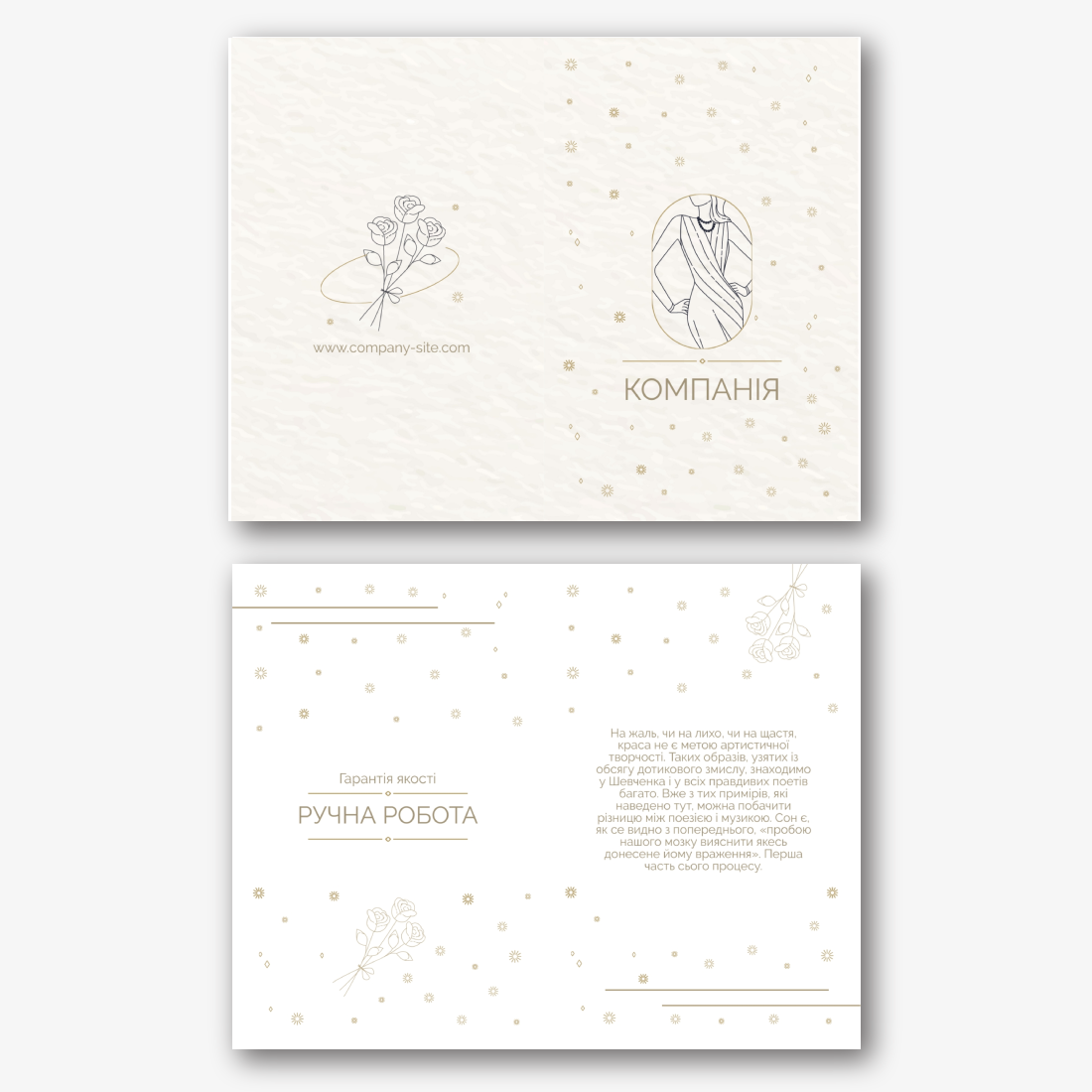 Шаблон бирки-книжки для дитячих товарів розроблений з урахуванням всіх потреб і переваг в даній сфері. Яскраві, привабливі дизайни, милі малюнки та елементи допоможуть створити унікальну атмосферу Вашого магазину. Наші шаблони бирок-книжок можуть бути корисні не тільки Власникам дитячих магазинів, а й іншим професіоналам, які працюють з дитячими товарами. Це можуть бути виробники іграшок, дитячого одягу та взуття, а також майстри, що створюють унікальні вироби ручної роботи. У нашому онлайн-конструкторі ви можете легко змінити всі елементи дизайну під ваші потреби. Ви можете додати або видалити текст, змінити шрифти, розміри і кольору, щоб бирка-книжка максимально відповідала вашому бренду. Також є можливість додати свої зображення або логотипи, що зробить бирку унікальною і впізнаваною. Крім того, наш конструктор пропонує різноманітні фонові малюнки та елементи декору, які можна комбінувати і змінювати на свій смак. Ви можете експериментувати з різними стилями та настроями, щоб досягти ідеального результату. Можливість попереднього перегляду дозволяє побачити всі зміни в реальному часі і переконатися, що готовий продукт буде виглядати саме так, як ви задумали. Використовуючи наш онлайн-конструктор, ви зможете створити унікальну бирку-книжку своїми руками, яка підкреслить індивідуальність вашого дитячого магазину і приверне увагу клієнтів. Незалежно від того, чи є ви власником магазину, виробником або педагогом, наші шаблони допоможуть вам виділитися і створити щось по-справжньому особливе.
