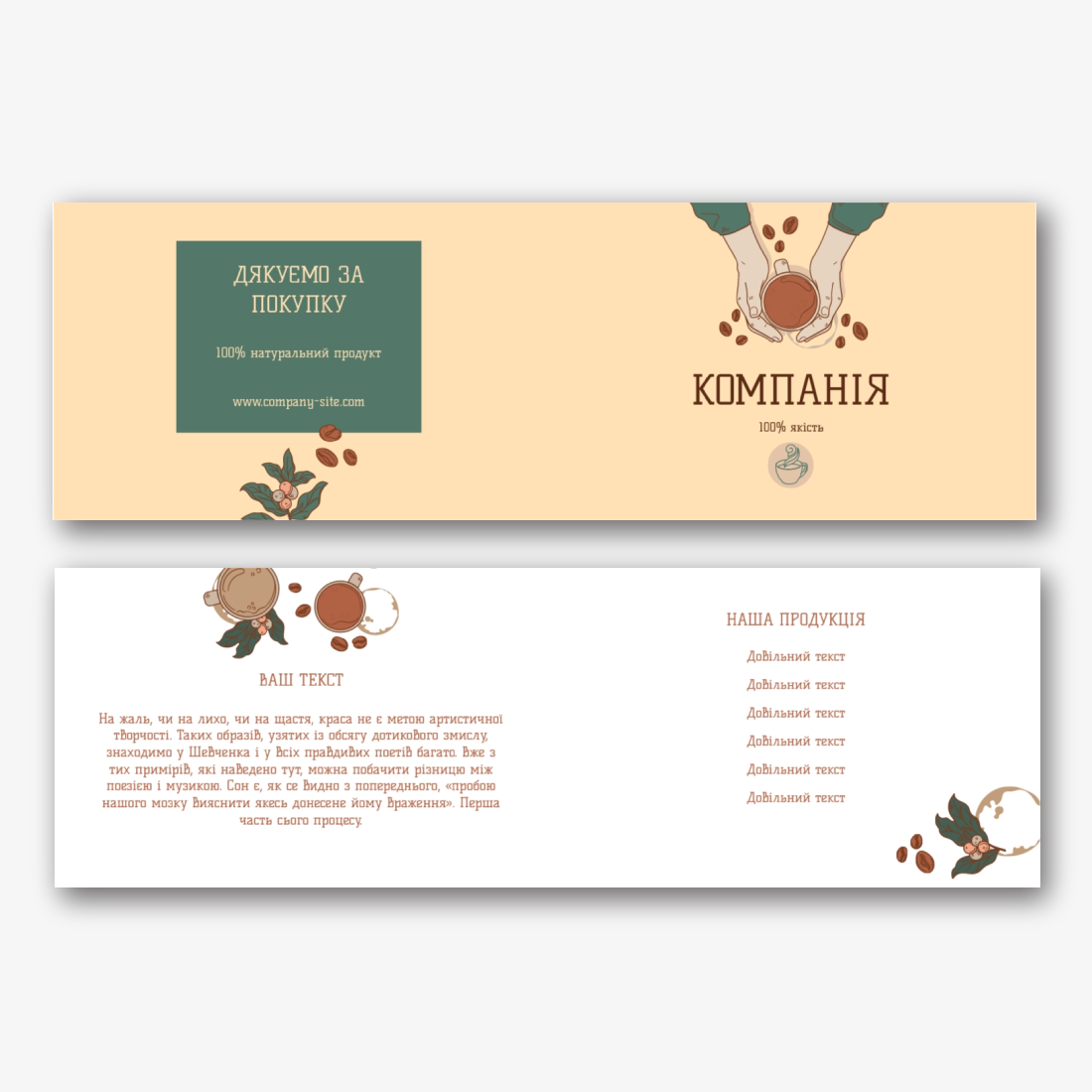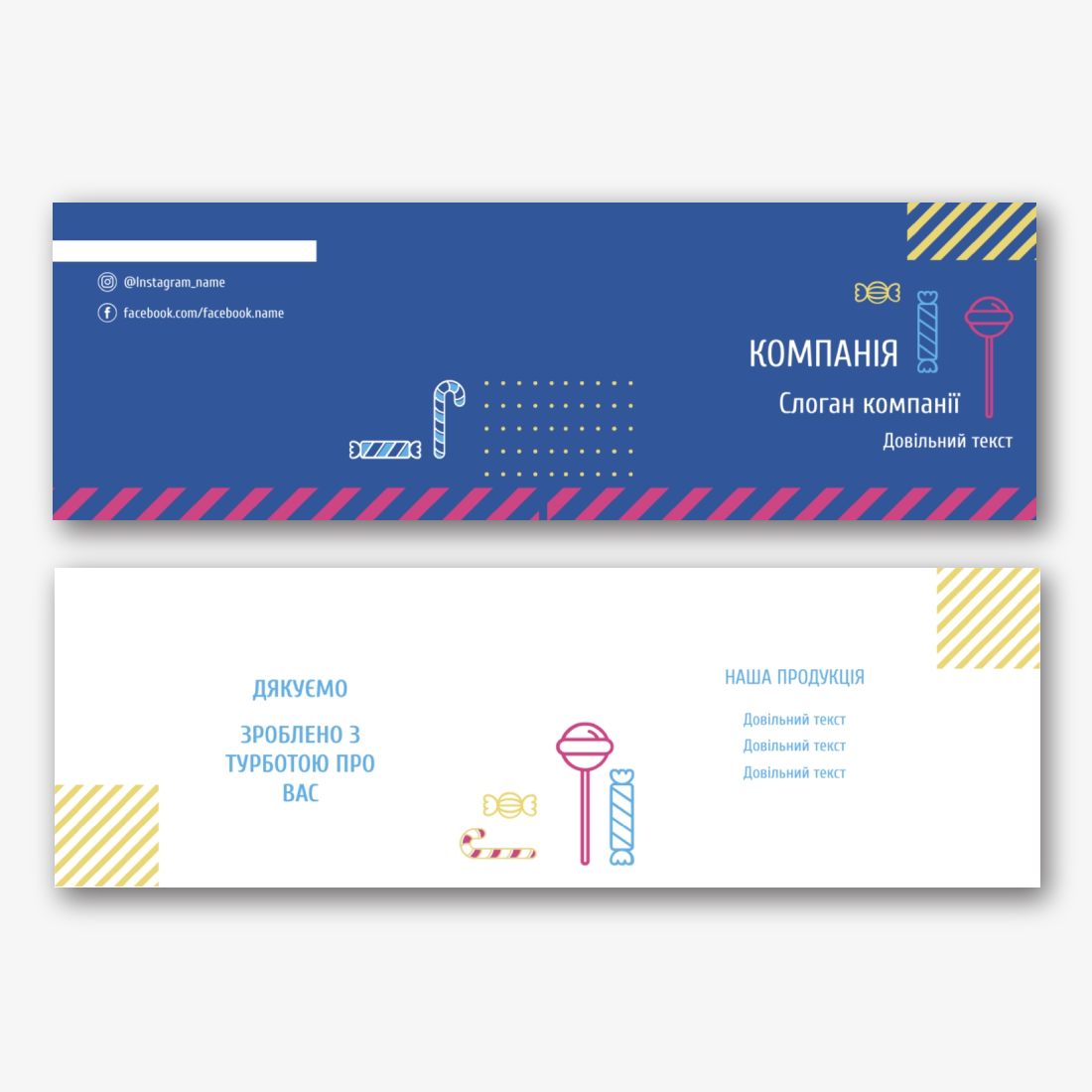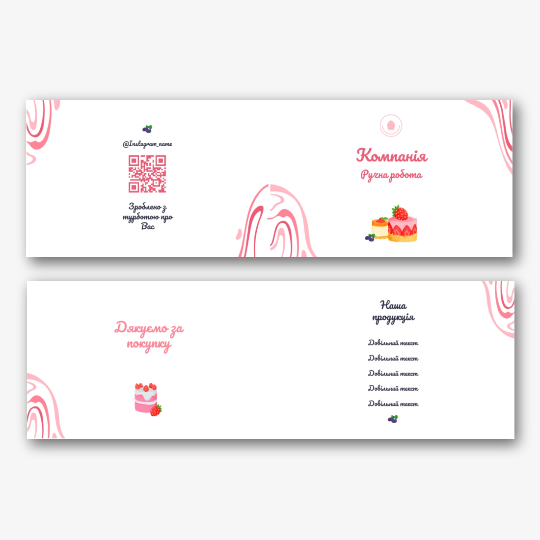 Довга і містка бирка-книжка-відмінне рішення для кондитерських та інших підприємств у сфері пекарні та кондитерської справи. Цей унікальний шаблон дозволяє легко створювати індивідуальні мітки з вашим логотипом або дизайном, що ідеально підходить для упаковки продукції і створення фірмового стилю. В онлайн-конструкторі ви можете налаштувати кожну деталь даного шаблону: вибрати фони, Шрифти і кольору, додати текст або зображення, щоб створити бирку-книжку, що відображає унікальність вашого бренду. Це зручне рішення для тих, хто хоче виділитися і створити враження з першого погляду.