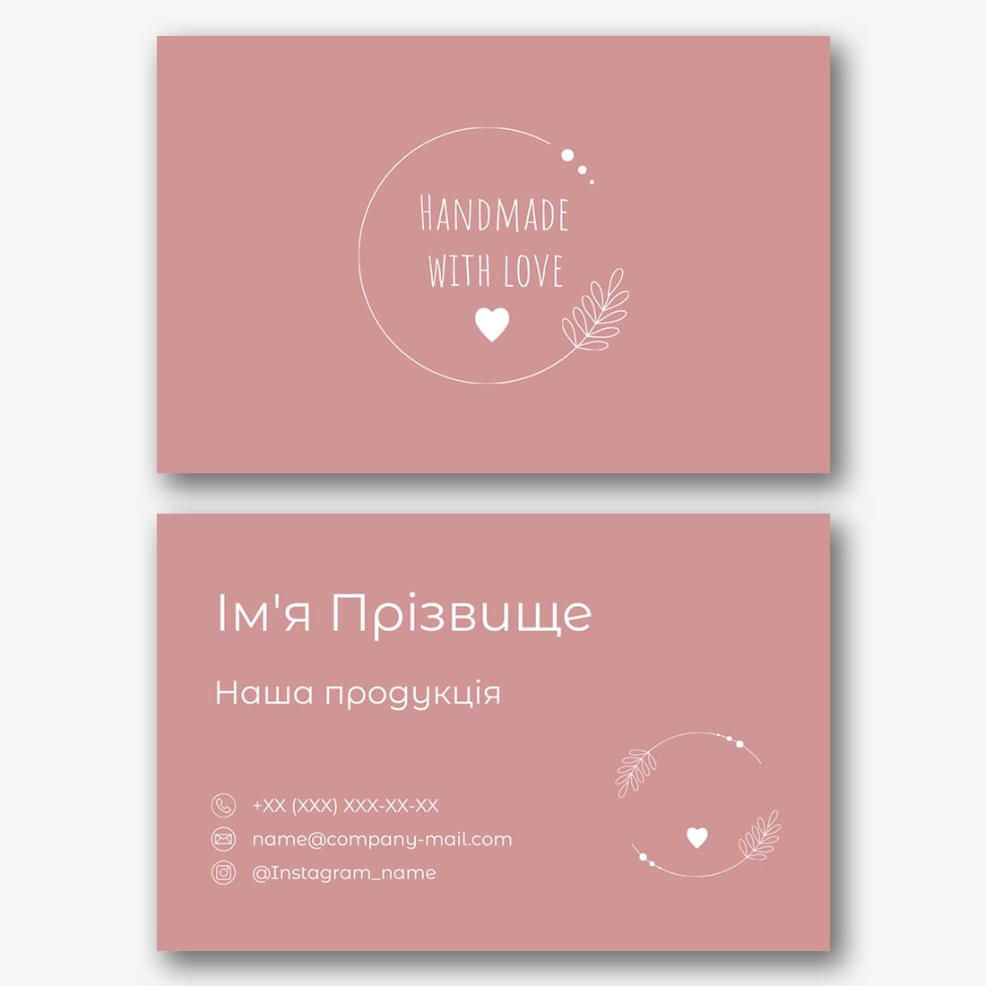 Безкоштовний шаблон візитки для магазину рукоділля, рукодільника, майстра рукоділля, hand made. Створіть макет своїми руками у конструкторі візиток.
