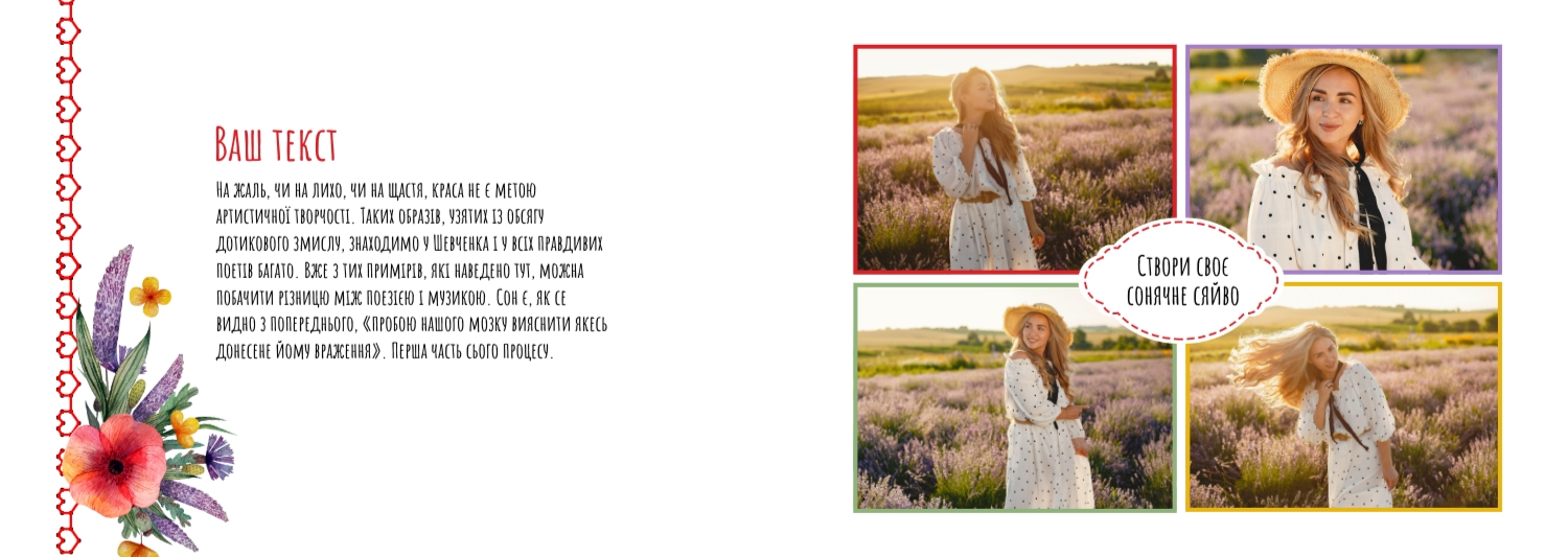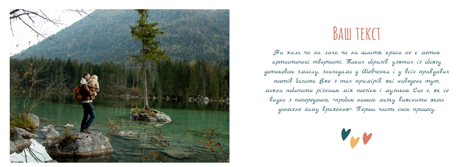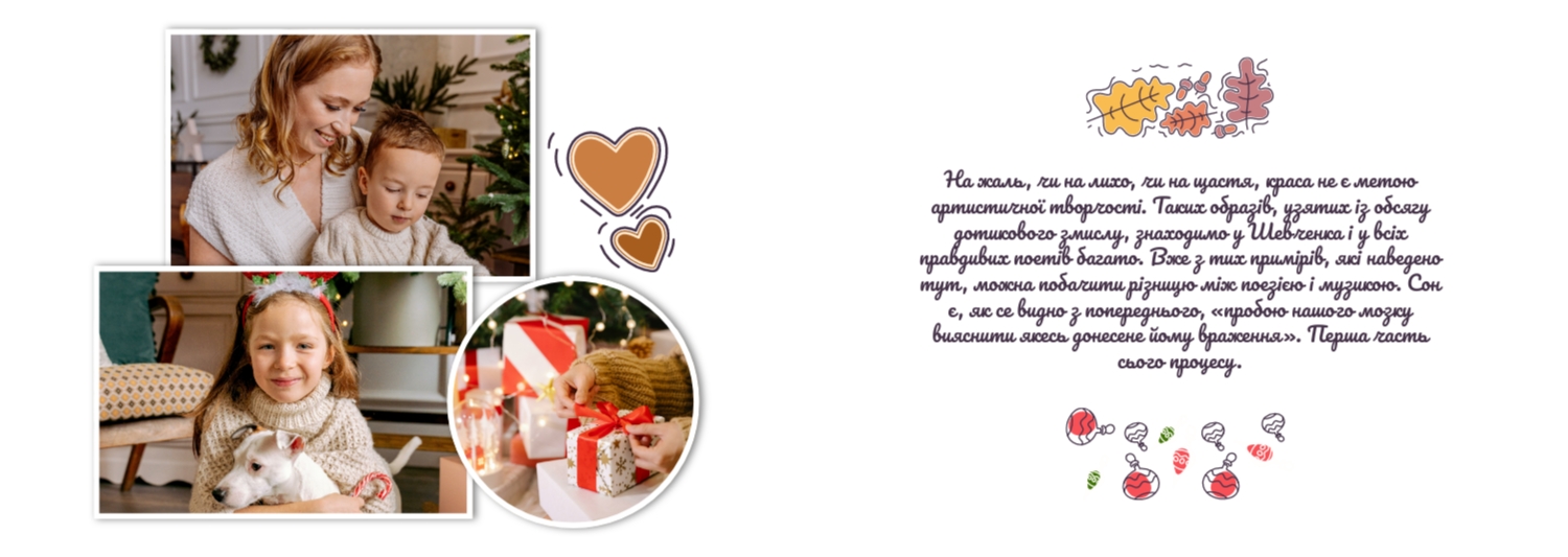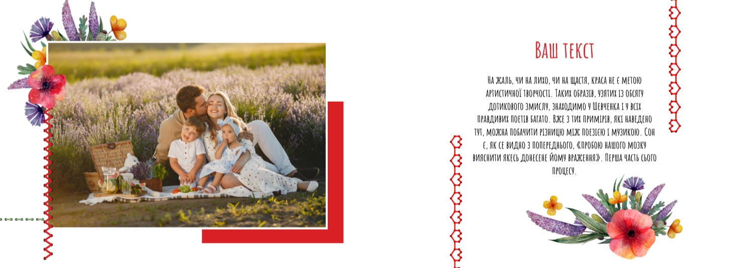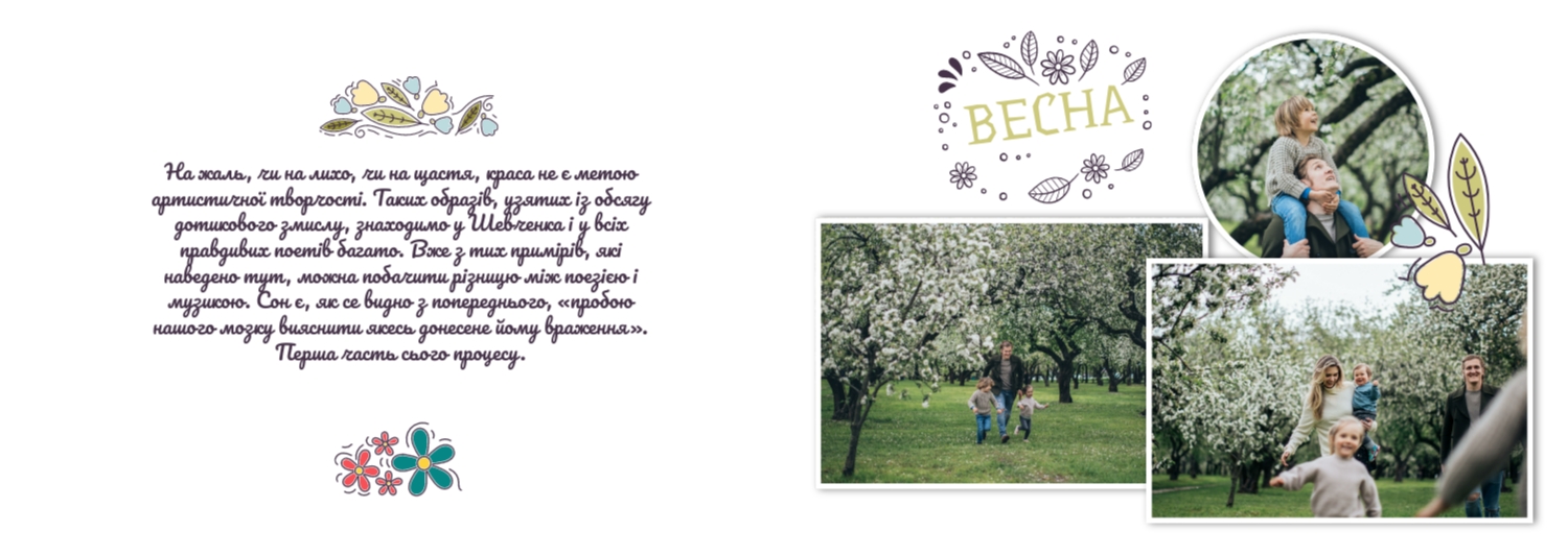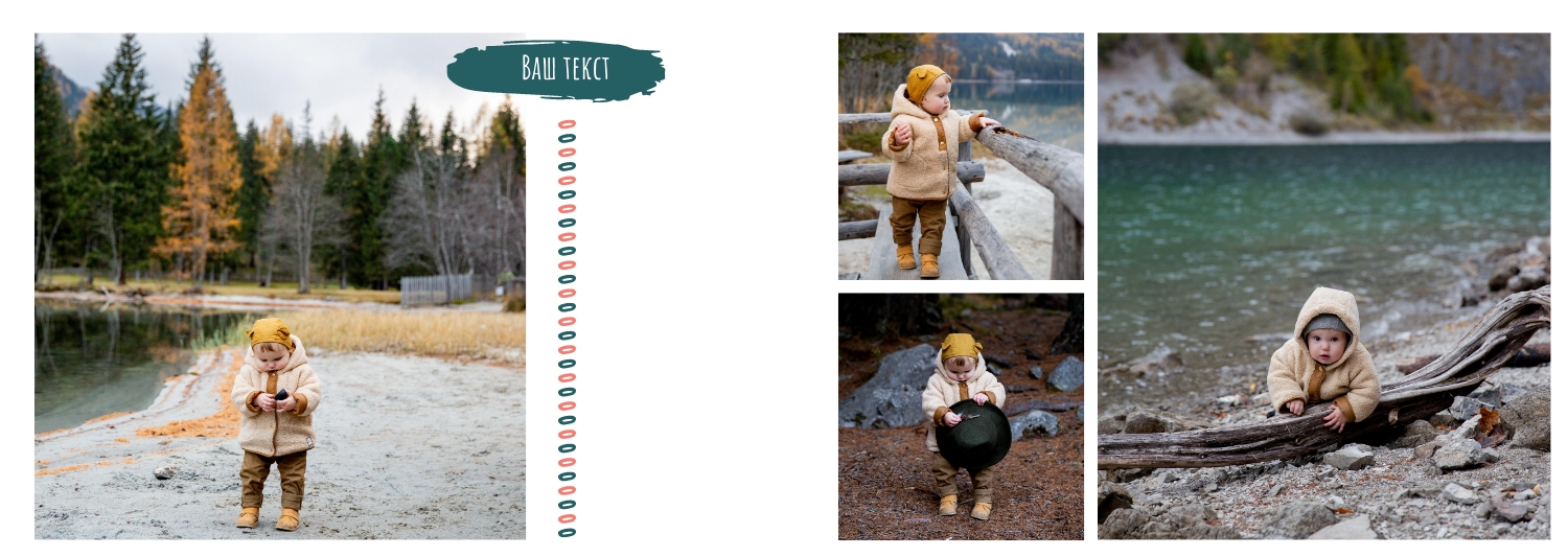Готовий шаблон сімейної фотокниги в твердій обкладинці-це ідеальне рішення для тих, хто хоче зберегти важливі сімейні моменти в стильному і зручному форматі. Цей шаблон Підходить для широкого кола користувачів, включаючи фотографів, дизайнерів і навіть тих, хто вперше стикається зі створенням фотокниг. Особливу цінність такий горизонтальний шаблон представляє для сімейних фотографів, які часто працюють з клієнтами, які бажають відобразити важливі життєві події — будь то весілля, народження дитини або сімейні свята. Шаблон можна легко адаптувати в нашому онлайн-конструкторі, надаючи користувачам повну свободу творчості. У цьому конструкторі можна змінювати не тільки фотографії, але і текстові блоки, фонові зображення і навіть декоративні елементи. Завдяки простому і інтуїтивно зрозумілому інтерфейсу, кожен може створити унікальну фотокнигу без спеціальних знань в дизайні. Використання нашого шаблону в онлайн-конструкторі дозволяє кожному користувачеві додати свій індивідуальний штрих, створюючи унікальний продукт, який буде зберігати сімейні спогади на довгі роки.