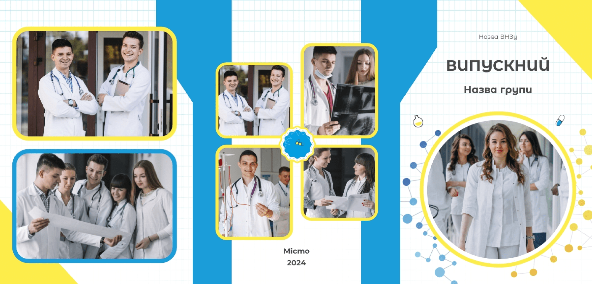 Готовий шаблон випускної віньєтки тріо "Прощай, школа" - це стильне і яскраве рішення для створення пам'ятних альбомів про закінчення школи. Цей дизайн поєднує в собі вишуканість і емоційність, ідеально передаючи атмосферу прощання з незабутніми шкільними роками. Шаблон Підходить для фотографів, дизайнерів, а також представників студій друку, які працюють над випускними проектами. Крім того, його можна використовувати індивідуально для самостійного оформлення, наприклад, класними керівниками, батьками або самими випускниками. Основна перевага віньєтки тріо-можливість її повної персоналізації в нашому зручному онлайн-конструкторі. Кожен елемент шаблону доступний для редагування: ви можете змінити кольори, шрифти, розташування фотографій і додати унікальні написи. Використовуючи конструктор, ви можете легко завантажувати фотографії, вставляти імена випускників, вчителів і навіть додавати пам'ятні цитати або подяки. Такий формат редагування підходить як професіоналам, так і тим, хто не має досвіду роботи з графічним дизайном. Це робить процес створення віньєтки не тільки простим, але і захоплюючим.