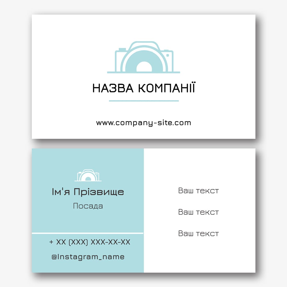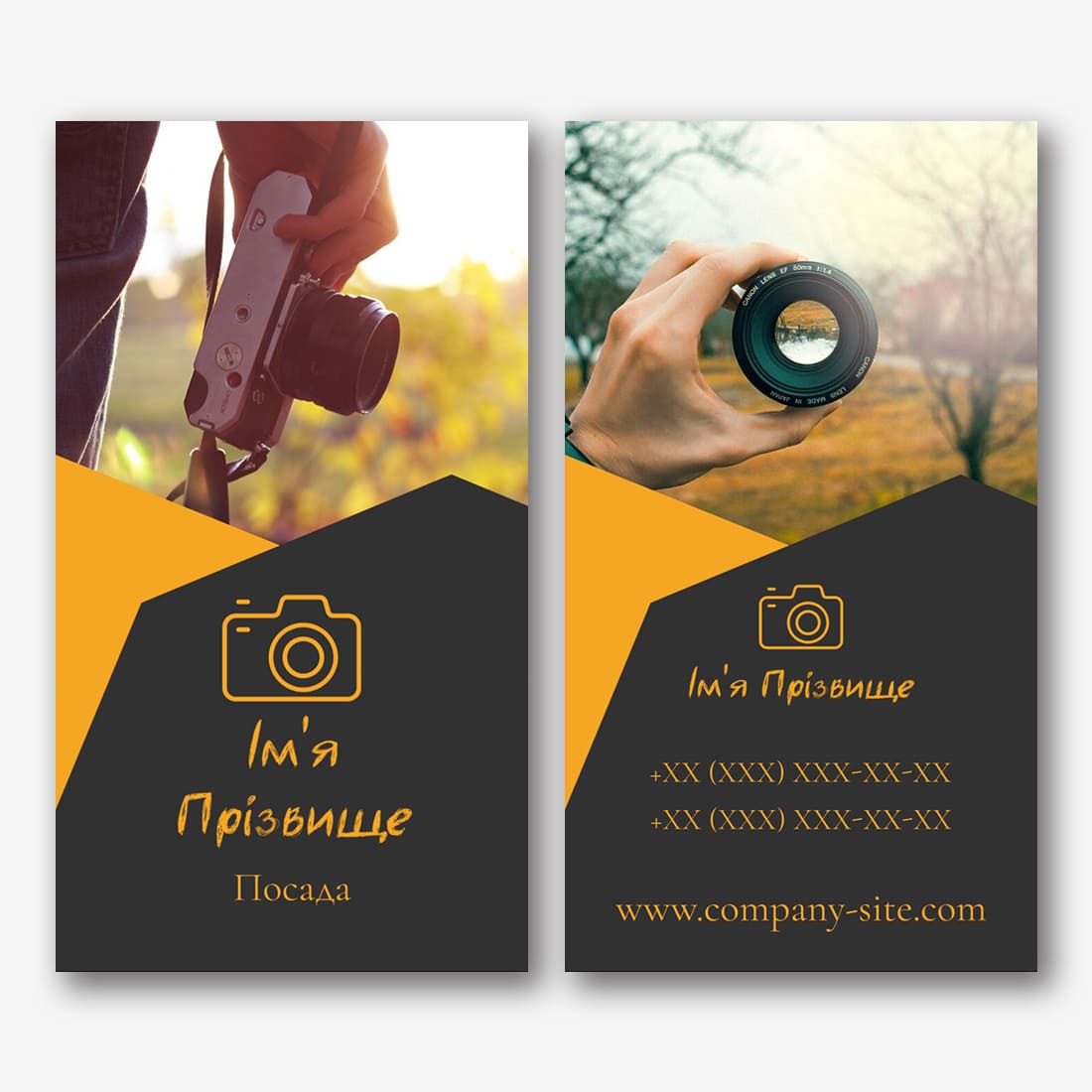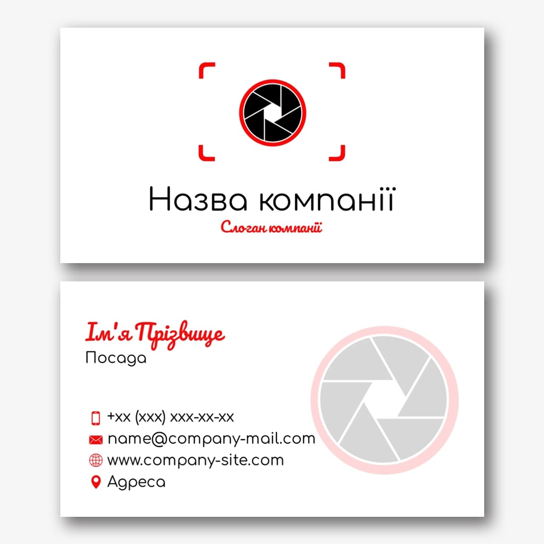 Безкоштовний шаблон візитки фотографа або фото-школи. Створіть макет своїм руками у конструкторі візиток.