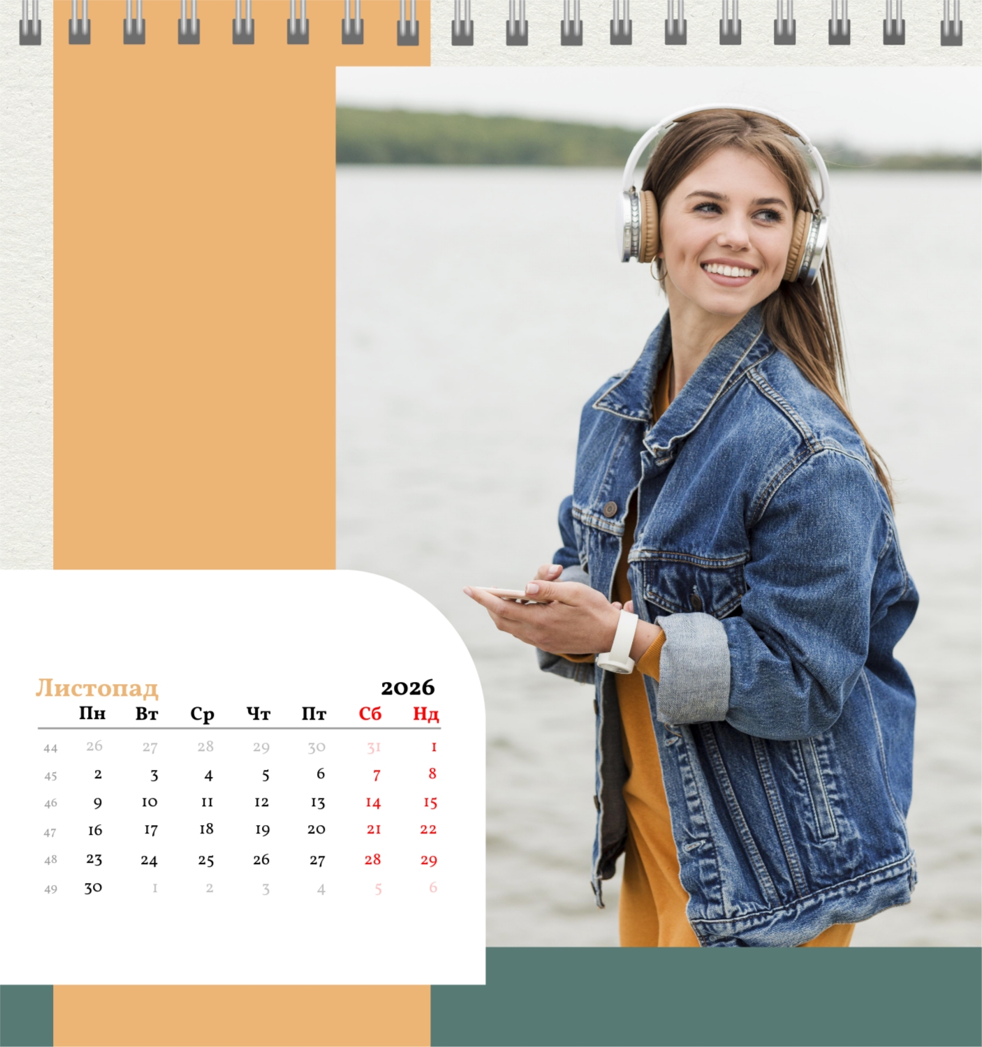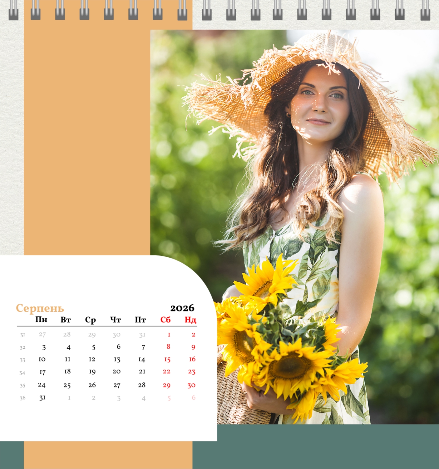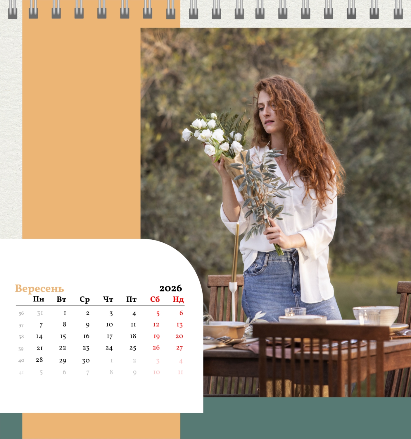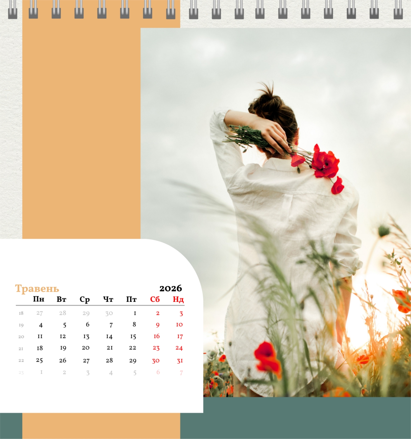 Шаблон" кращі спогади " для настільного вертикального календаря в нашому онлайн-конструкторі надає унікальну можливість створити яскравий і персональний календар, який буде наповнений вашими самими запам'ятовуються моментами. Цей шаблон надає широкі можливості редагування, дозволяючи висловити свою індивідуальність. Ви можете легко додавати та редагувати фотографії, підписи та важливі події для кожного місяця. Використовуйте креативні інструменти, щоб підкреслити особливості кожного місяця та додати додаткові візуальні елементи, які відображають ваші унікальні спогади. Завдяки зручному інтерфейсу конструктора, ви можете легко перетягувати і змінювати елементи дизайну, створюючи календар, який відображає ваш унікальний стиль. Цей шаблон покликаний стати не тільки органайзером вашого часу, а й індивідуальним витвором мистецтва, що відображає кращі моменти Вашого життя. Створюйте свій календар з нами, щоб кожен день був наповнений натхненням і спогадами.