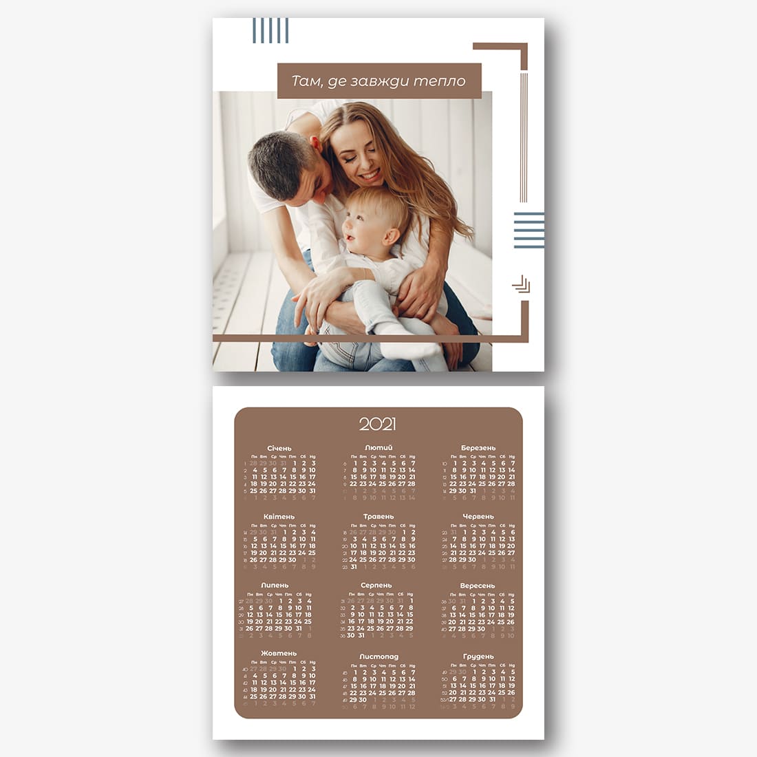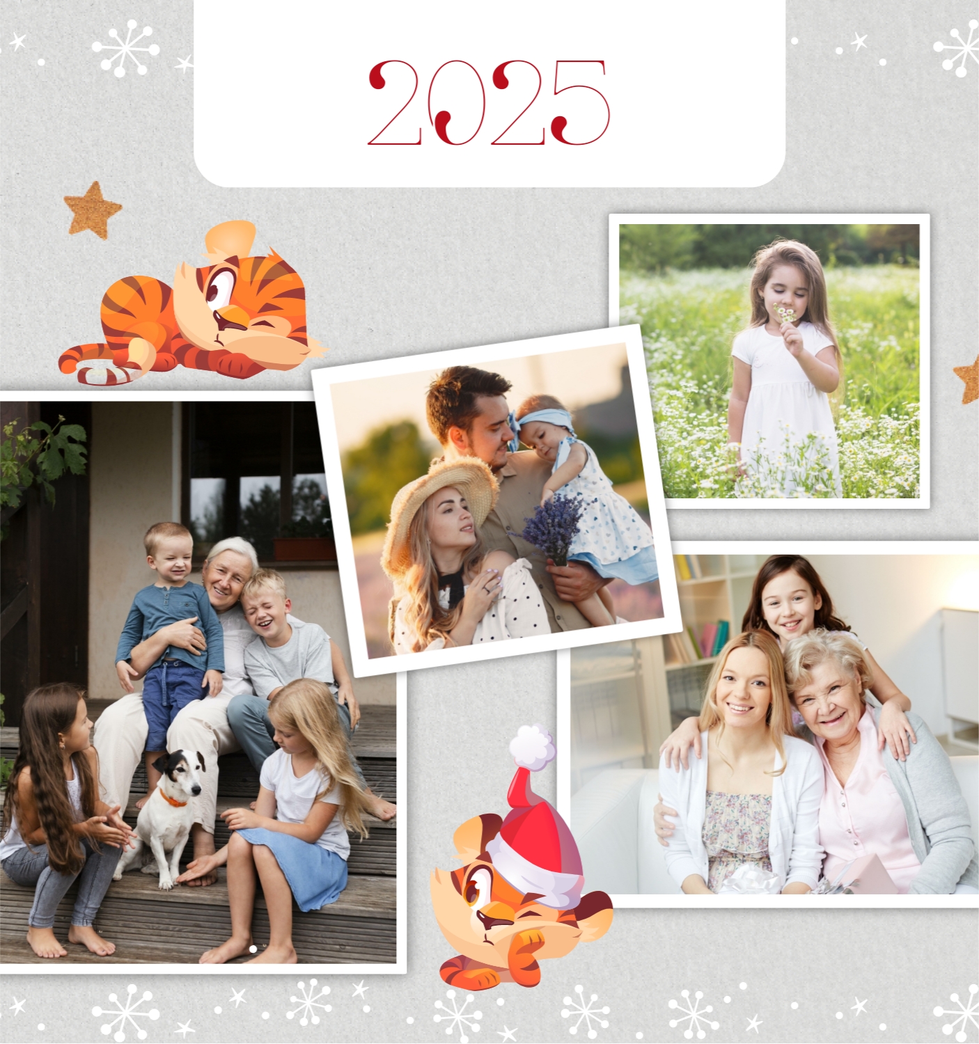 Безкоштовний шаблон новорічного календаря з символом року та фотографіями. Створіть макет власноруч в онлайн-конструкторі календарів.