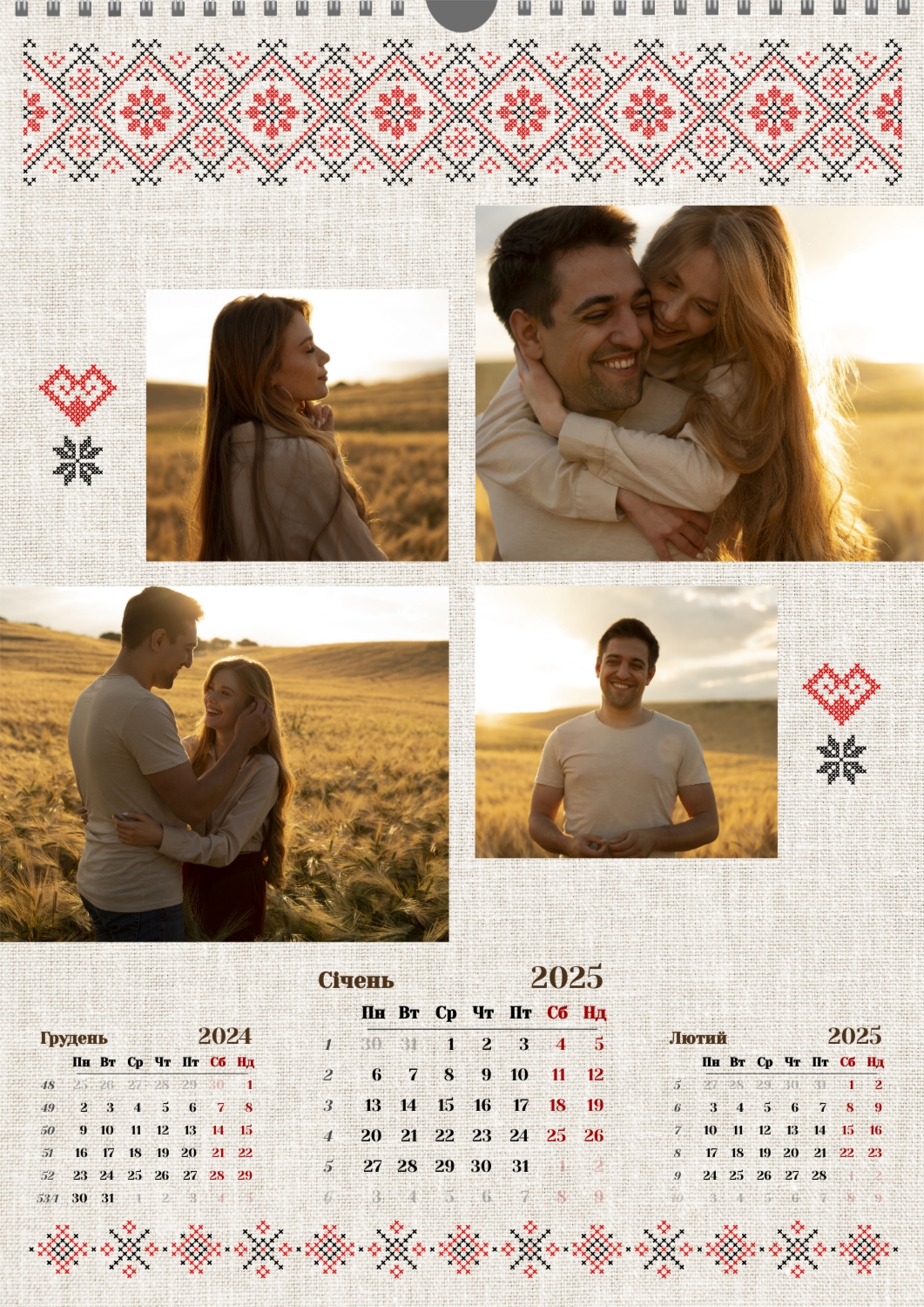 Безкоштовний шаблон календаря з Love story, романтичною фотосесією. Створіть макет власноруч в онлайн-конструкторі календарів.