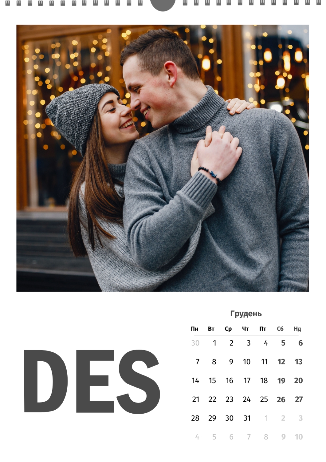 Безкоштовний шаблон календаря з Love story, романтичною фотосесією. Створіть макет власноруч в онлайн-конструкторі календарів.