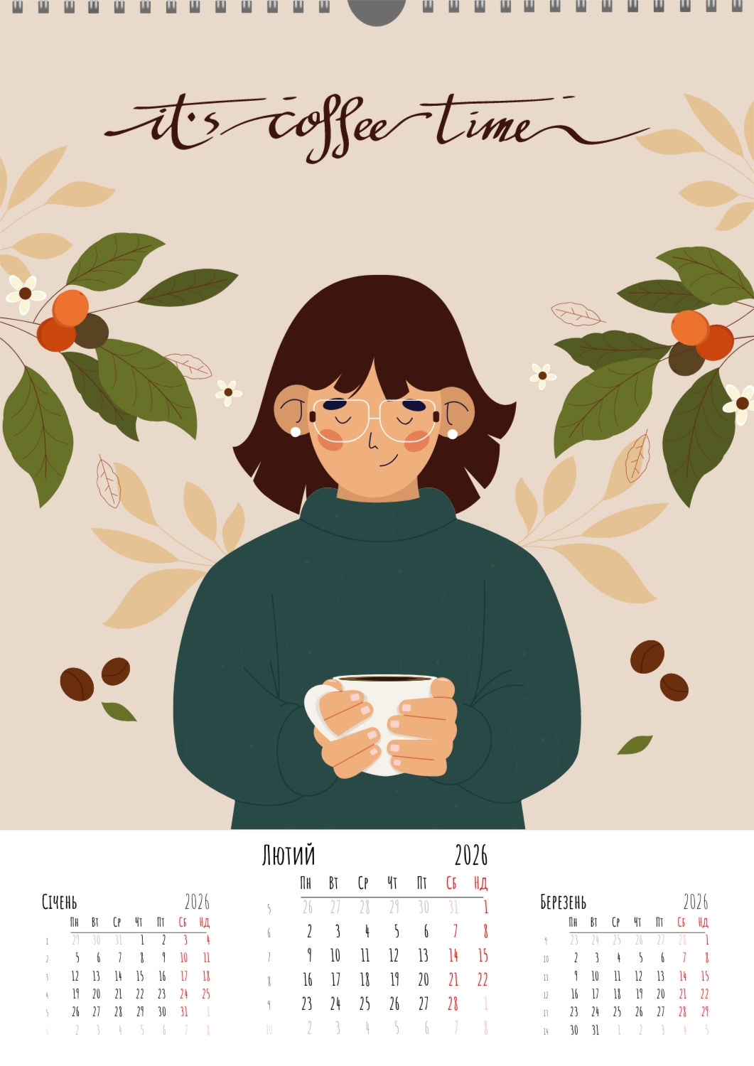 Безкоштовний шаблон настінного календаря для реклами квіткового магазину, ботанічного саду, послуг флориста. Створіть макет власноруч в конструкторі календарів.