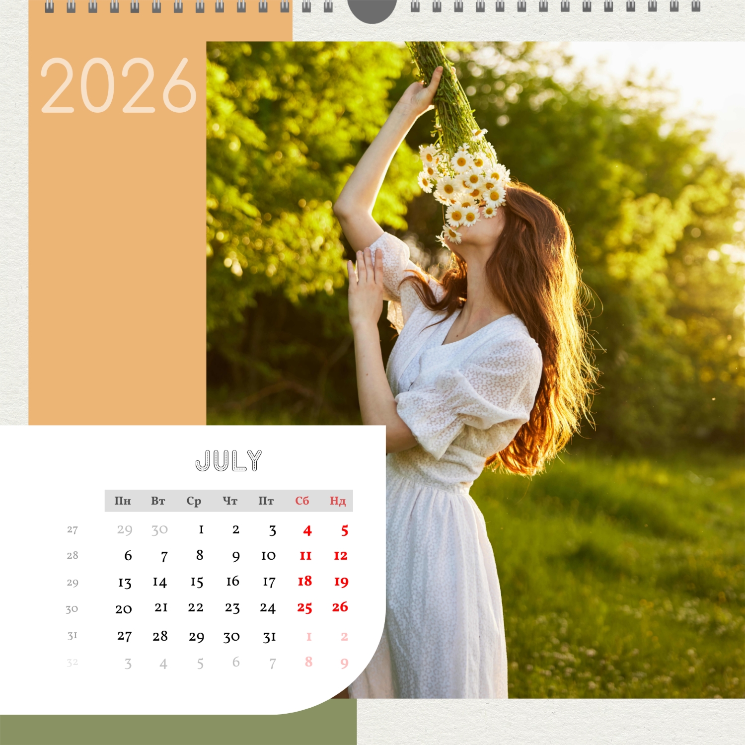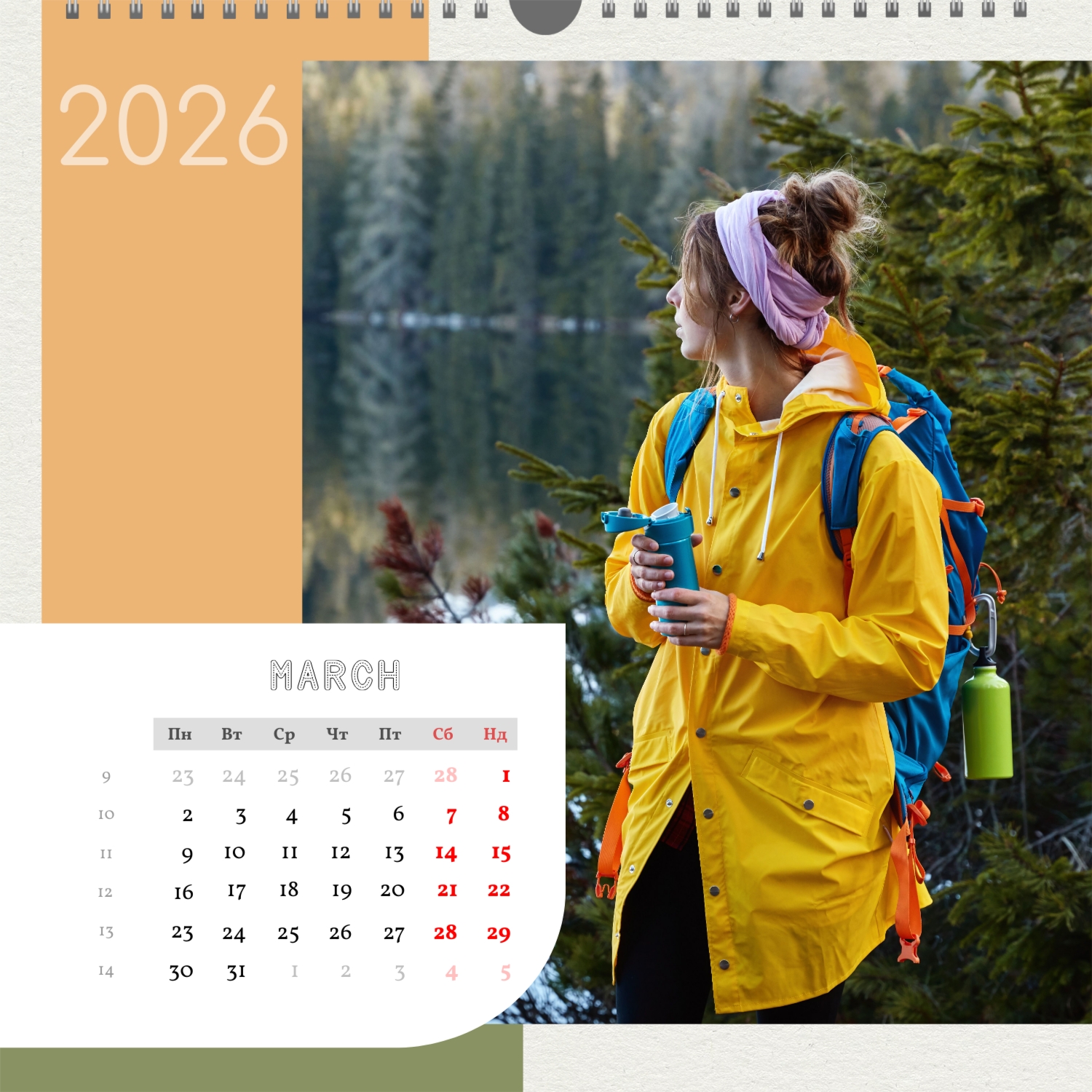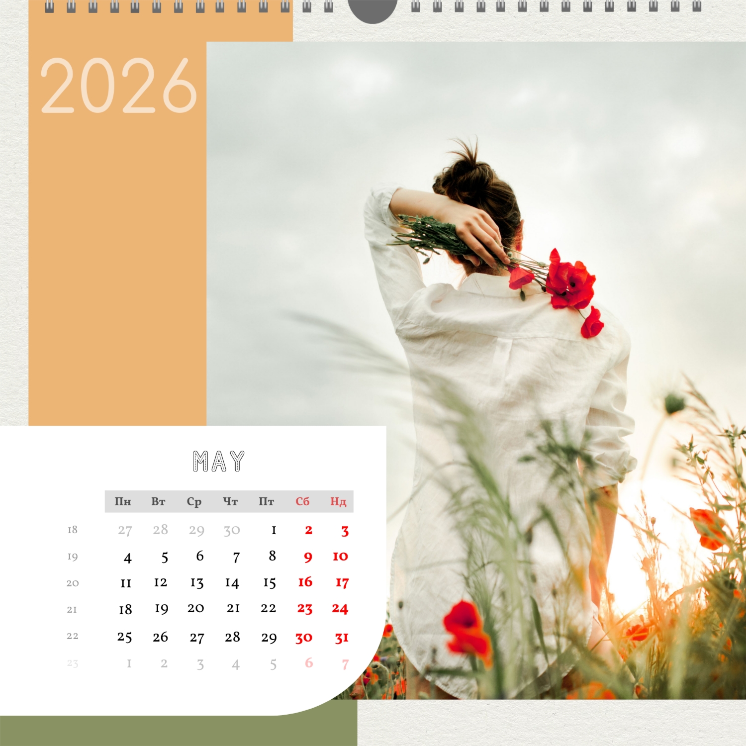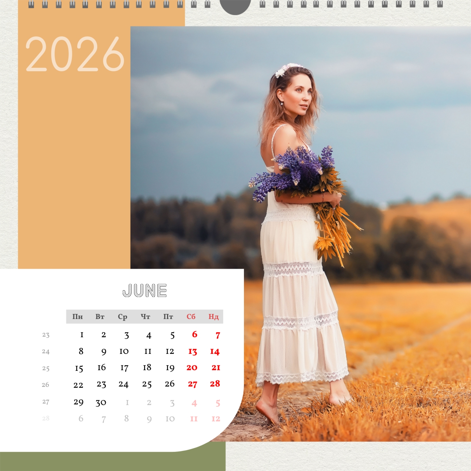 Безкоштовний шаблон календаря з пам'ятними моментами у стилі інстаграм. Створіть макет власноруч в онлайн-конструкторі календарів.