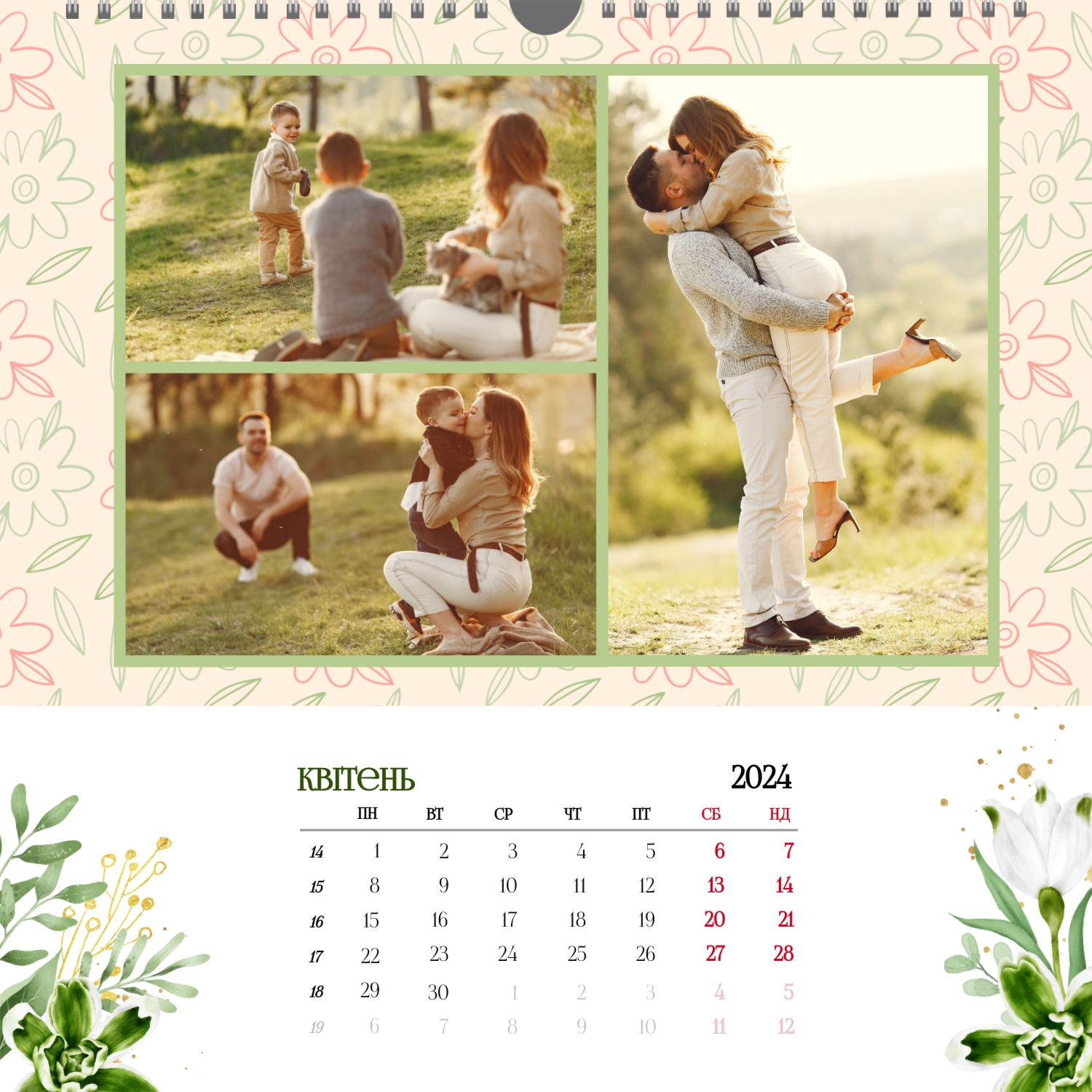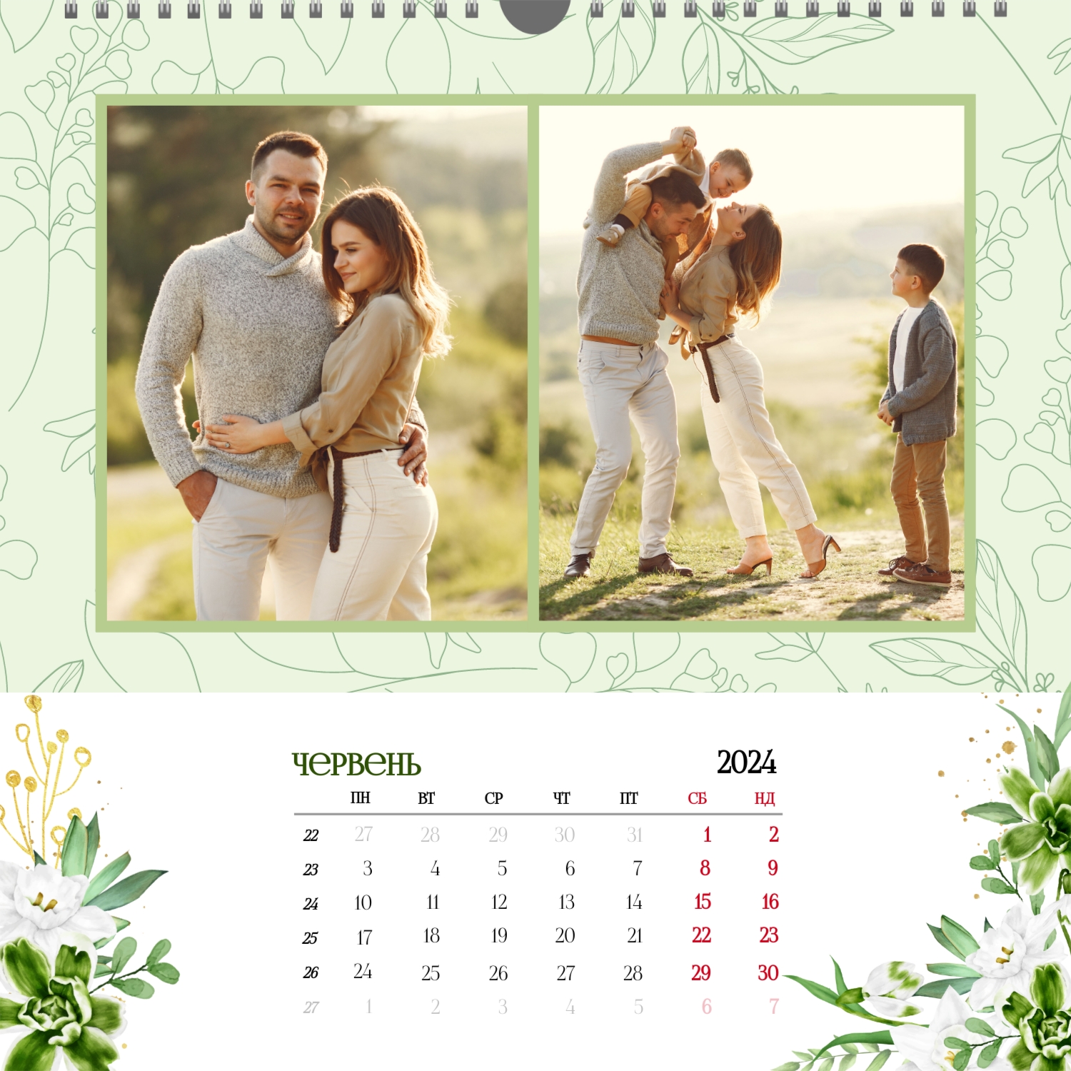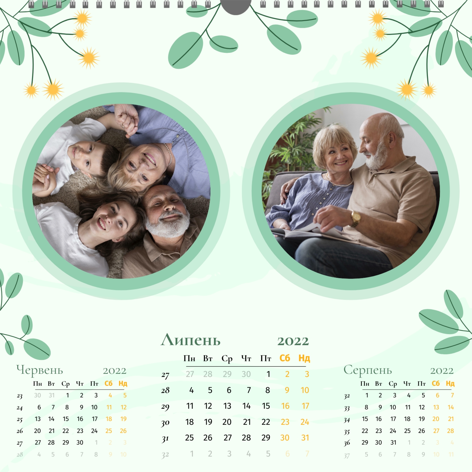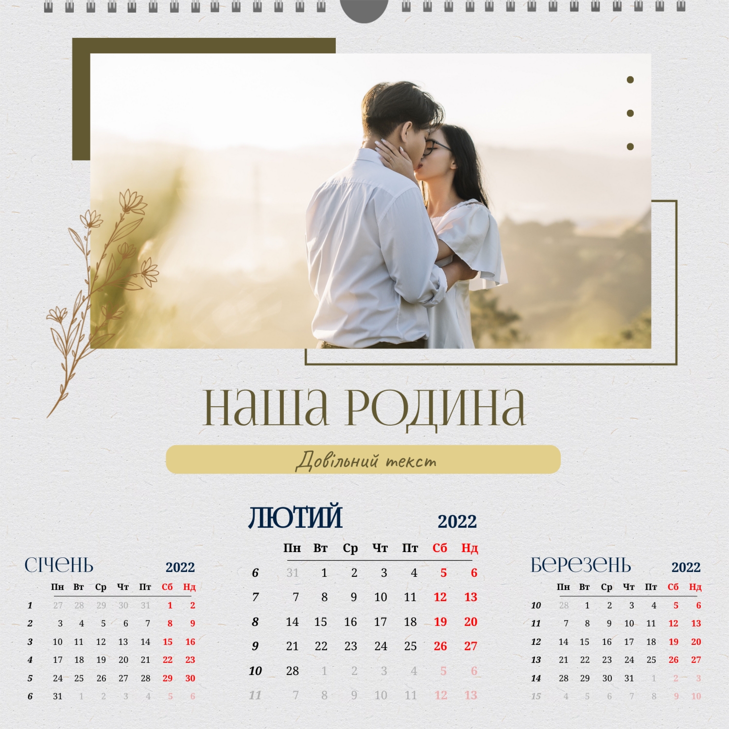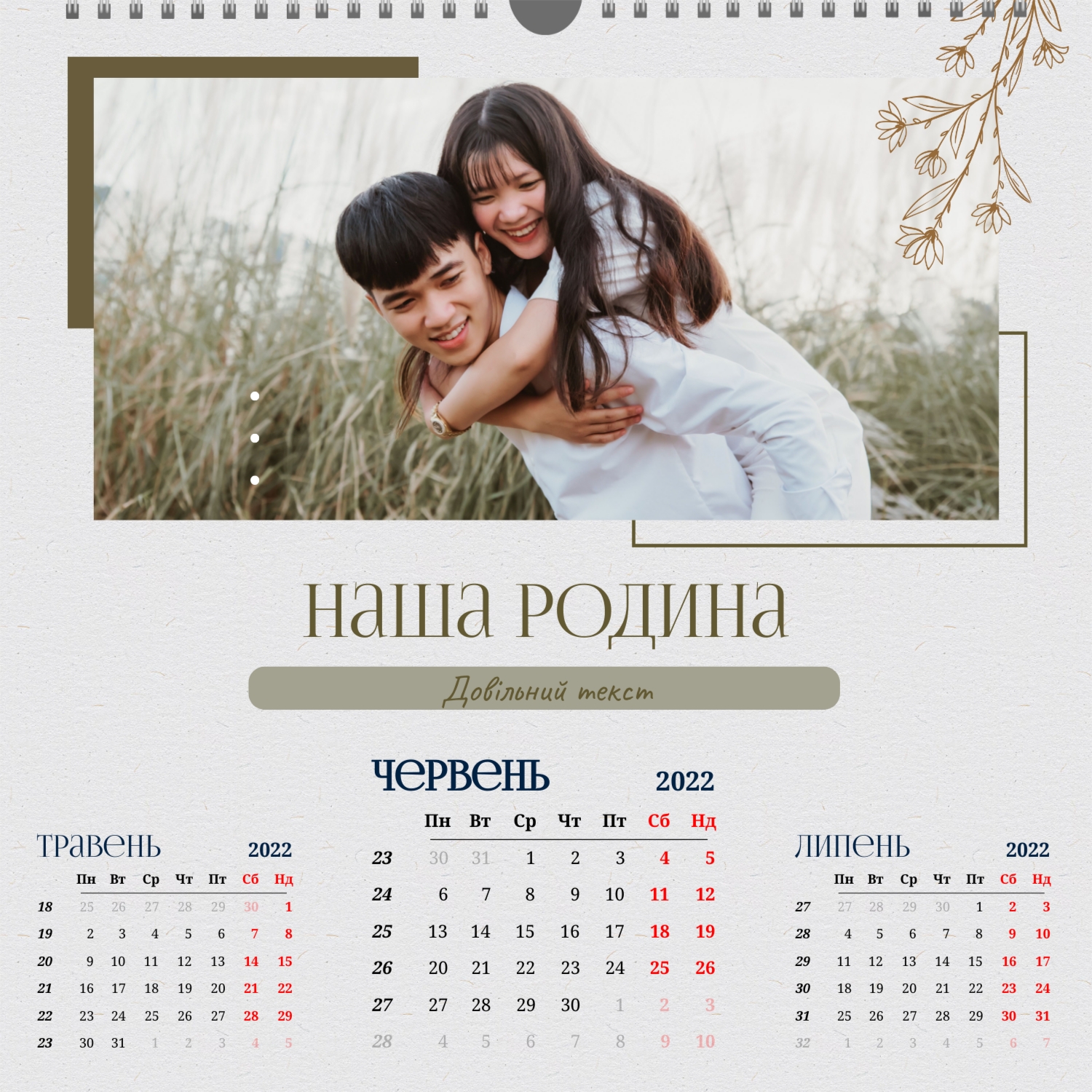 Безкоштовний шаблон родинного календаря у подарунок близьким. Створіть макет своїми руками в конструкторі календарів.