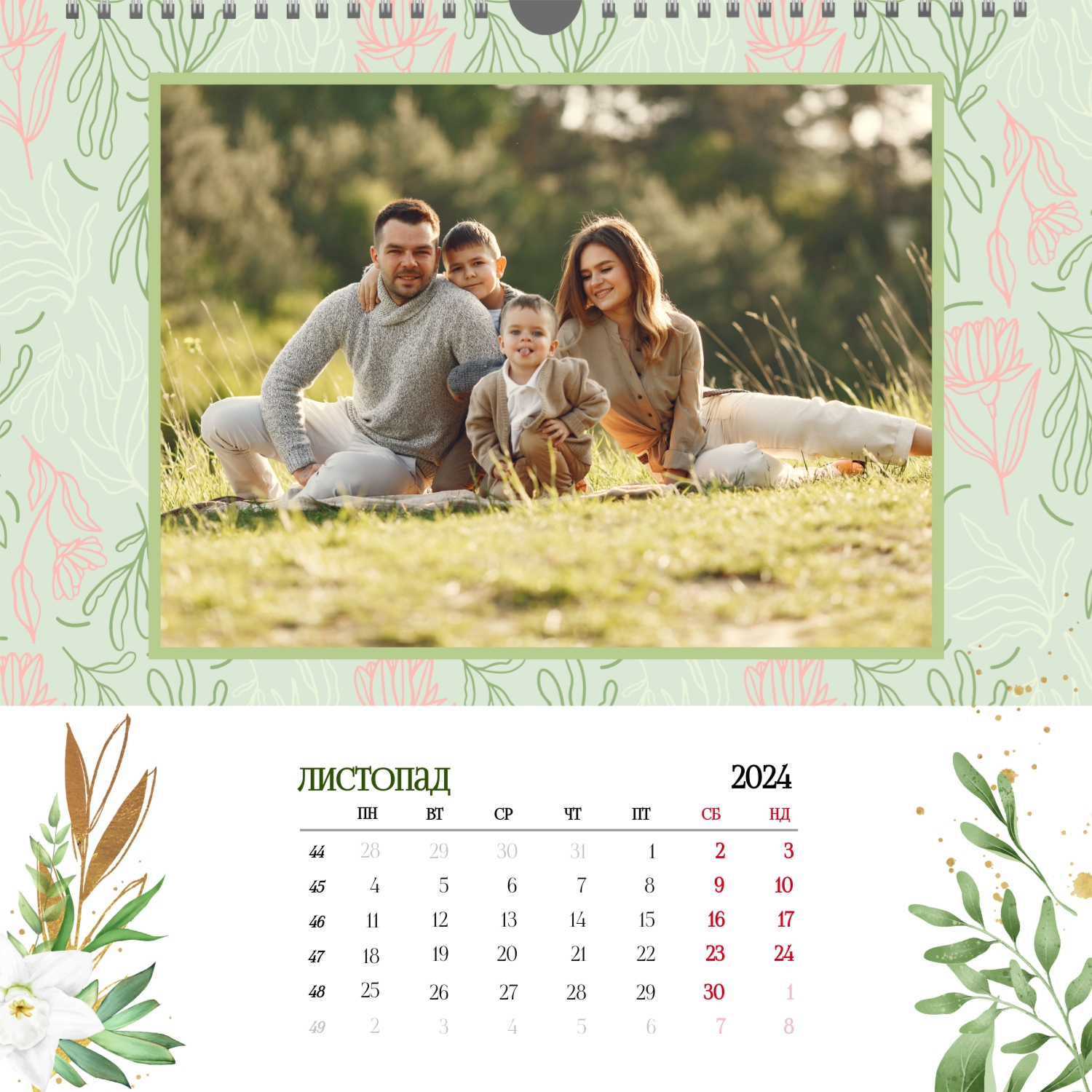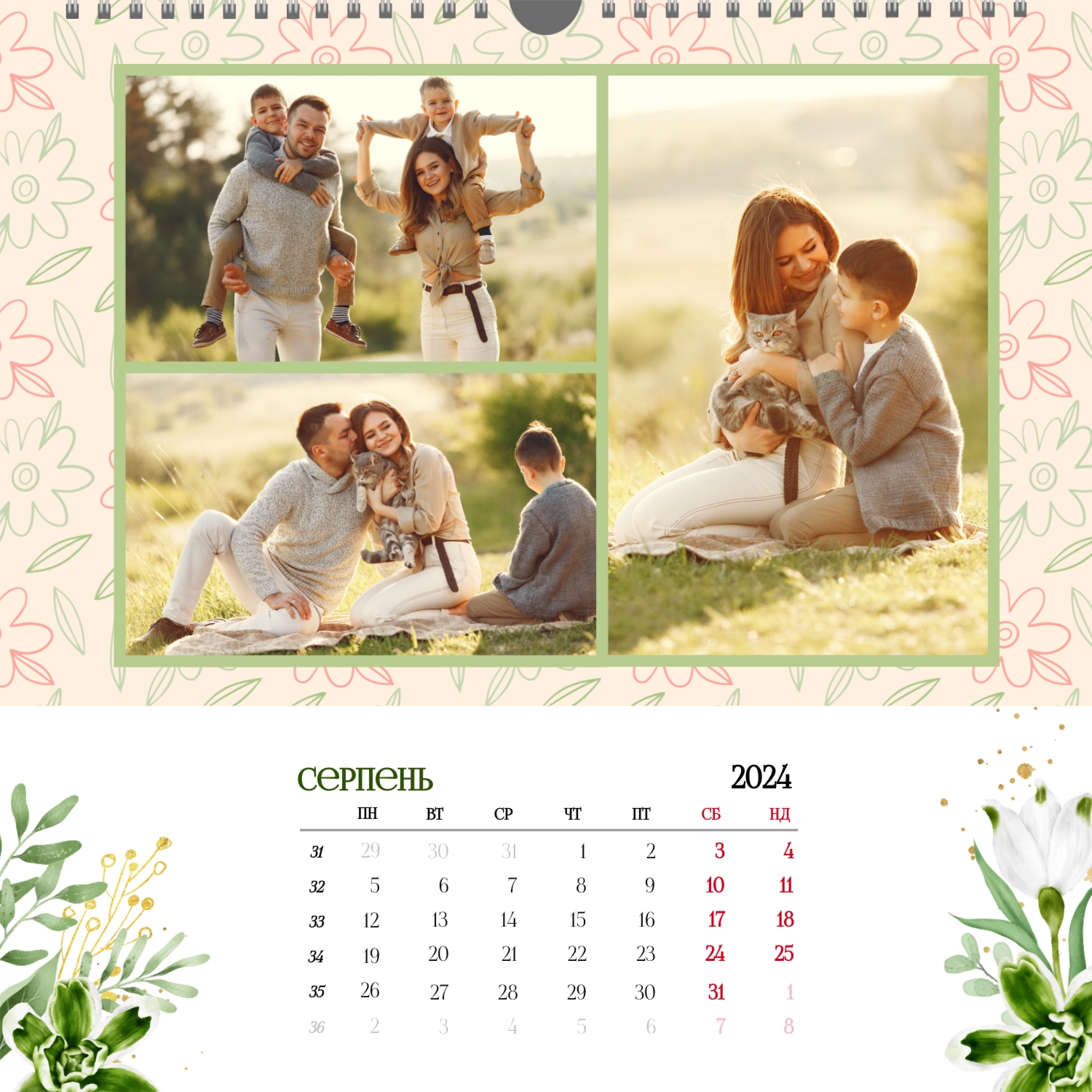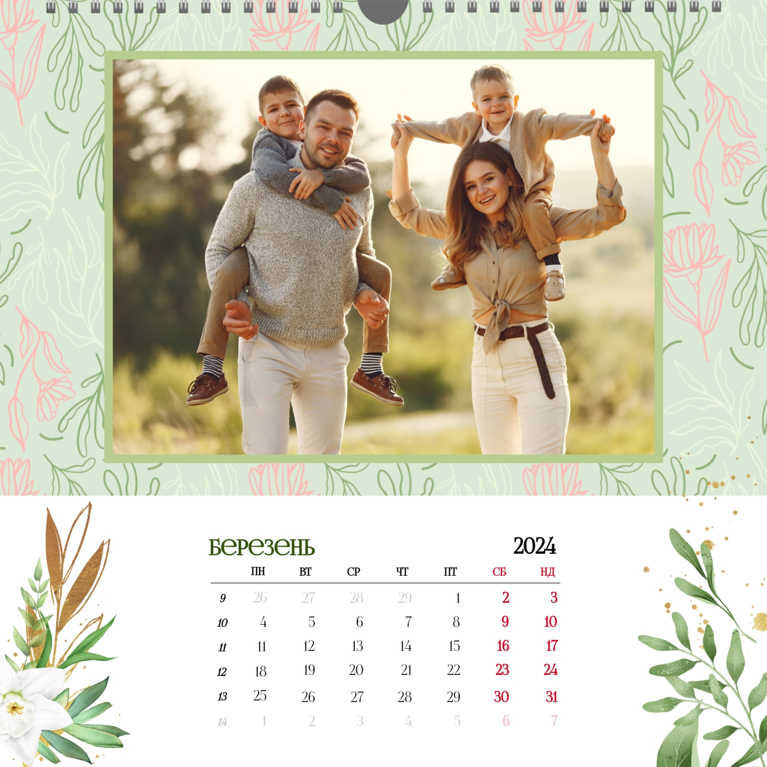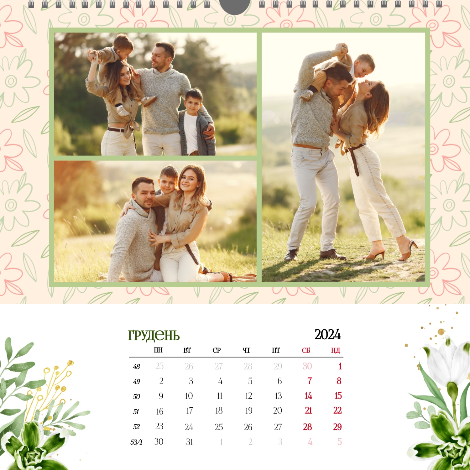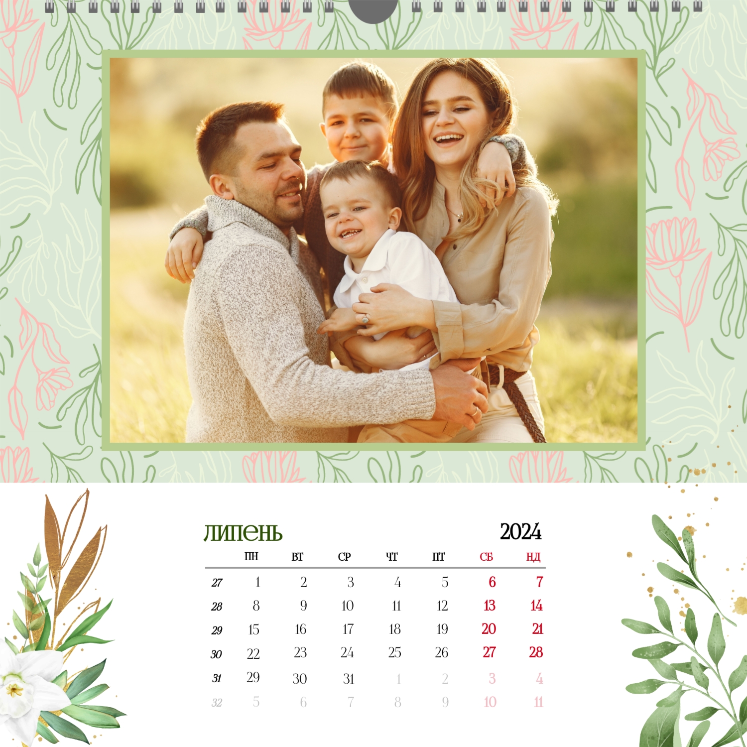 Безкоштовний шаблон родинного календаря у подарунок близьким. Створіть макет своїми руками в конструкторі календарів.