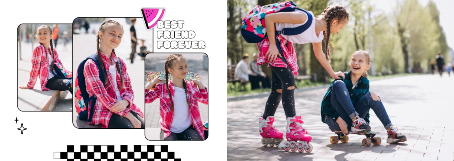 Готовий шаблон фотокниги в твердій обкладинці "Кращі друзі" - це ідеальне рішення для створення унікального і зворушливого подарунка. Цей шаблон розроблений спеціально для тих, хто хоче зберегти теплі спогади про спільні моменти з друзями. Він підійде для самих різних сфер життя і діяльності: від шкільних друзів і колег по роботі до спортивних команд або творчих об'єднань. Фотокнига стане прекрасним доповненням до корпоративних заходів, випускних вечорів, дружніх поїздок або просто послужить способом висловити подяку близьким людям. Завдяки універсальному дизайну та можливості адаптації шаблону, він підходить не тільки для особистого використання, але й для професіоналів, таких як фотографи, організатори заходів і навіть викладачі, які хочуть створити пам'ятний подарунок для своїх груп. Найголовніша перевага цього шаблону - його гнучкість і простота редагування. У нашому онлайн-конструкторі ви можете легко змінити будь-які елементи дизайну: від фону до тексту і фотографій. Додайте свої зображення, підберіть шрифти, змініть кольори або вставте унікальні коментарі, щоб зробити фотокнигу абсолютно індивідуальною. Конструктор дозволяє працювати з шаблоном максимально інтуїтивно, надаючи можливість реалізувати ваші ідеї без спеціальних знань в графічному дизайні.