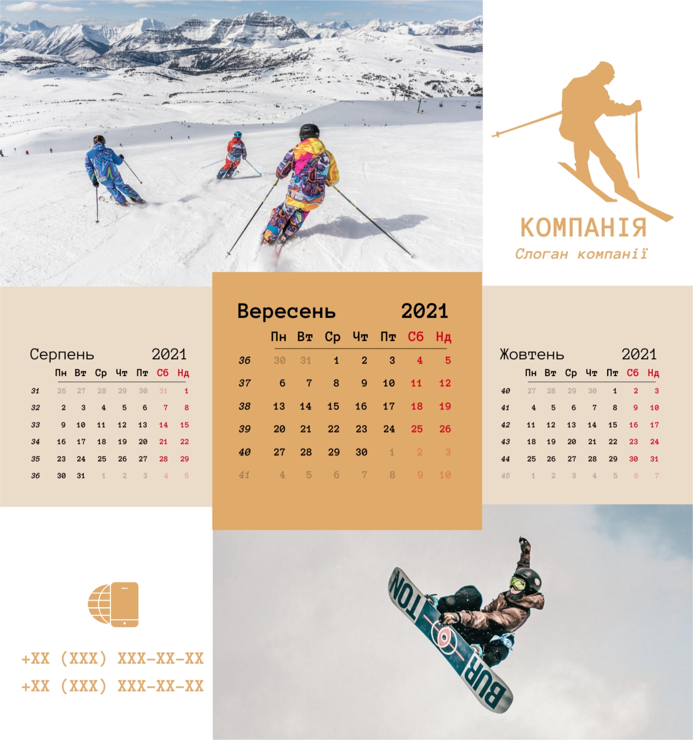 Шаблон календаря "кращі спогади" - це ідеальна основа для створення персоналізованого настільного календаря на 13 сторінок, який буде відображати найзначніші моменти Вашого життя. Цей шаблон Підходить для будь-якого користувача, хто хоче підкреслити індивідуальність і зберегти важливі події в стильному і функціональному форматі. Особливо він буде корисний фотографам, сімейним парам, власникам творчих студій або малих бізнесів, які хочуть створити унікальний продукт для клієнтів або подарувати своїм близьким щось особливе. Ви можете легко адаптувати дизайн під свої потреби за допомогою нашого зручного онлайн-конструктора. Редагування дозволяє замінити фотографії, додати текстові блоки з важливими датами або надихаючими цитатами, а також вибрати колірну гамму, яка підкреслить ваш настрій. Конструктор пропонує простий інтерфейс, де ви буквально своїми руками створюєте унікальний календар, додаючи особисті штрихи і експериментуючи з елементами дизайну.