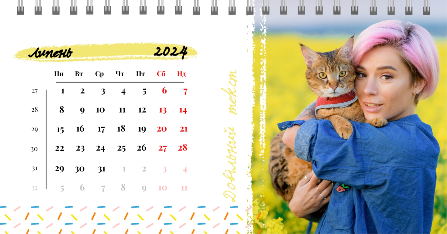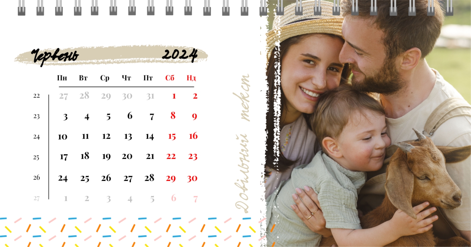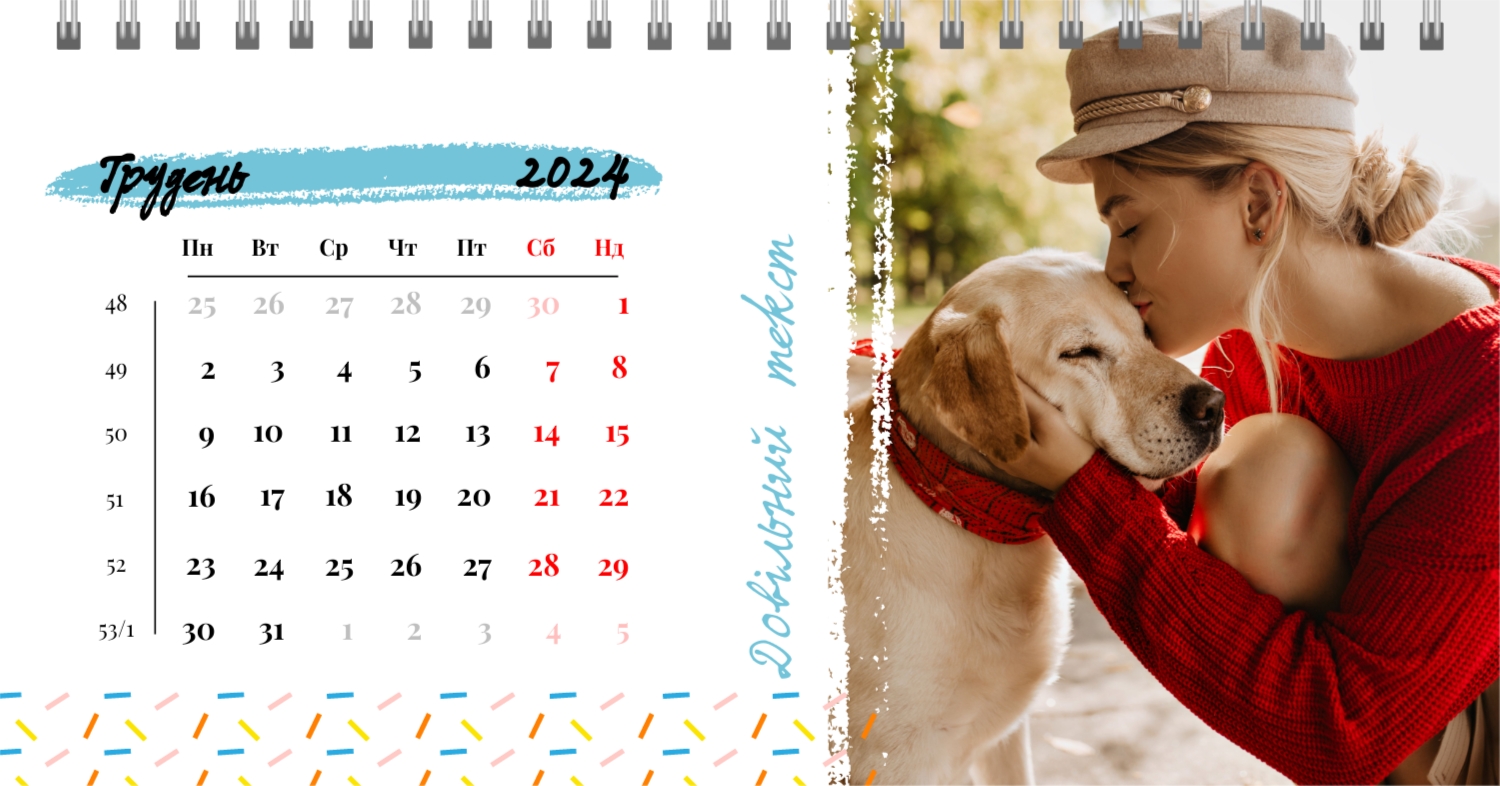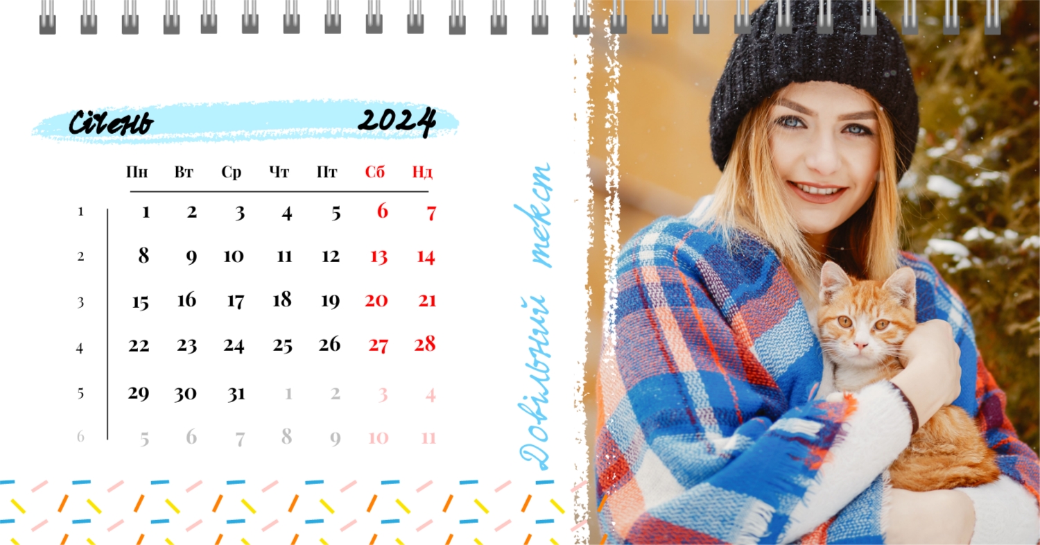 Готовий шаблон настільного календаря на 13 сторінок з особистими фотографіями — це прекрасне рішення для тих, хто хоче створити унікальний і стильний аксесуар для дому, офісу або подарунка. Такий настільний календар ідеально підходить для людей, які цінують індивідуальність і прагнуть оточити себе речами, наповненими змістом і теплими спогадами. Головна перевага шаблону-його доступність в зручному онлайн-конструкторі. Ви можете легко завантажити свої фотографії, змінити розташування елементів, додати текстові коментарі, виділити важливі дати або події. Конструктор дозволяє адаптувати шаблон під ваш стиль: вибрати колірну гамму, шрифт, і навіть налаштувати окремі деталі дизайну.