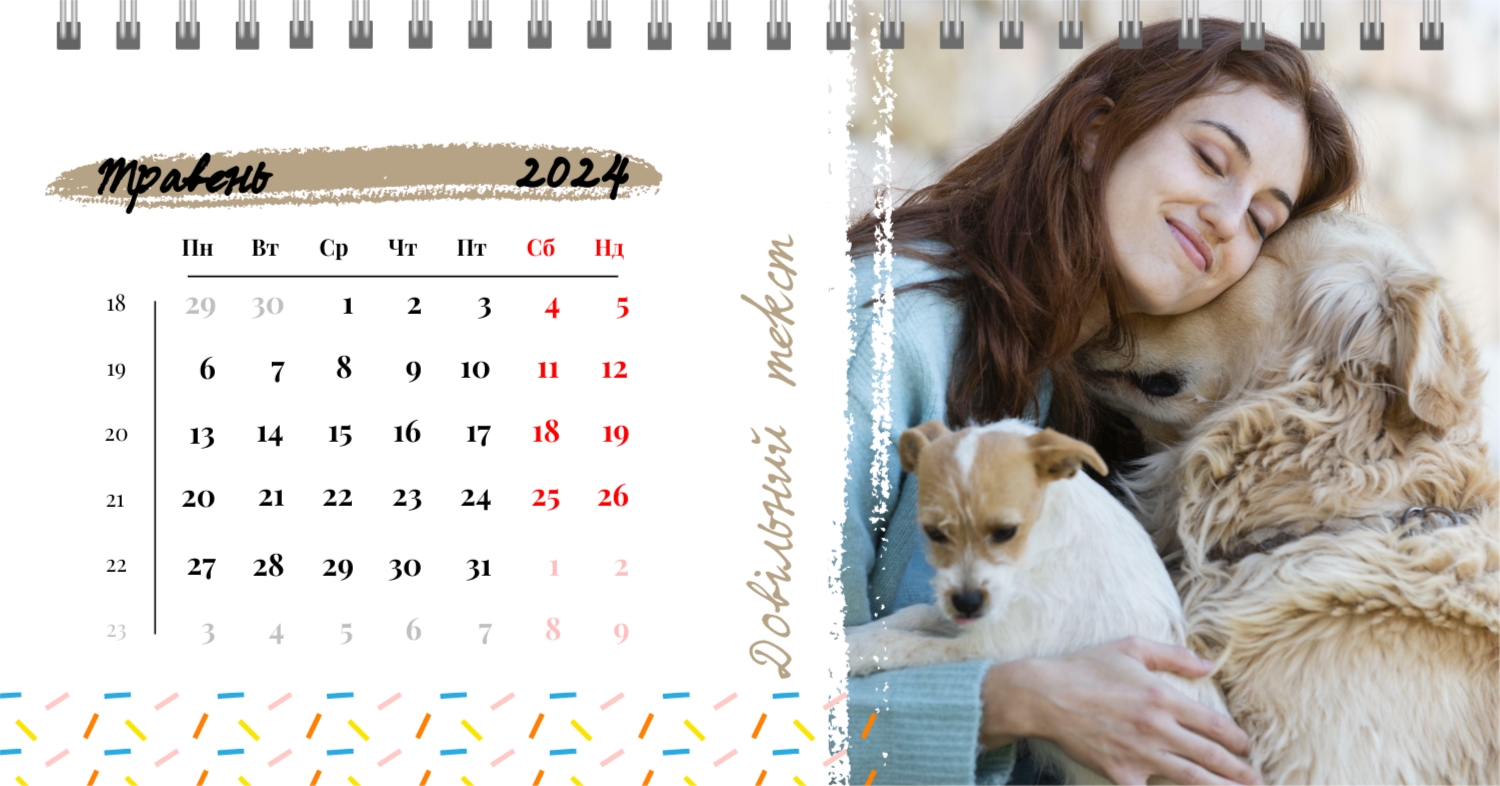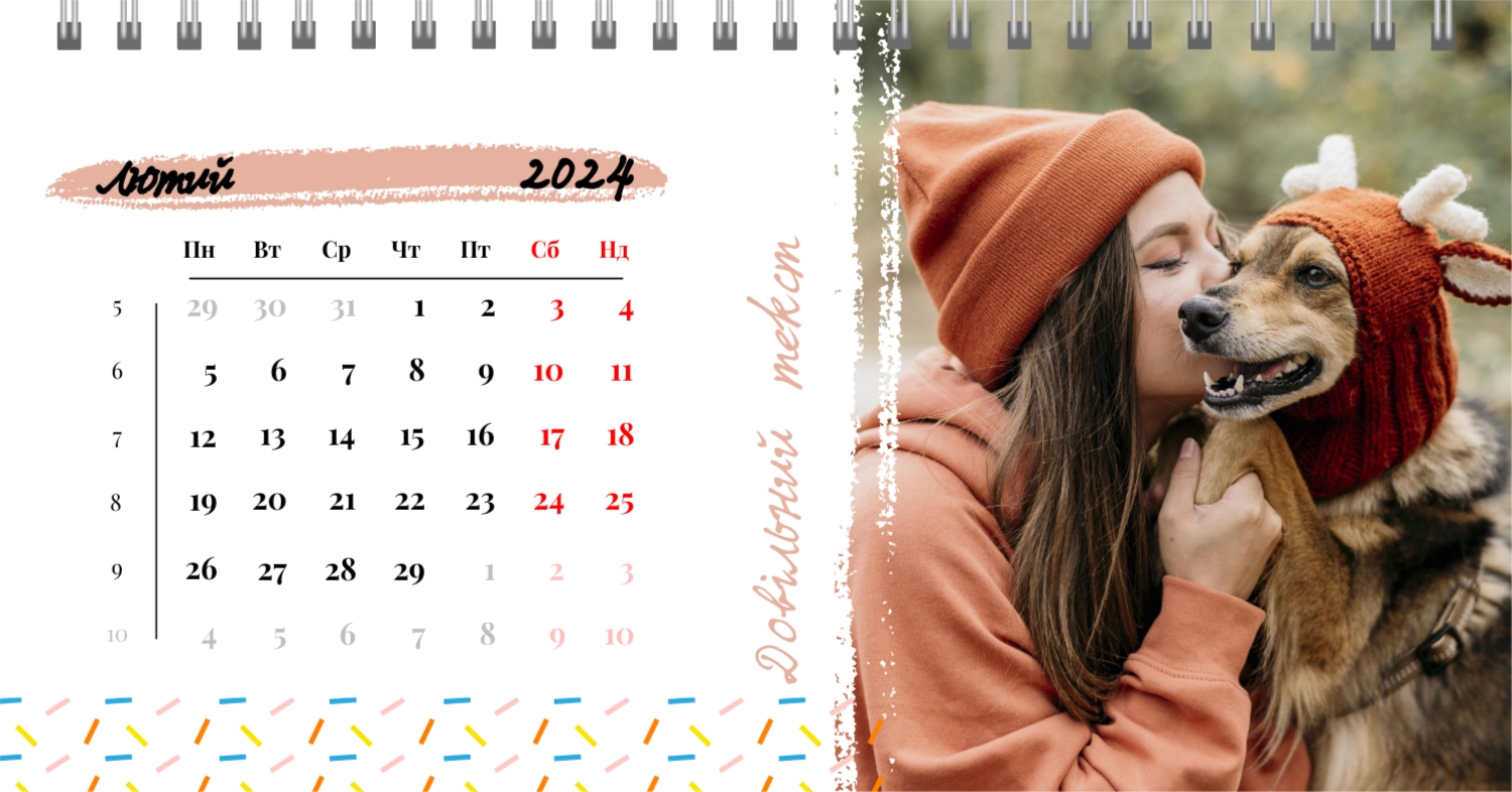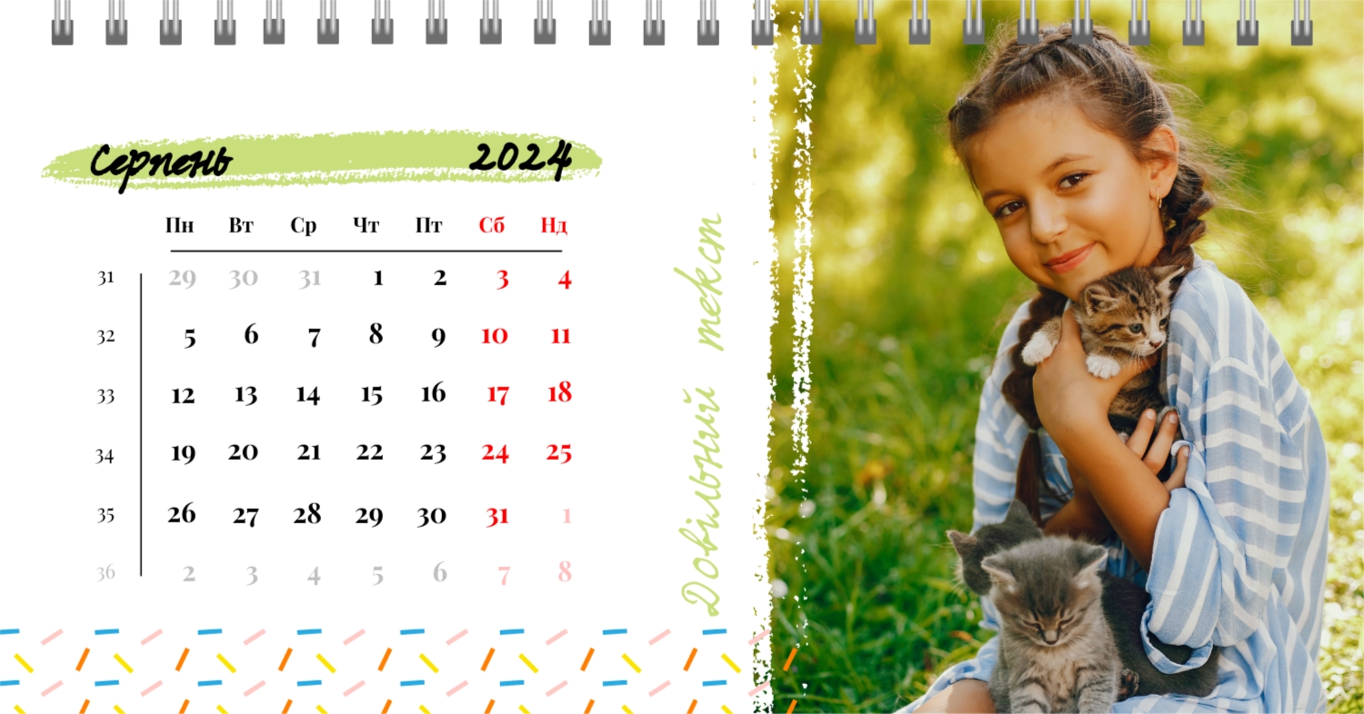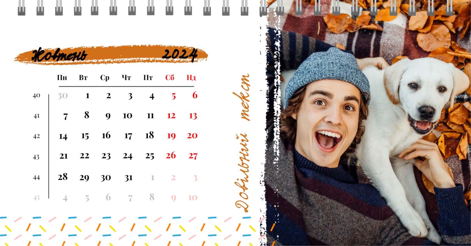Готовий шаблон настільного календаря на 13 сторінок з особистими фотографіями — це прекрасне рішення для тих, хто хоче створити унікальний і стильний аксесуар для дому, офісу або подарунка. Такий настільний календар ідеально підходить для людей, які цінують індивідуальність і прагнуть оточити себе речами, наповненими змістом і теплими спогадами. Головна перевага шаблону-його доступність в зручному онлайн-конструкторі. Ви можете легко завантажити свої фотографії, змінити розташування елементів, додати текстові коментарі, виділити важливі дати або події. Конструктор дозволяє адаптувати шаблон під ваш стиль: вибрати колірну гамму, шрифт, і навіть налаштувати окремі деталі дизайну.