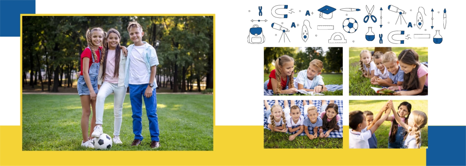 Готовий шаблон випускний панорамної фотокниги для старшої школи-це відмінний спосіб зберегти теплі спогади про шкільні роки, яскраві моменти з друзями і значущі події. У нашому онлайн-конструкторі цей шаблон можна легко адаптувати під свій стиль, змінюючи фон, додаючи фотографії, тексти, прикраси та графічні елементи. Редагування в конструкторі дозволяє повністю персоналізувати макет, вибираючи кольори, стилі шрифтів і розташування елементів. Можна додати підписи, цитати, логотип школи або навіть індивідуальні Обкладинки для кожного учня. Цей шаблон стане зручною основою для створення унікальної горизонтальної фотокниги своїми руками, в якій відіб'ються кращі моменти шкільного життя.