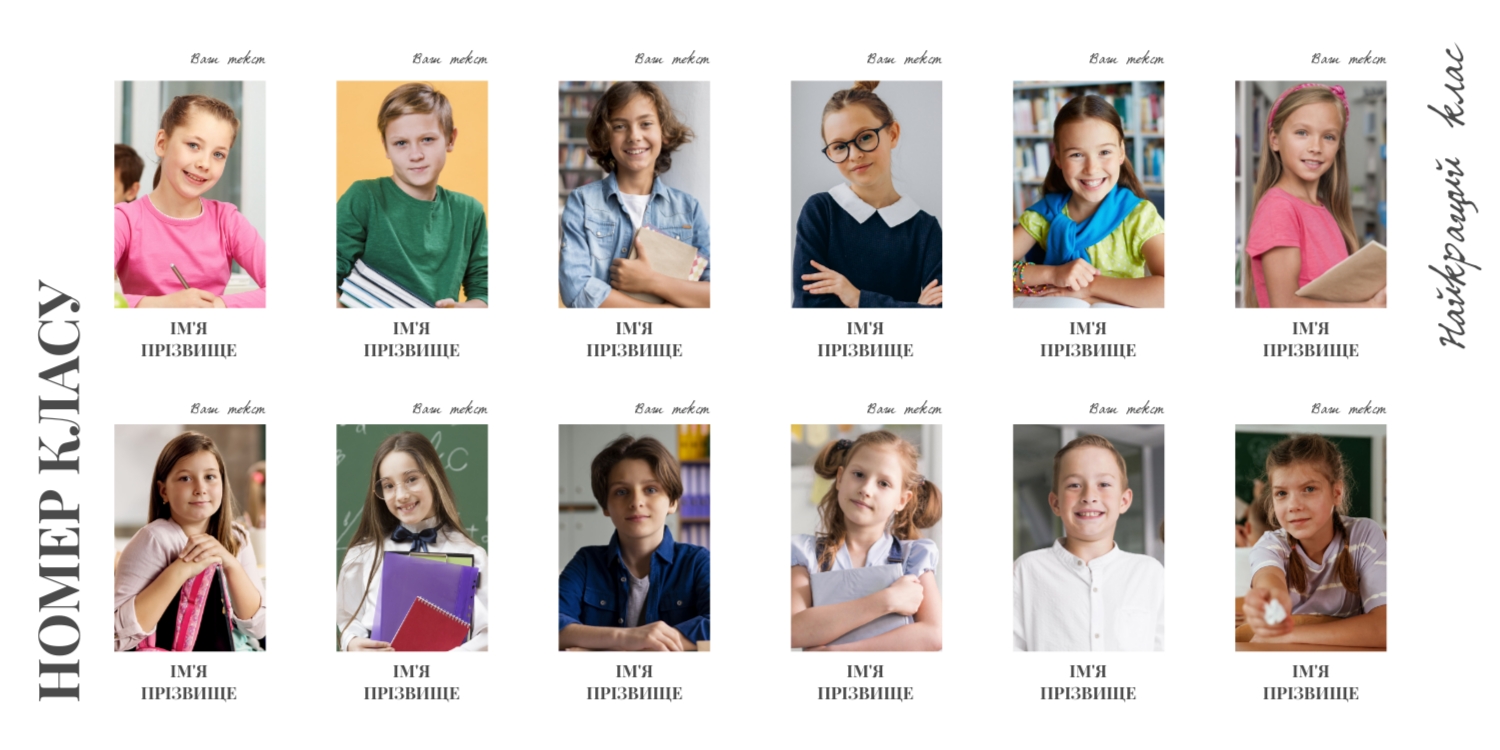 Безкоштовний шаблон класичної фотокниги випускників середньої школи. Створіть макет своїми руками в онлайн-конструкторі фотокниг.