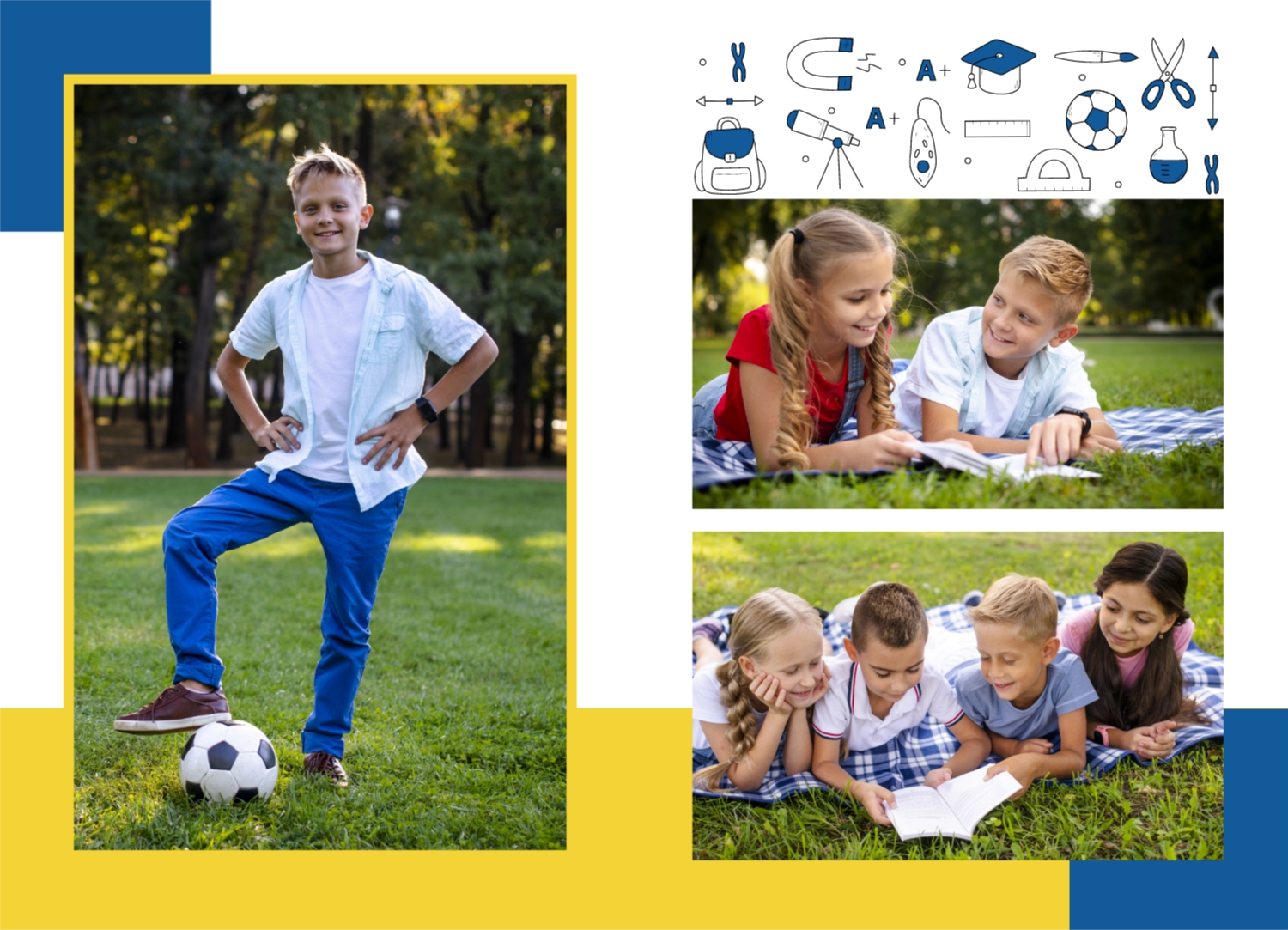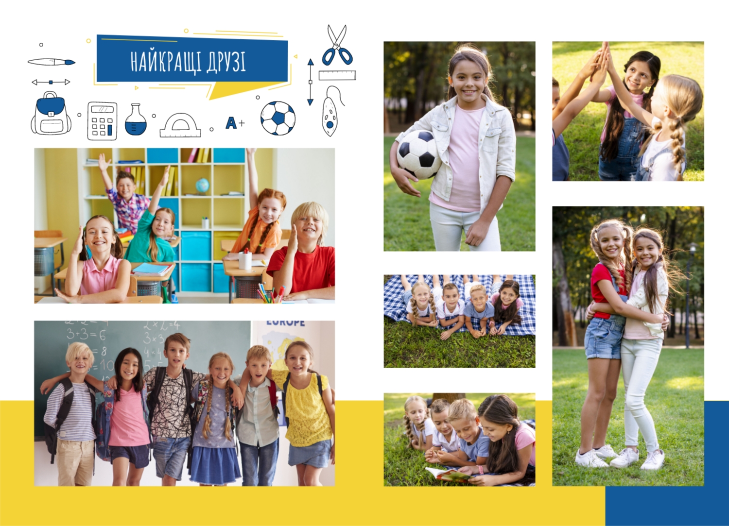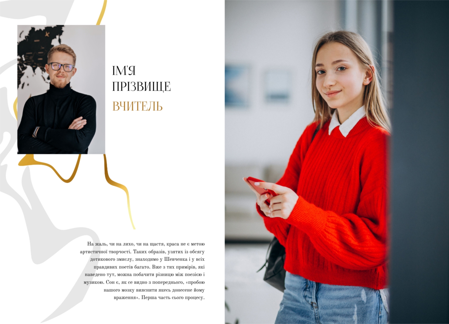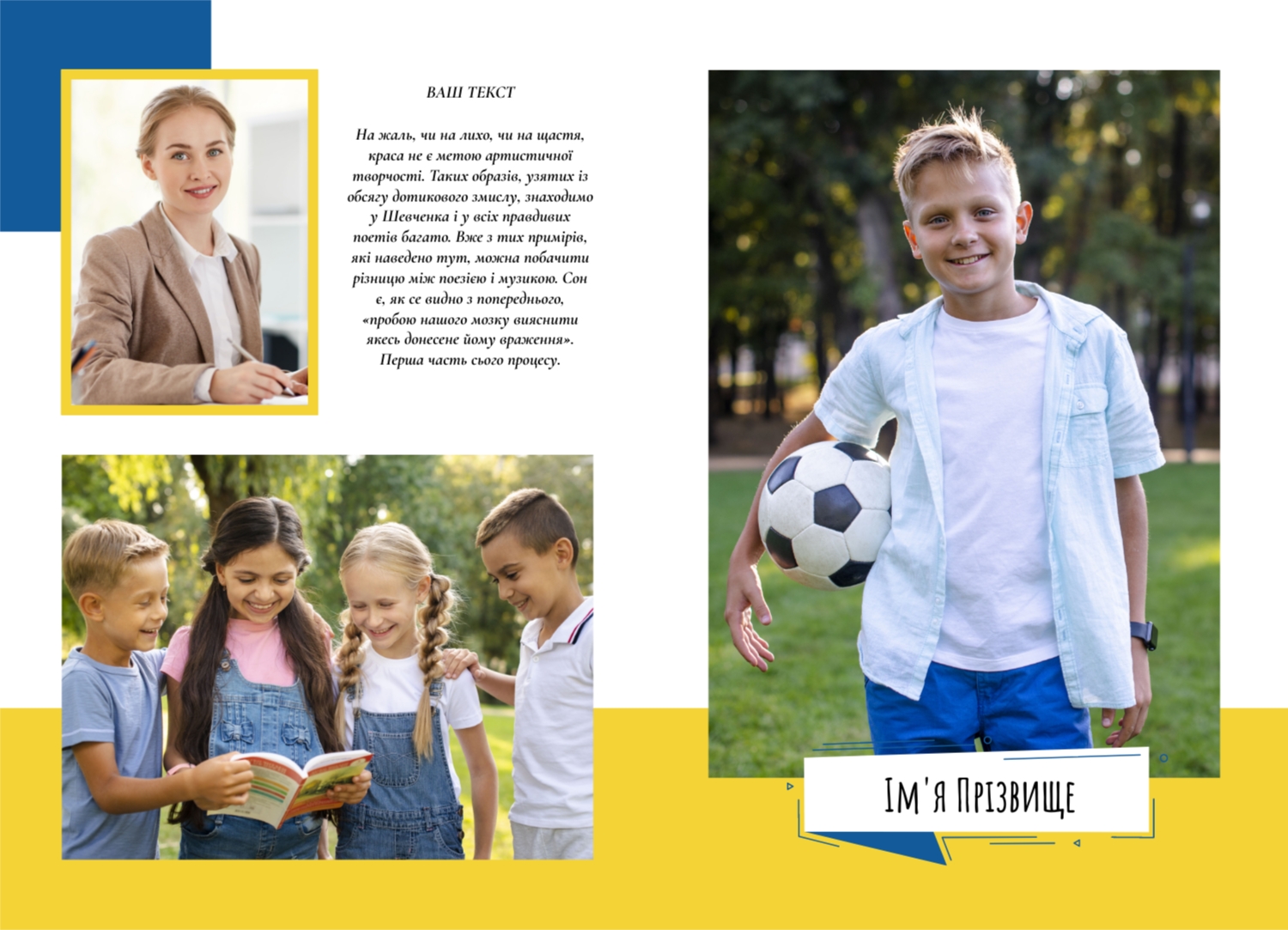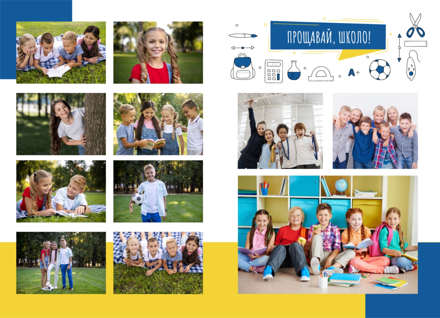 Готовий шаблон випускної вертикальної фотокниги в твердій обкладинці для старшої школи-це стильне і помітне оформлення, яке підкреслить важливість моменту і збереже спогади на довгі роки. Сучасний дизайн з ефектними графічними елементами, гармонійними кольорами і виразною типографікою робить макет універсальним і привабливим. Такий шаблон ідеально підходить для випускників шкіл і гімназій, а також для коледжів і ліцеїв, де цінують оригінальний підхід до оформлення пам'ятних видань. Цей макет легко адаптується в онлайн-конструкторі, що дозволяє створити по-справжньому унікальну фотокнигу. Можна змінювати фон, експериментувати з кольорами, додавати нові декоративні елементи або робити оформлення більш мінімалістичним. Всі текстові блоки редагуються: можна вибрати інший шрифт, налаштувати розмір написів, змінити їх положення, щоб підкреслити індивідуальний стиль кожного класу. Фотографії легко переміщуються, а їх форматування не вимагає спеціальних навичок – всього кілька кліків, і кадри виглядають так, як потрібно.