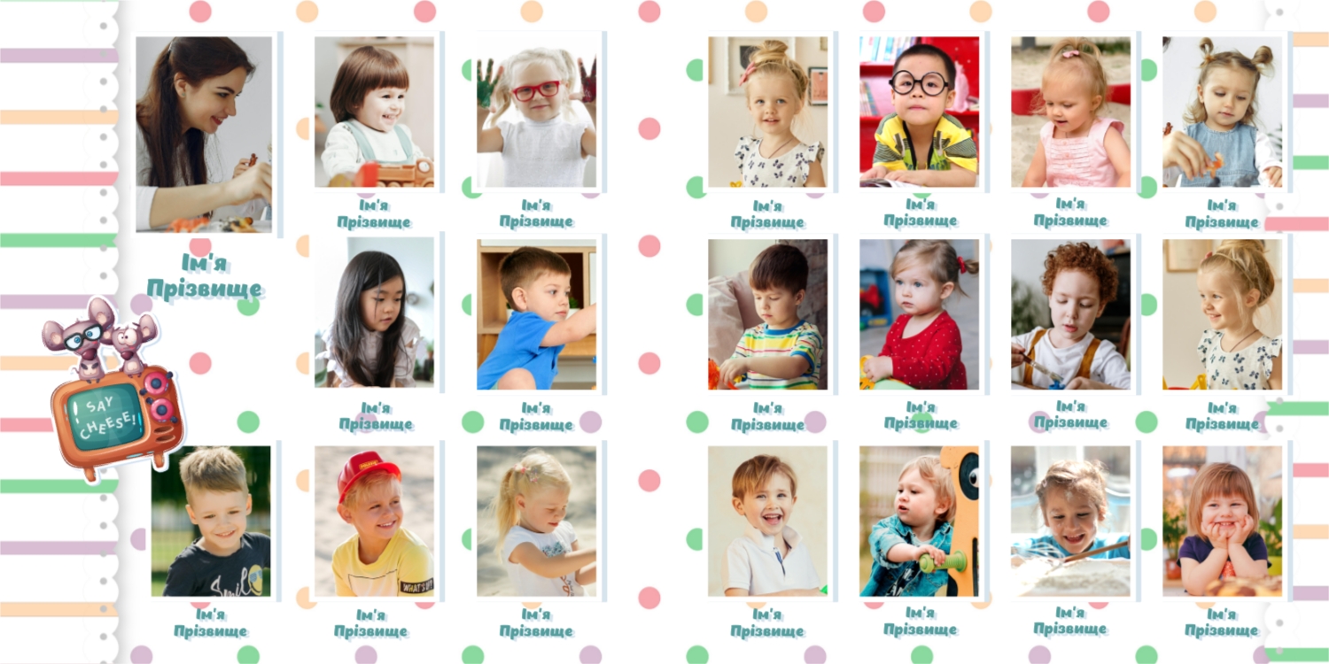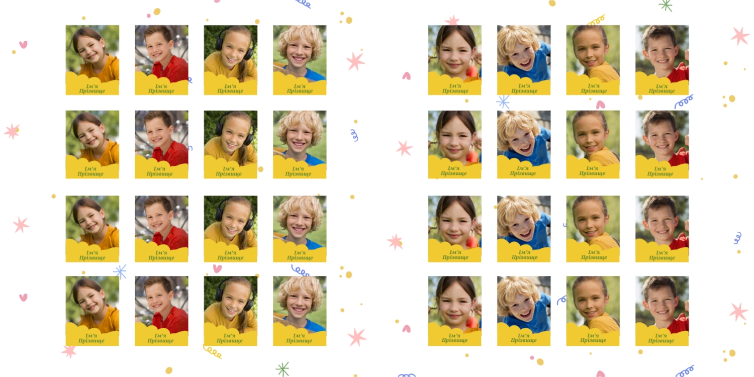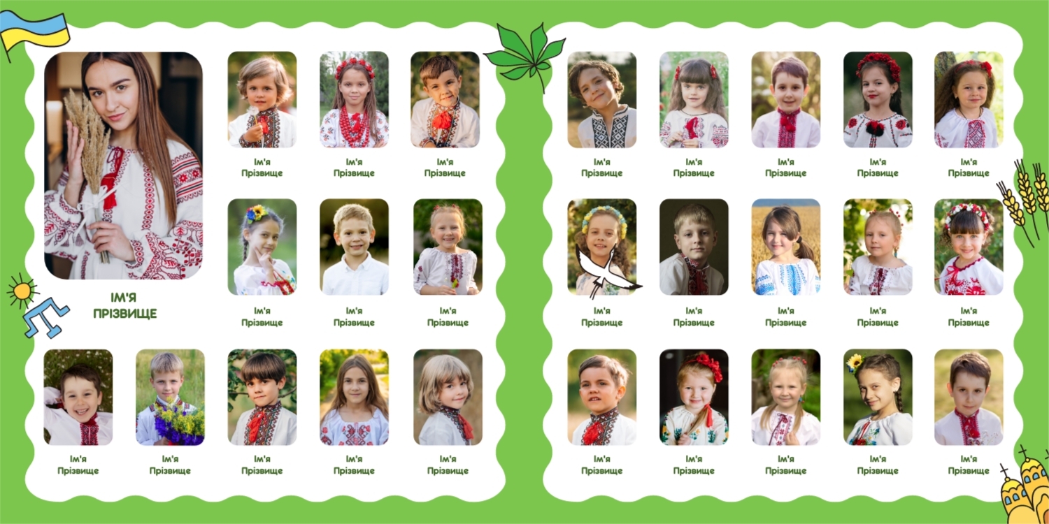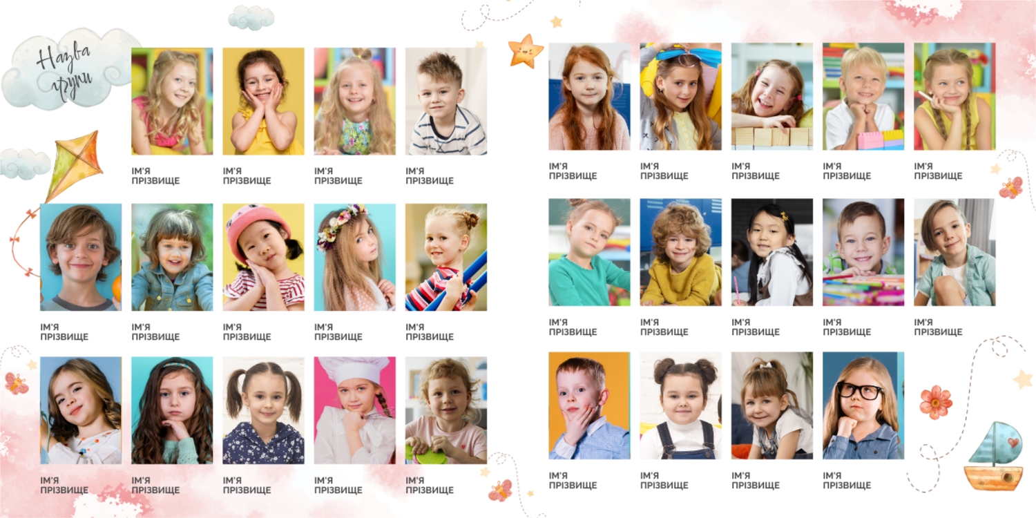 Готовий шаблон випускної квадратної віньєтки для дитячого садка-це яскравий і зворушливий макет, створений спеціально для того, щоб зберегти важливі моменти перших кроків у житті маленьких випускників. Милі ілюстрації, добрі кольори і продумана композиція роблять цей шаблон особливо привабливим для оформлення дитячих спогадів. Він відмінно підійде для вихователів дитячих садків, співробітників дошкільних установ, приватних дитячих студій і фотографів, які спеціалізуються на дитячій зйомці і створенні альбомів. В онлайн-конструкторі цей шаблон можна легко адаптувати під будь-яку групу і будь-який захід. Ви можете замінити фотографії, відредагувати імена, вибрати шрифти, які найкраще відповідають стилю вашої групи, змінити колірну гамму або додати декоративні елементи — наприклад, малюнки, які діти зробили самі. Також можна вставити логотип садка або зворушливе прощальне вірш, що додасть віньєтці особливу емоційну глибину. Редагування відбувається в інтуїтивно зрозумілому інтерфейсі, де кожен елемент можна перемістити, масштабувати або видалити. Це дає повний контроль над процесом створення макета-від вибору фону до розстановки фотографій. Навіть без дизайнерського досвіду ви зможете створити професійну віньєтку, яка буде радувати батьків, вихователів і самих дітей довгі роки.